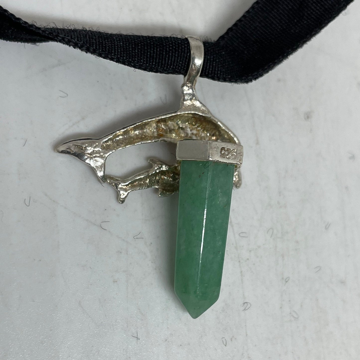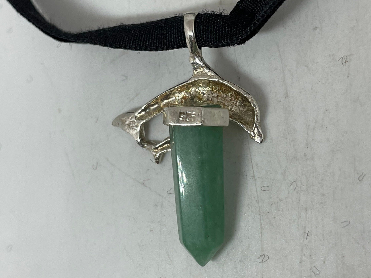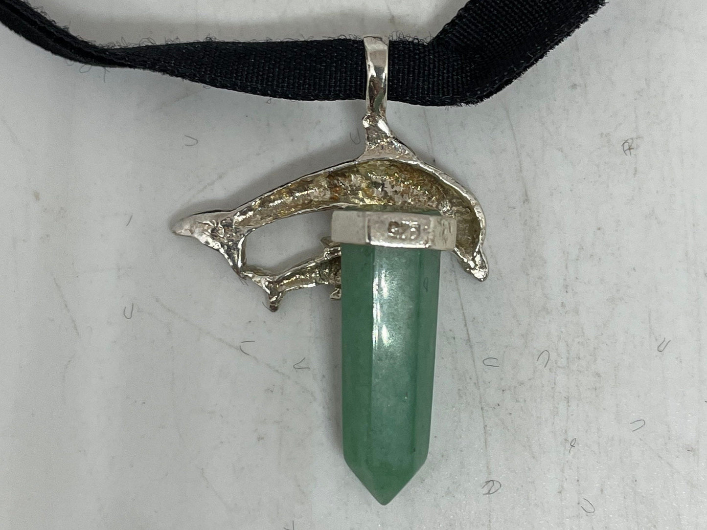 Vintage Green Jade in 925 Sterling Silver Dolphin Necklace