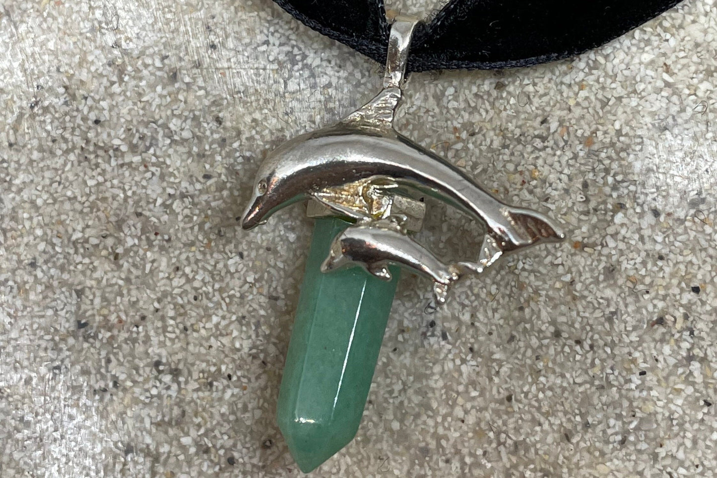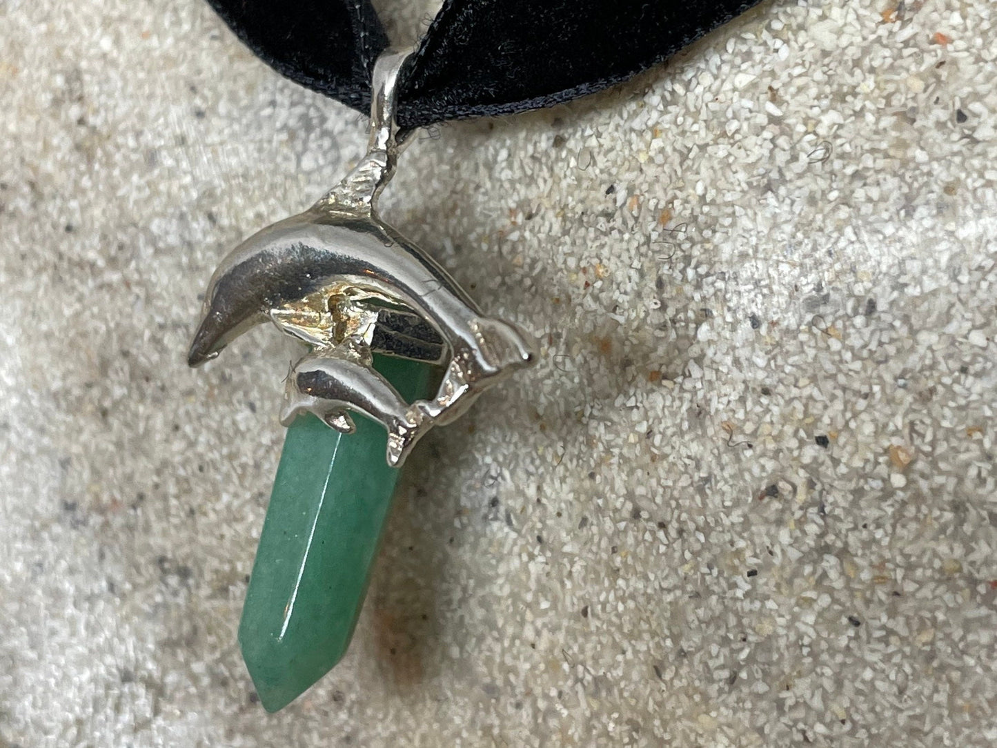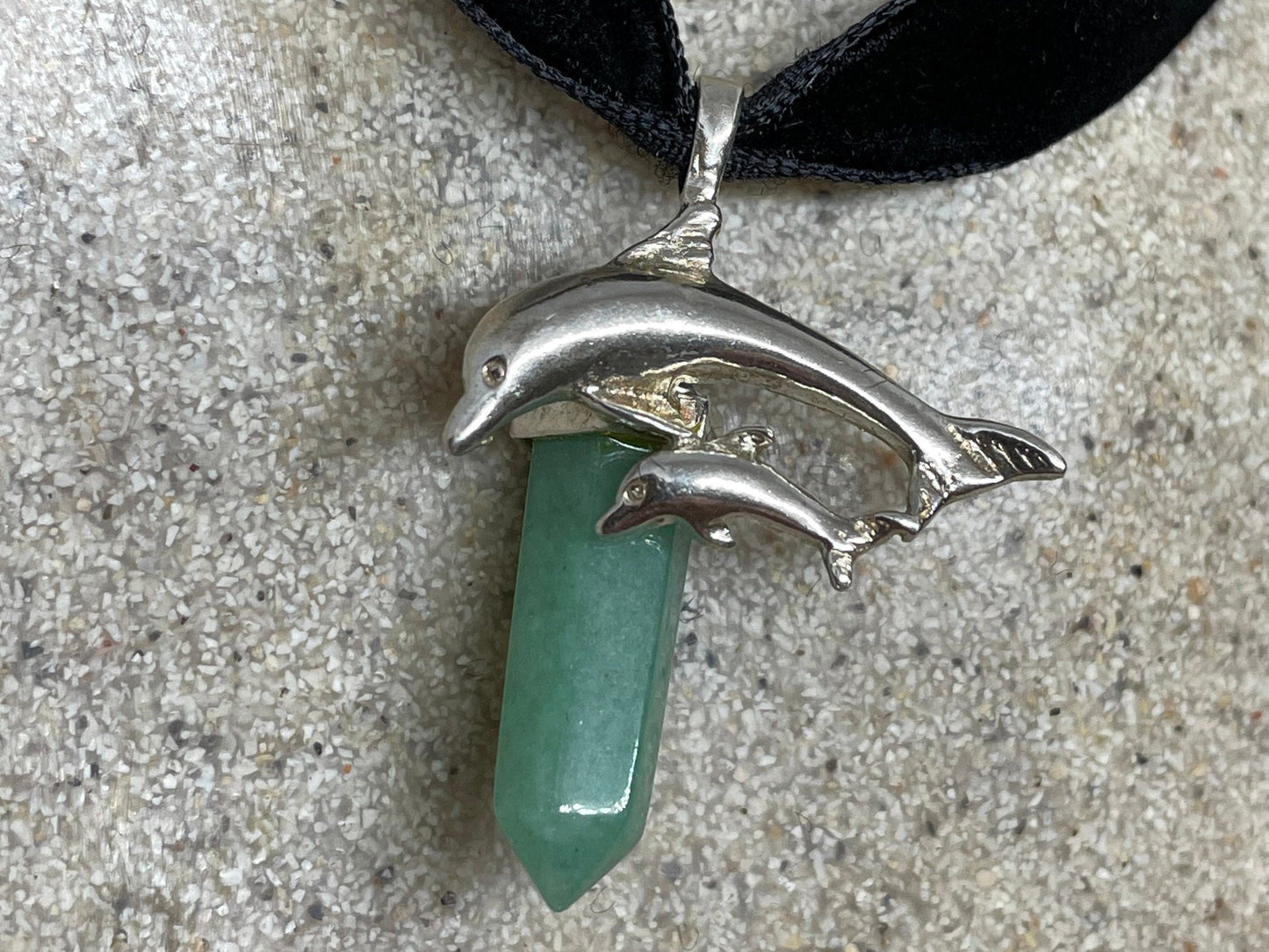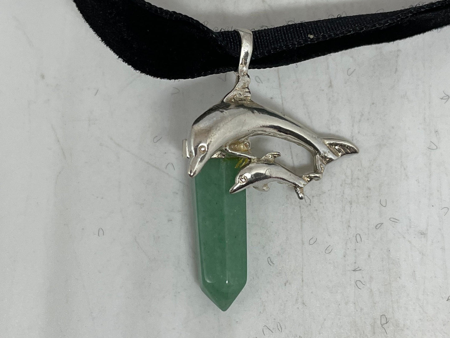 Vintage Green Jade in 925 Sterling Silver Dolphin Necklace