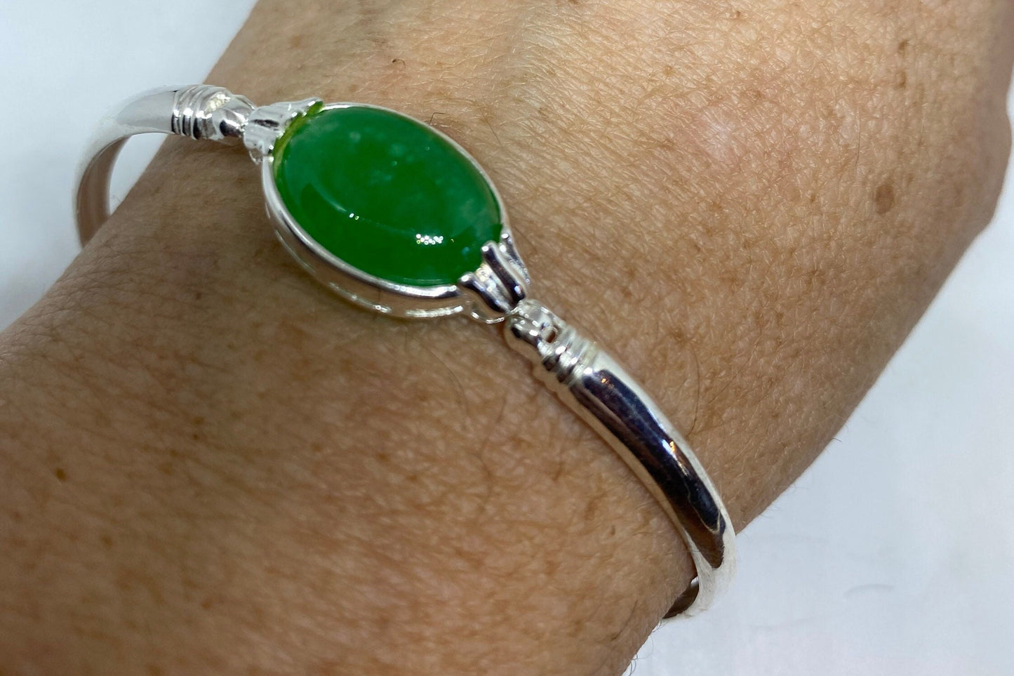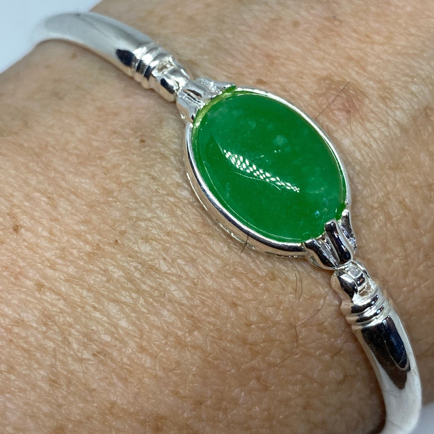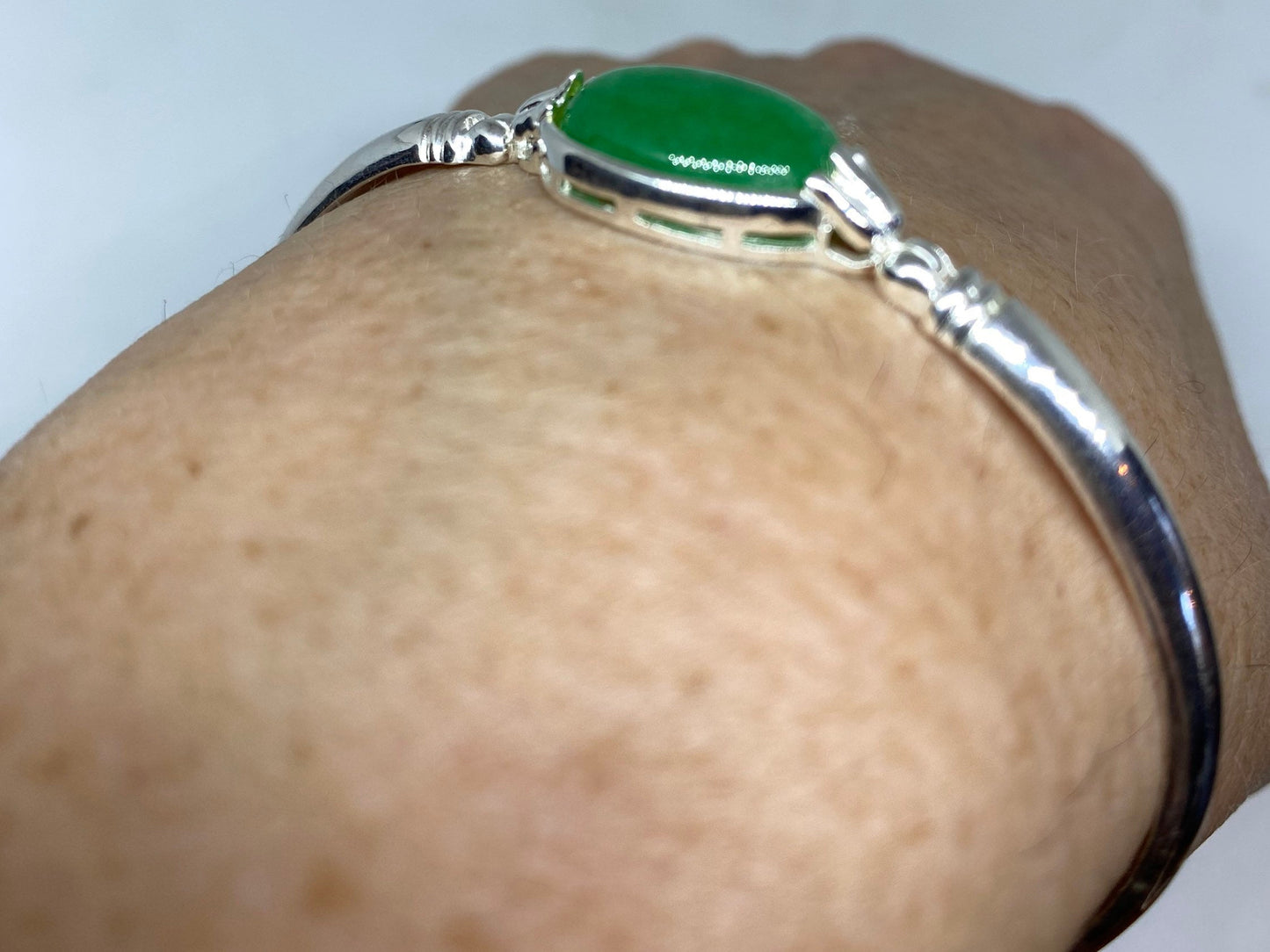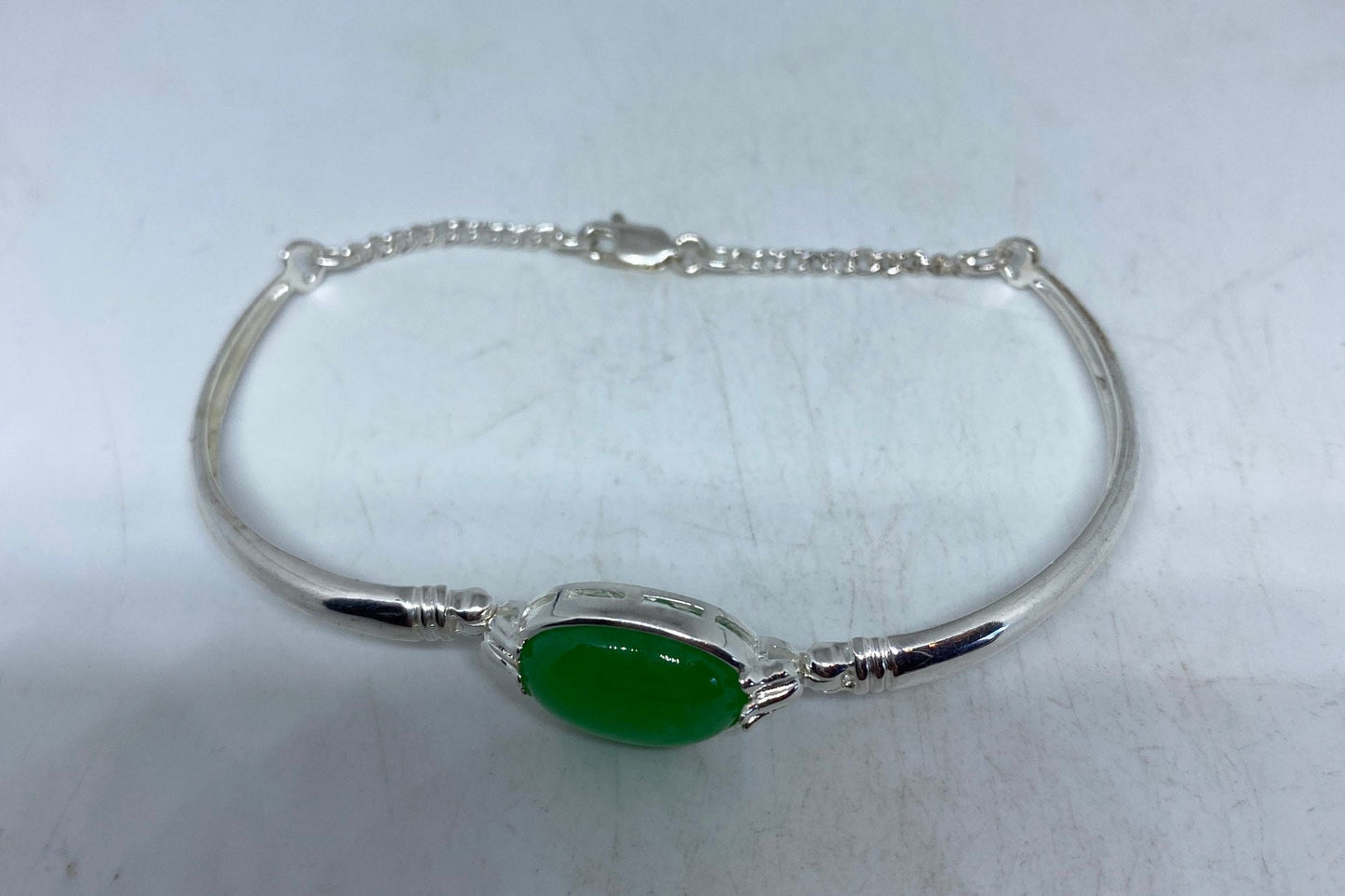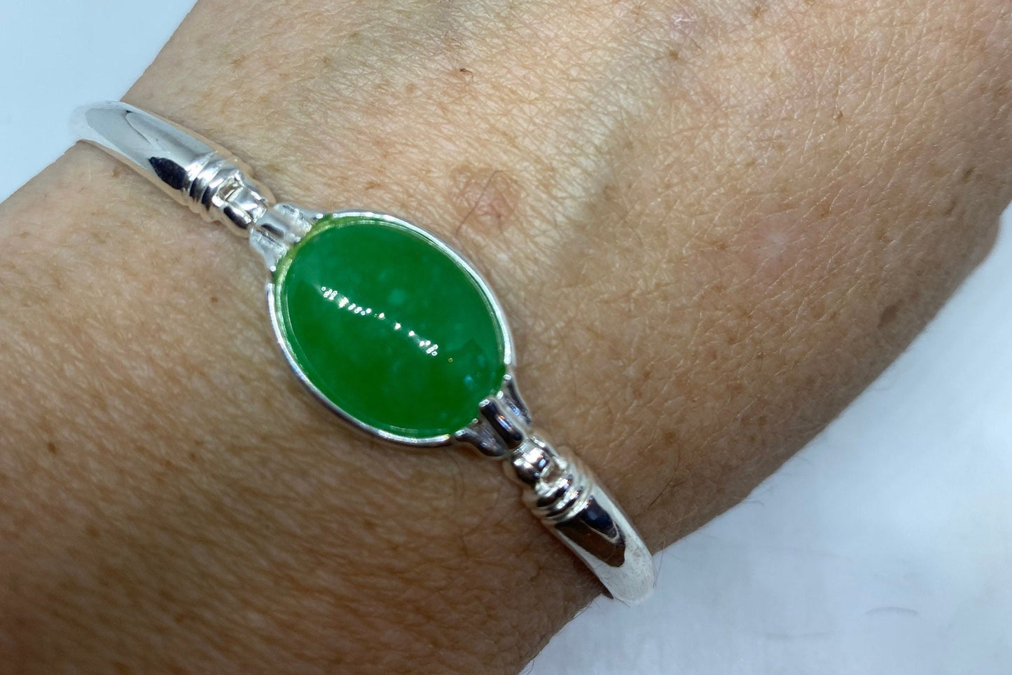 Vintage Green Jade Tennis Bracelet in 925 Sterling Silver