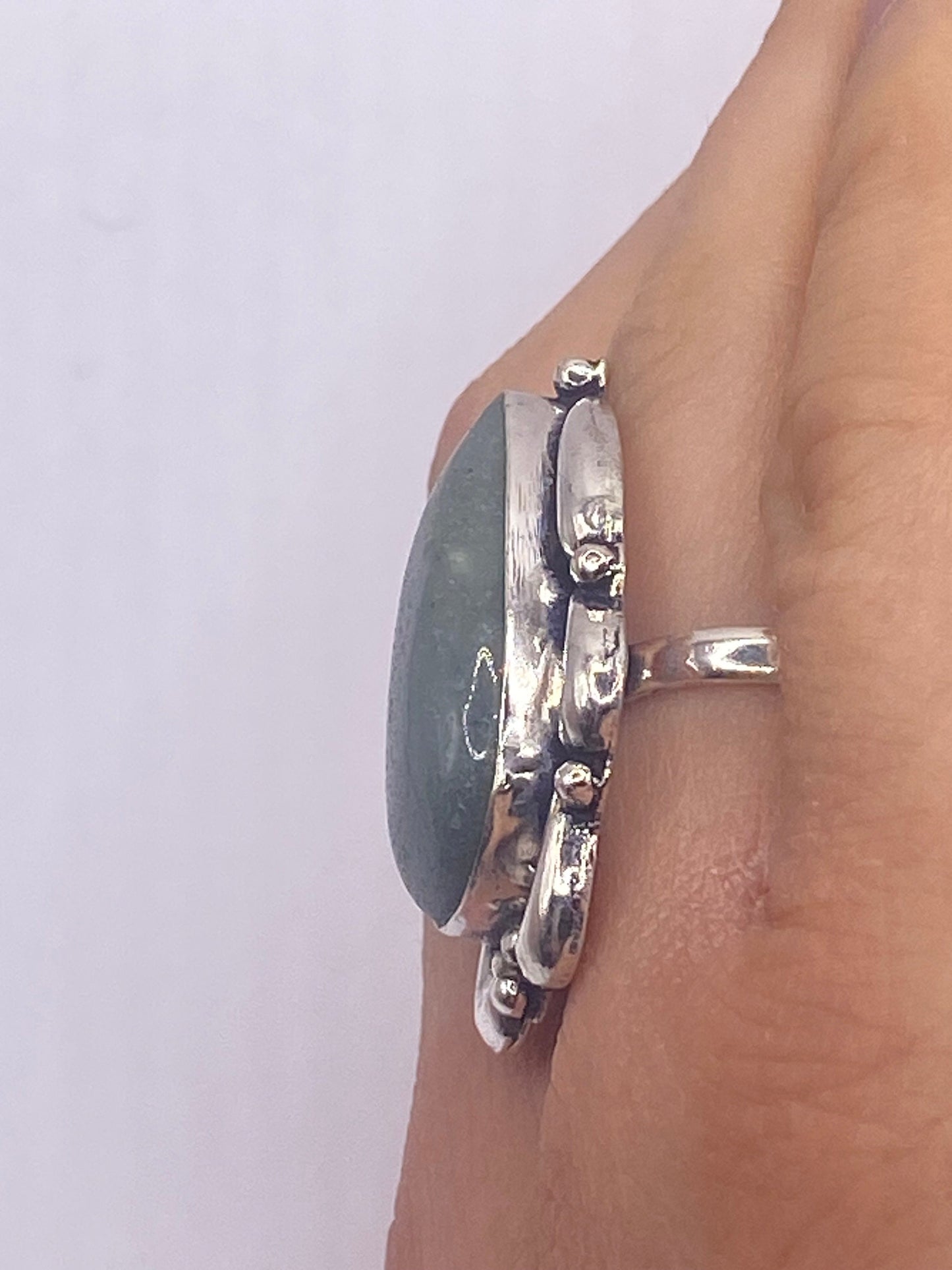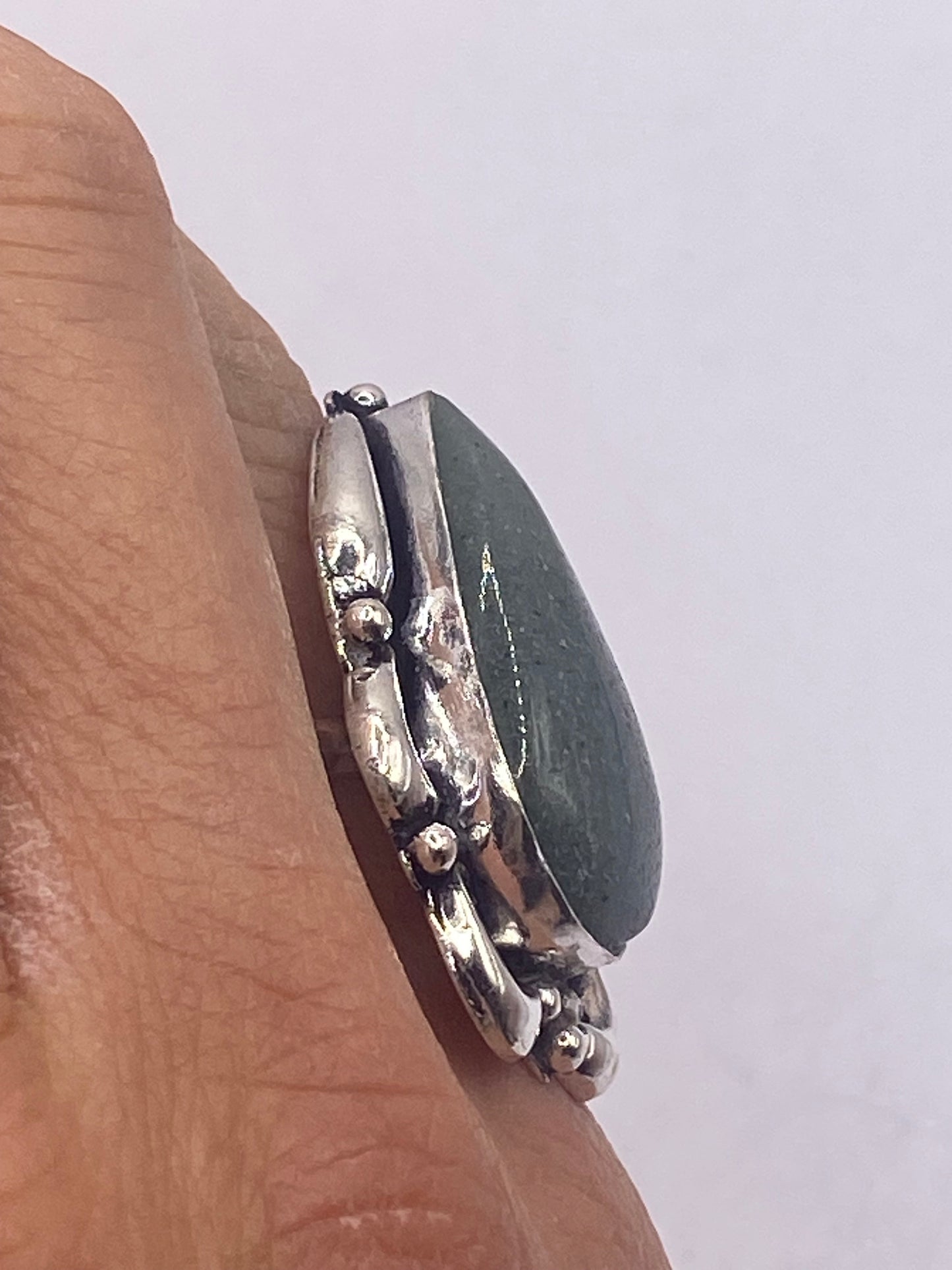 Vintage Green Nephrite Jade White Bronze Statement Ring