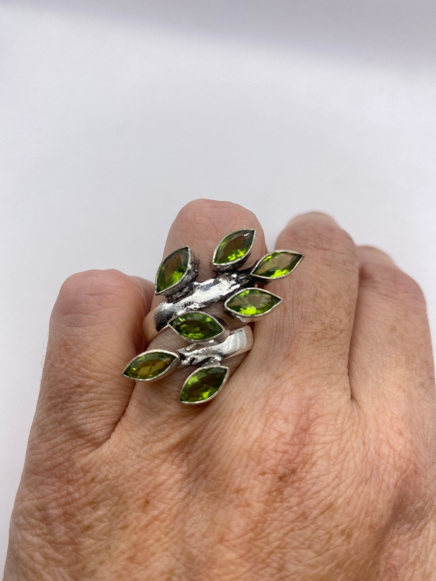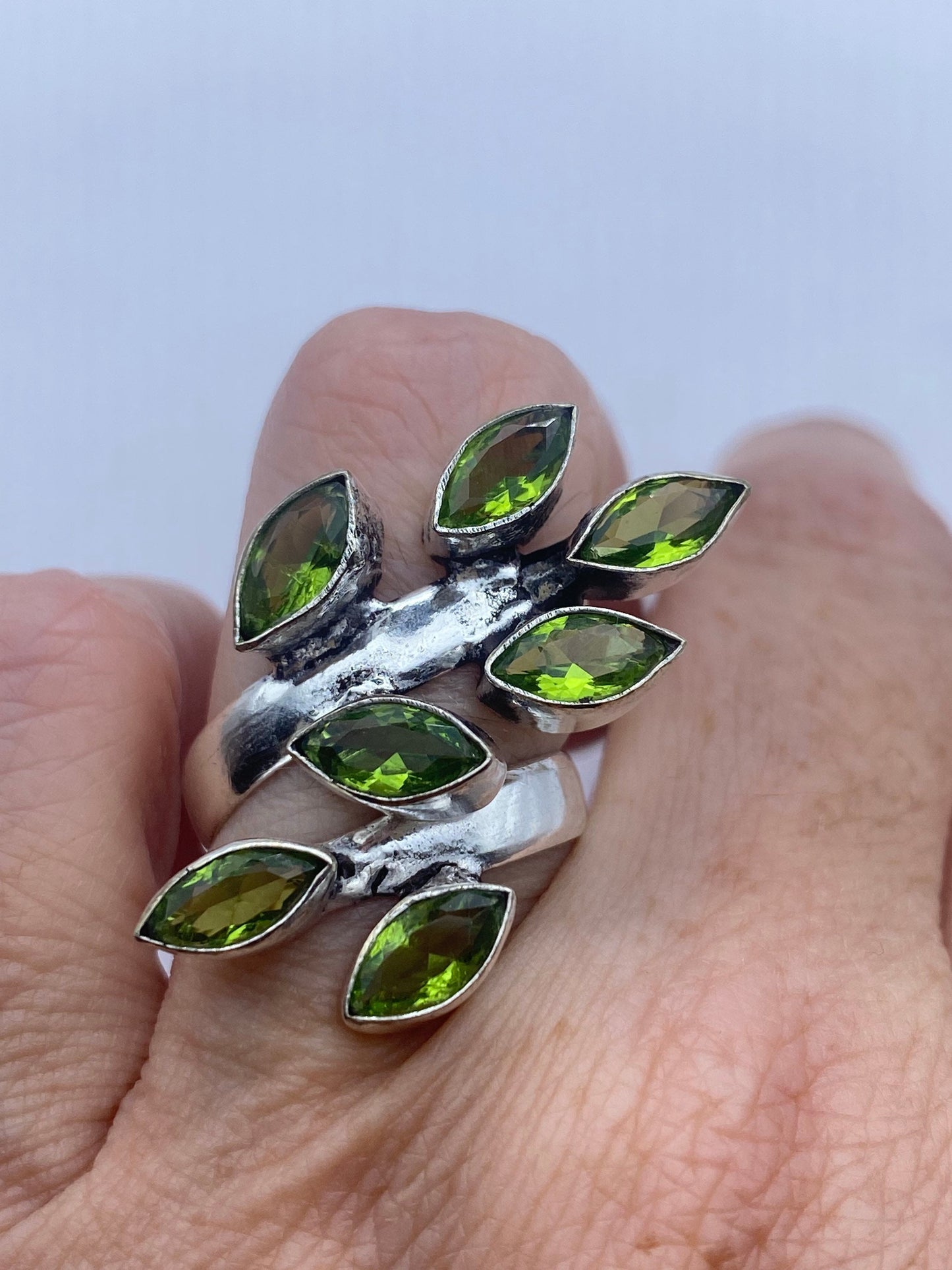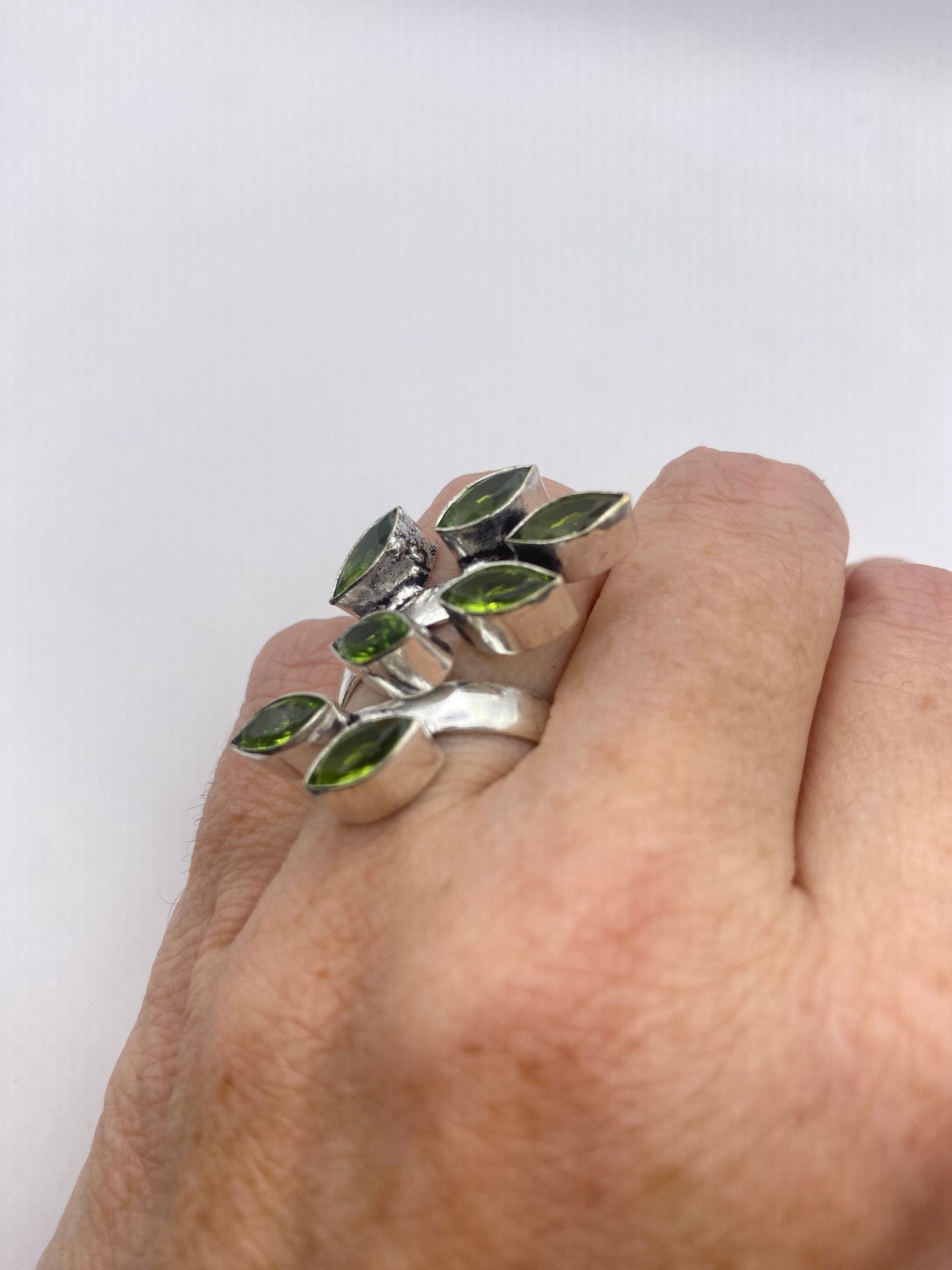 Vintage Green Pearl Peridot Cocktail Ring Adjustable