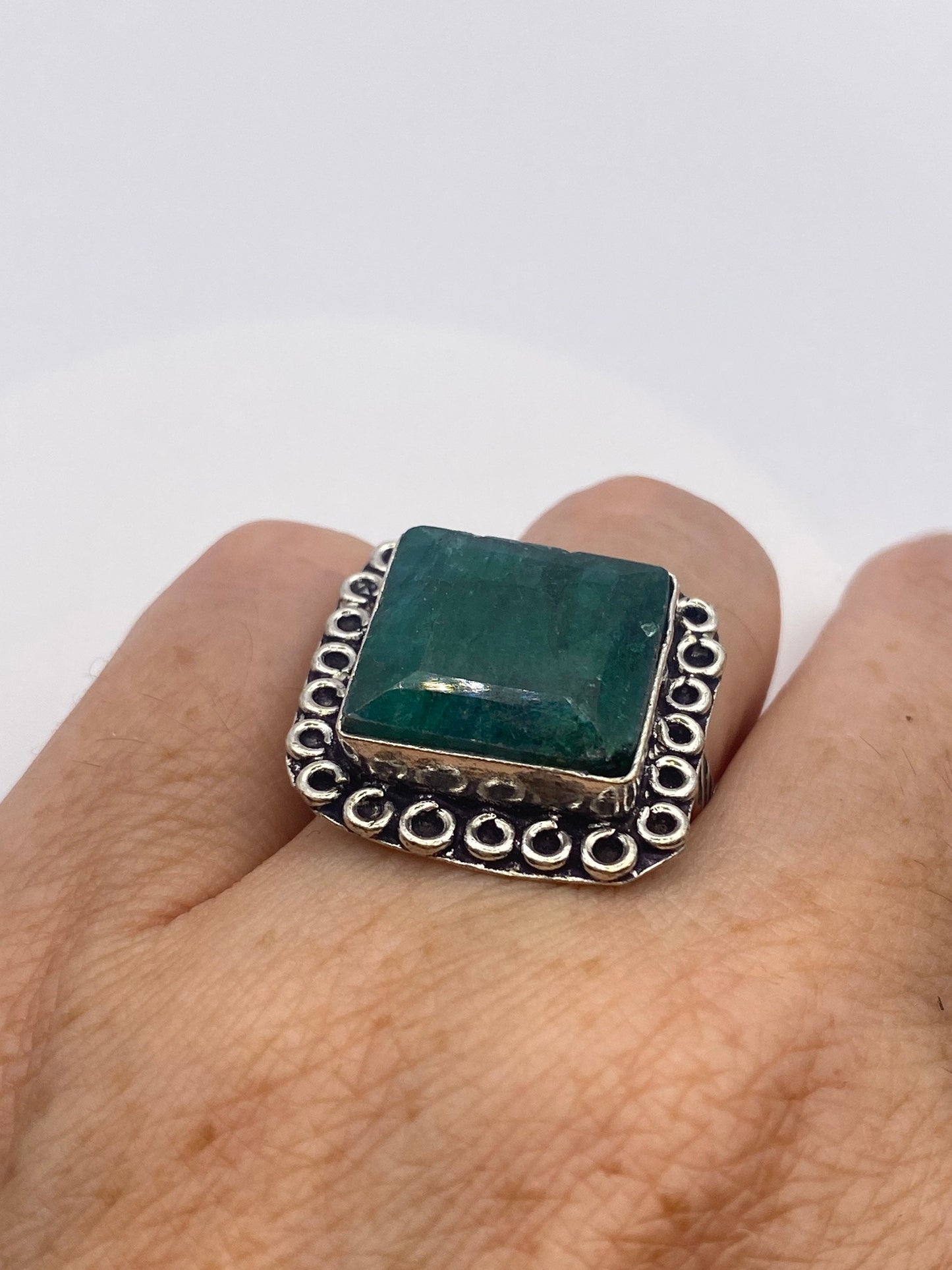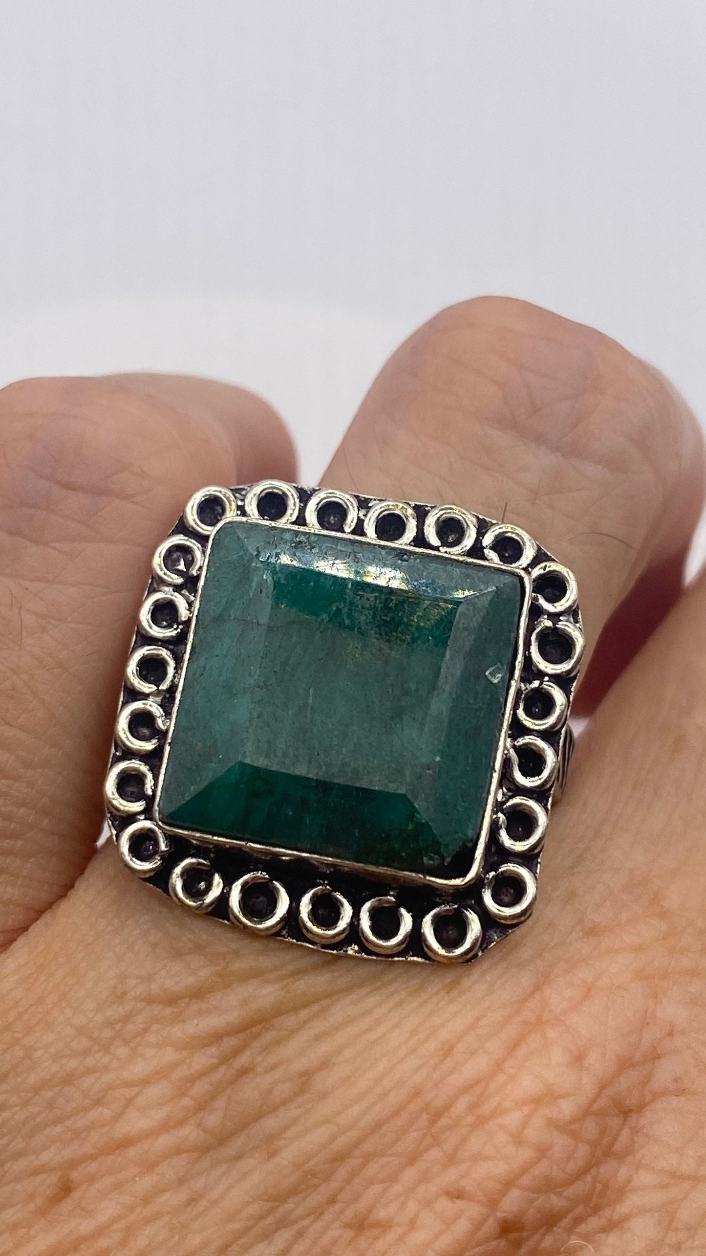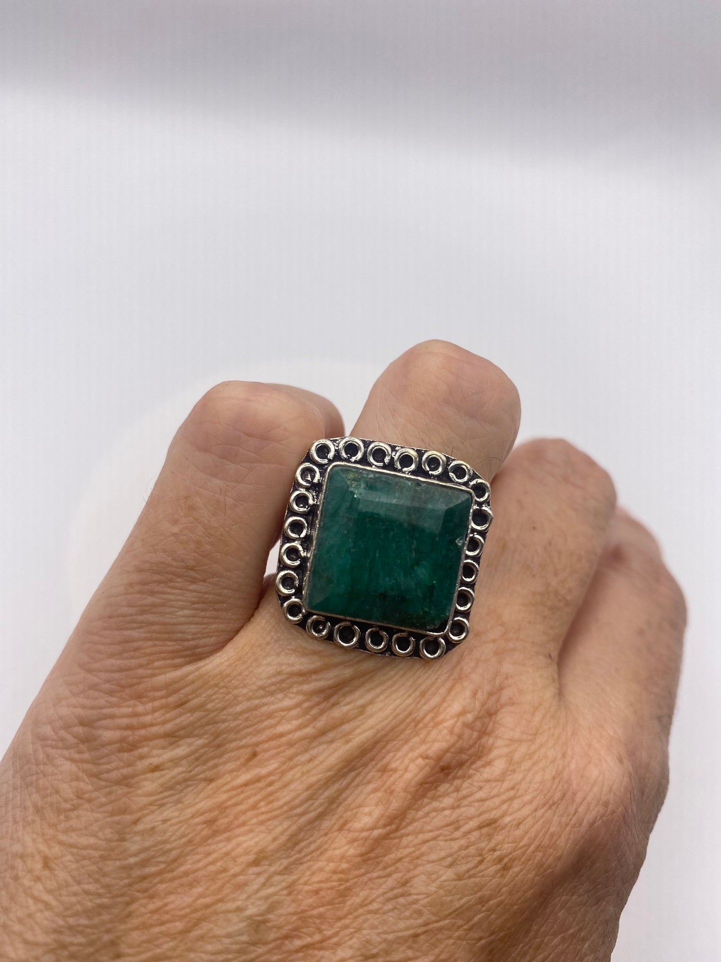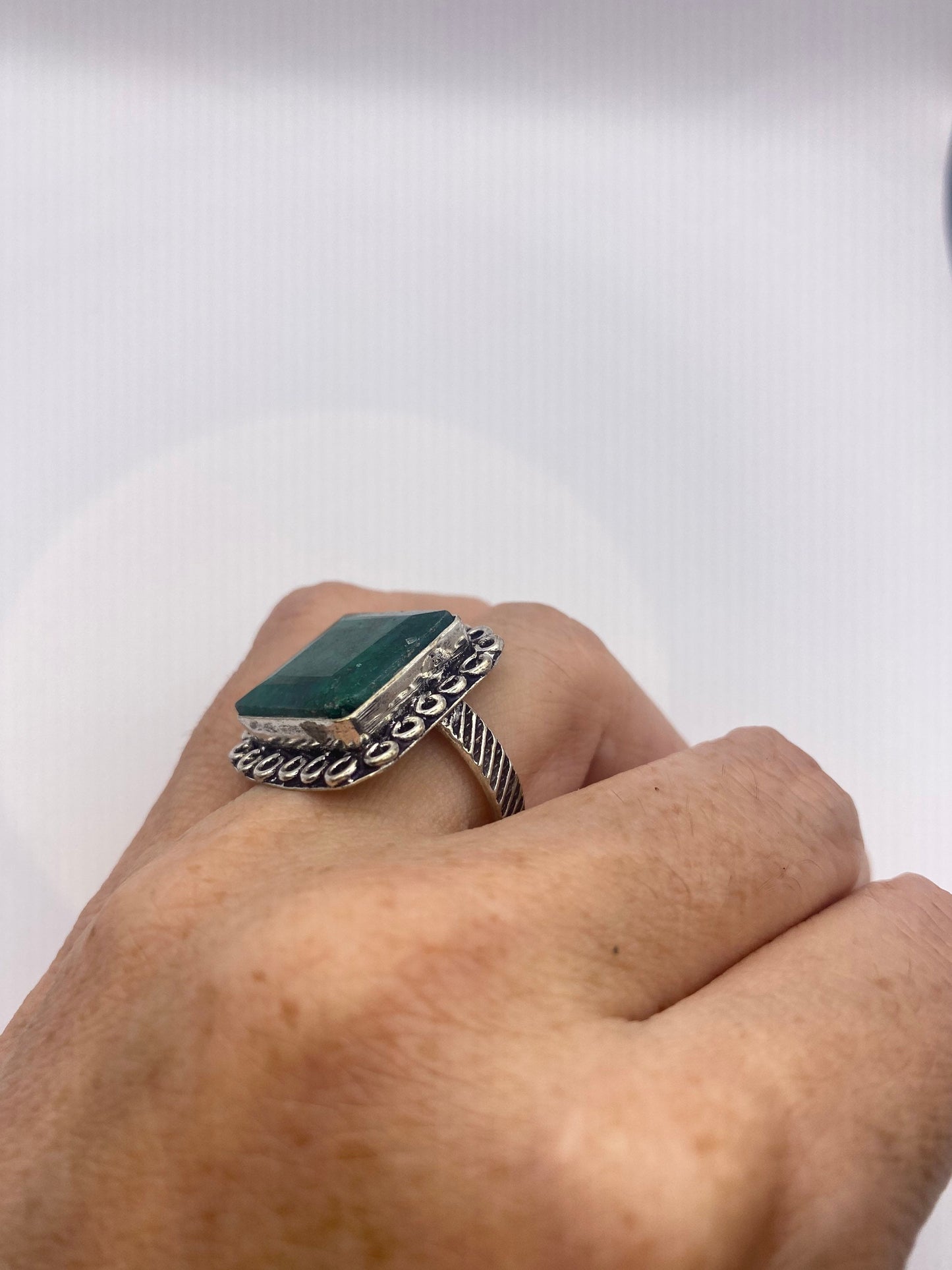 Vintage Green Raw Emerald Silver Bronze Statement Boho Ring
