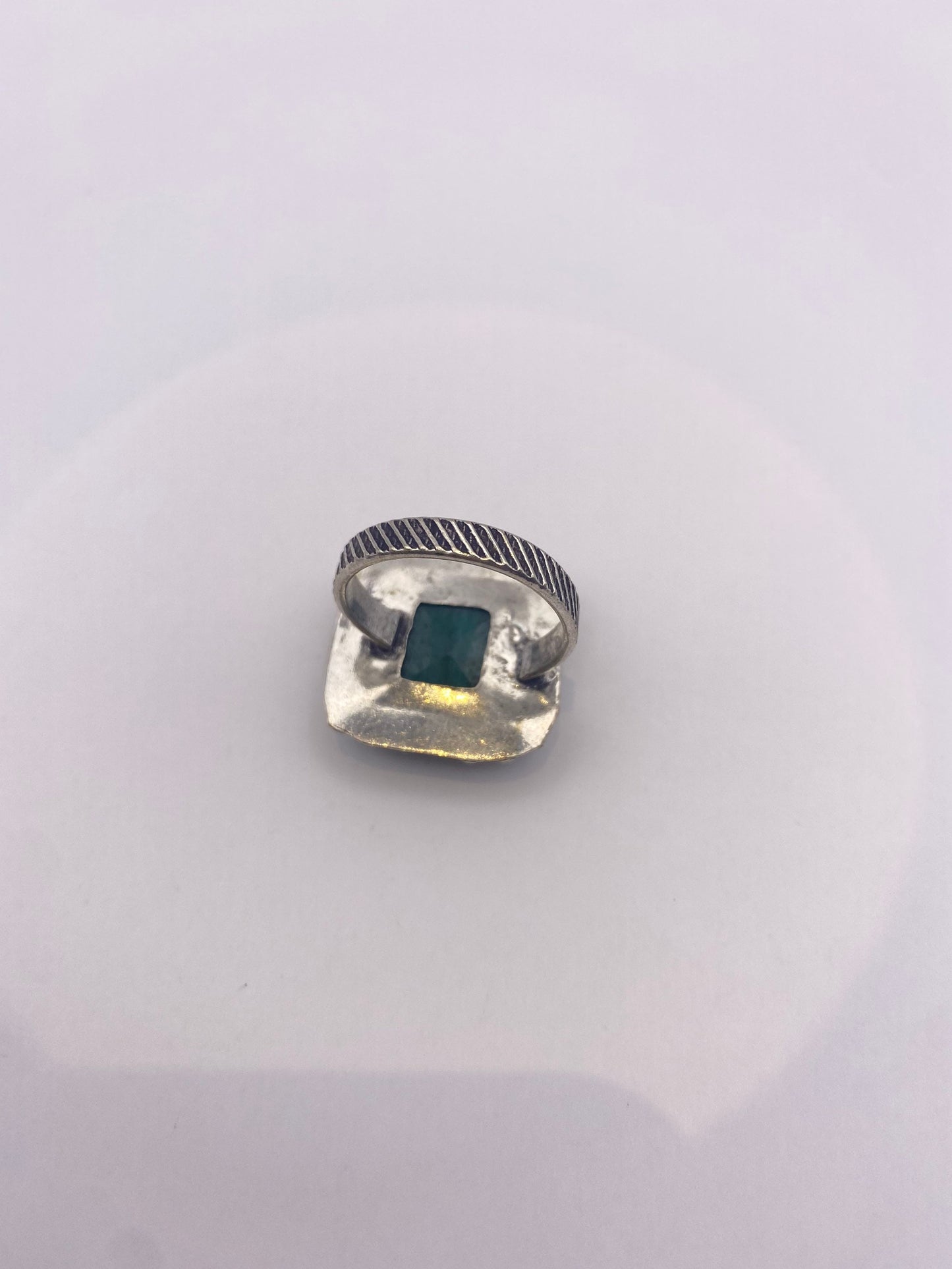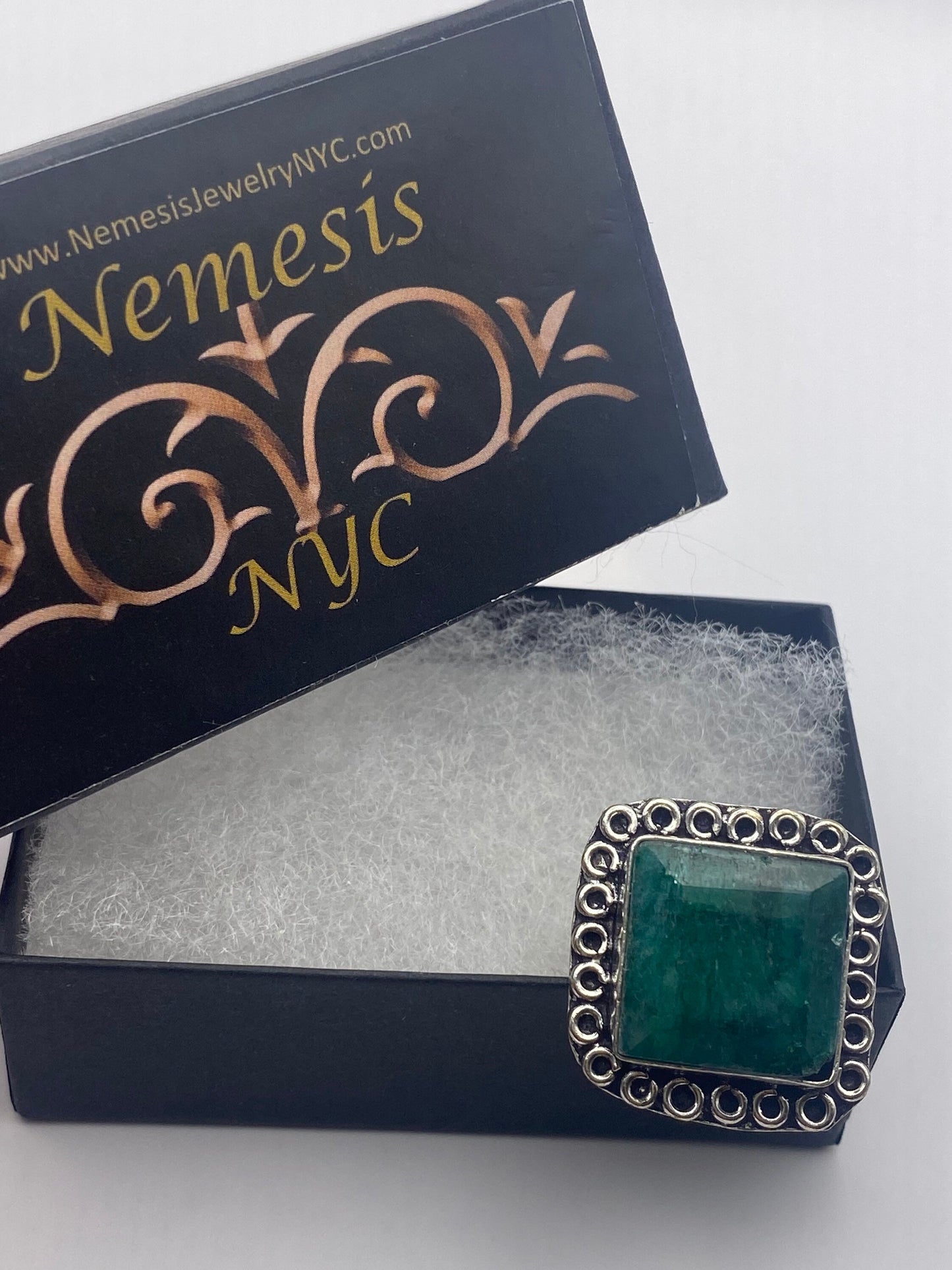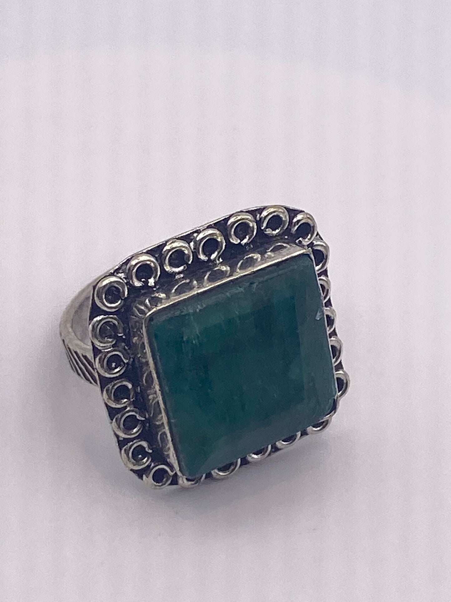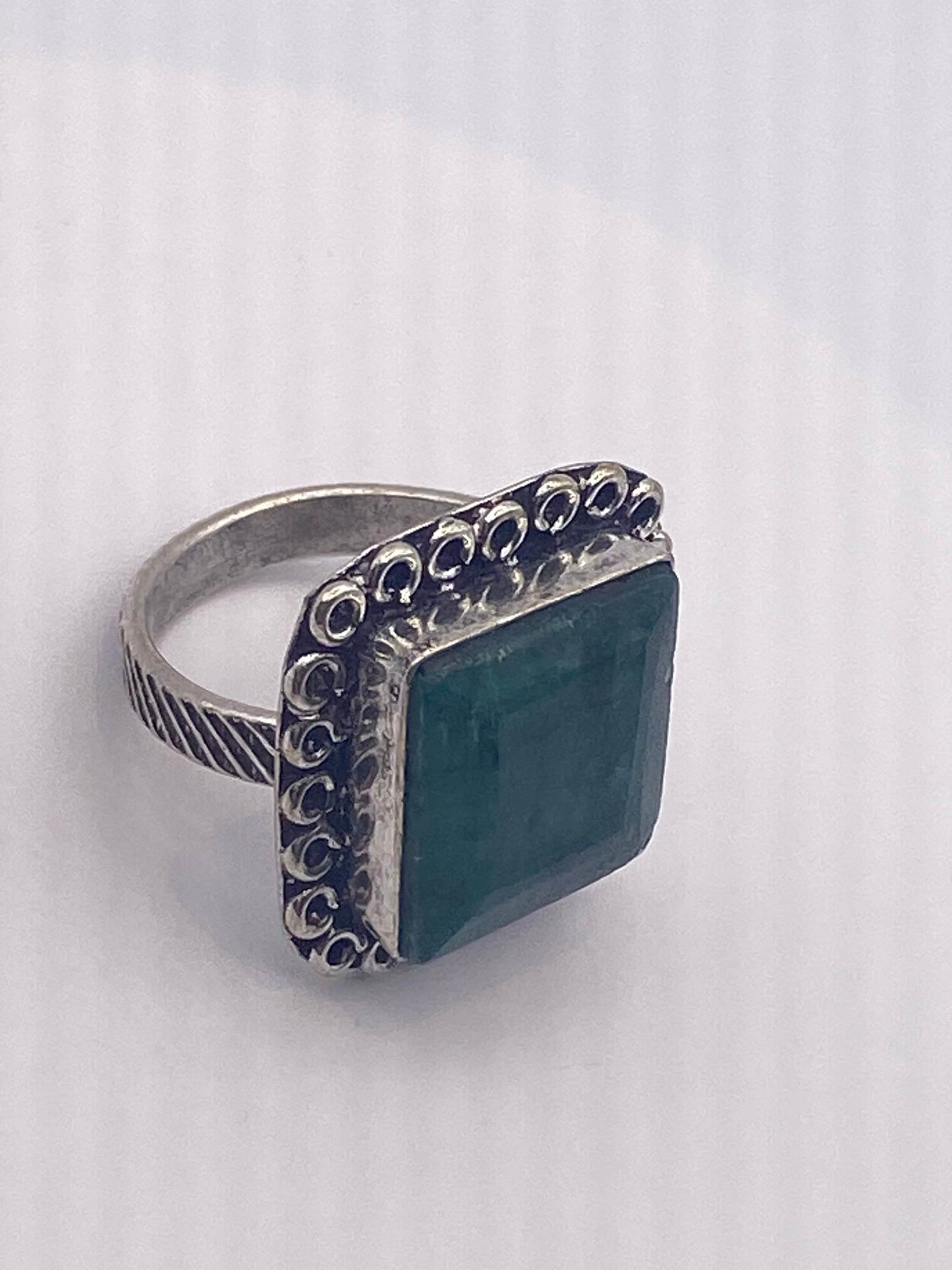 Vintage Green Raw Emerald Silver Bronze Statement Boho Ring