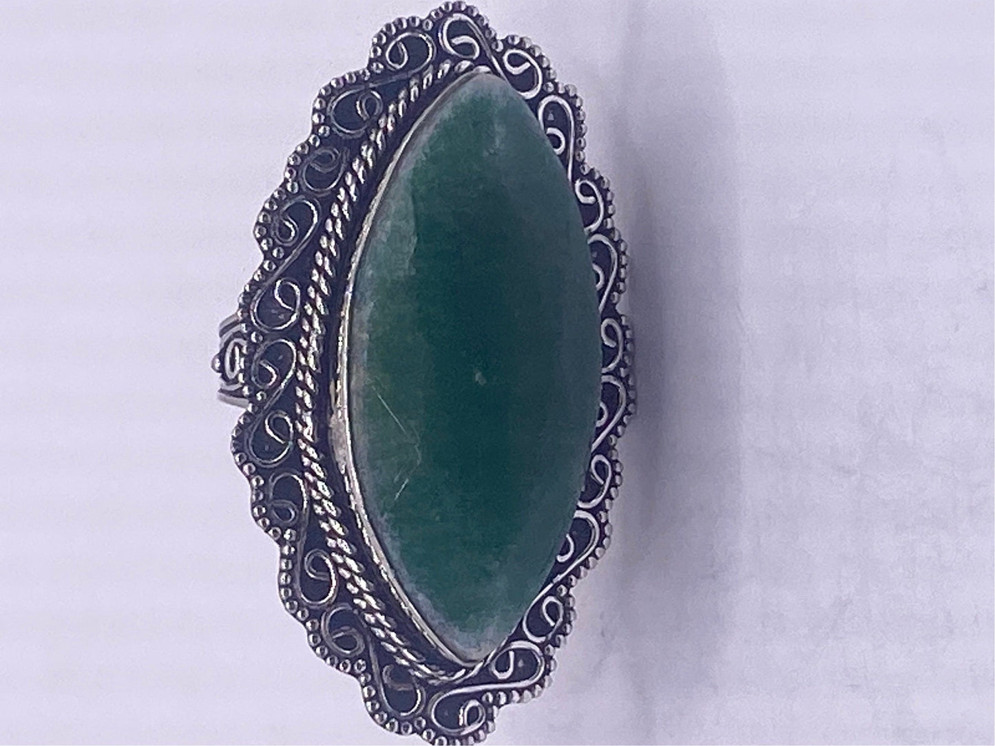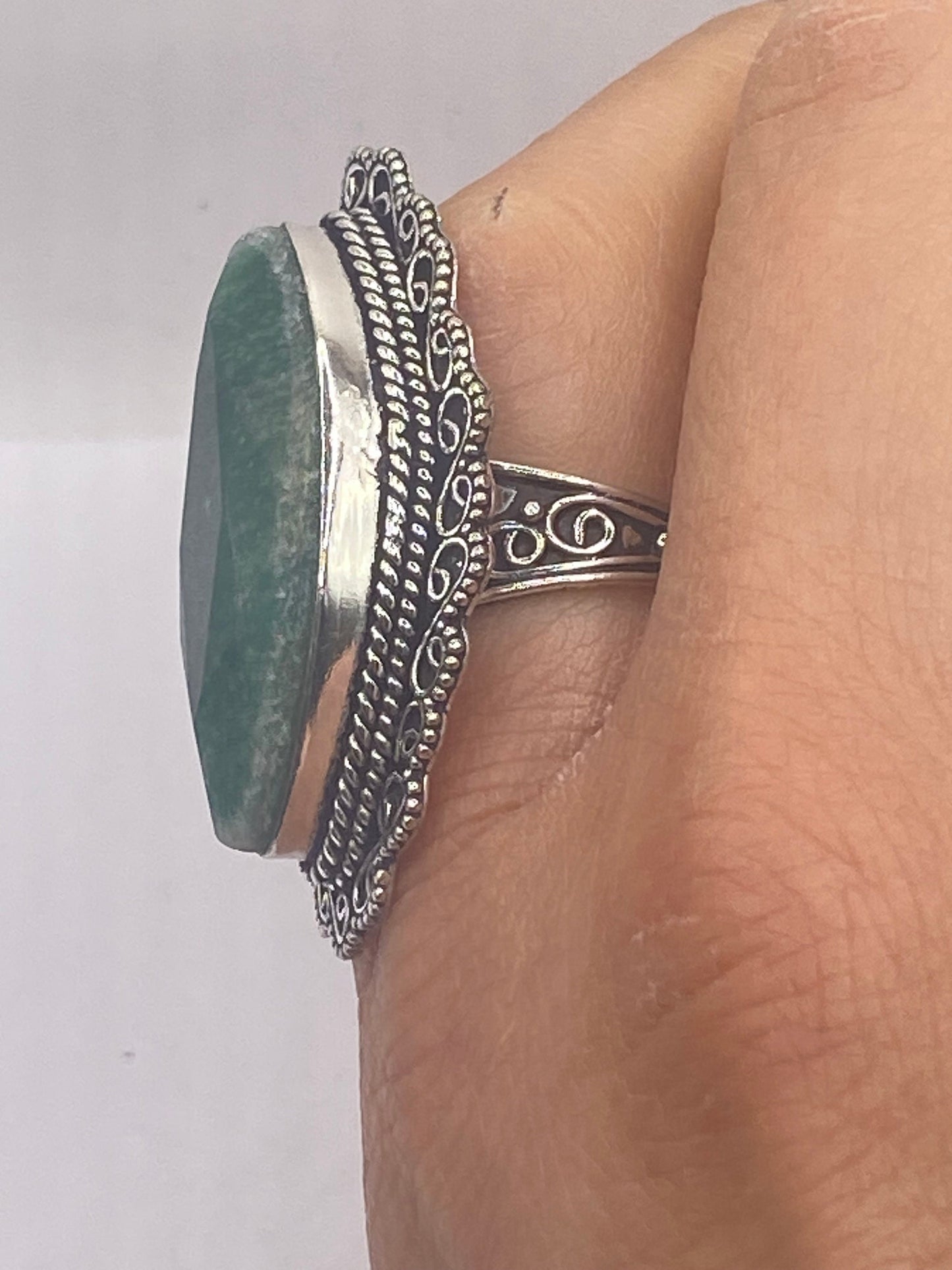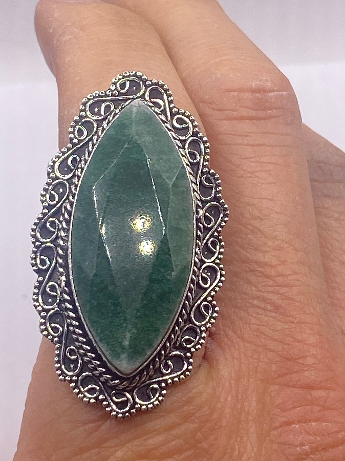 Vintage Green Raw Emerald Silver Bronze Statement Boho Ring