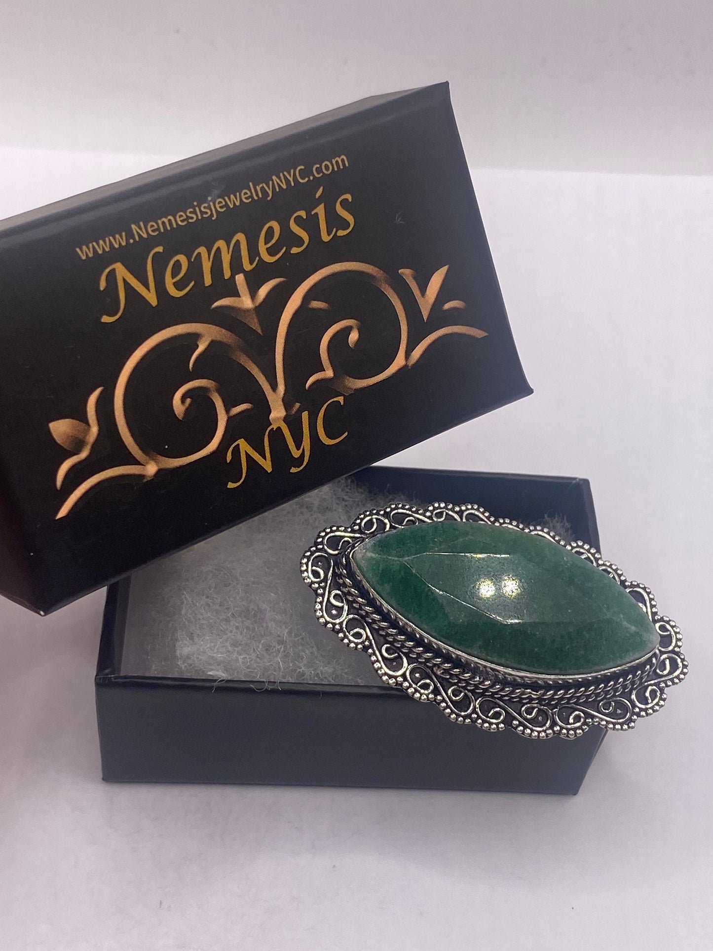 Vintage Green Raw Emerald Silver Bronze Statement Boho RingVintage Stone