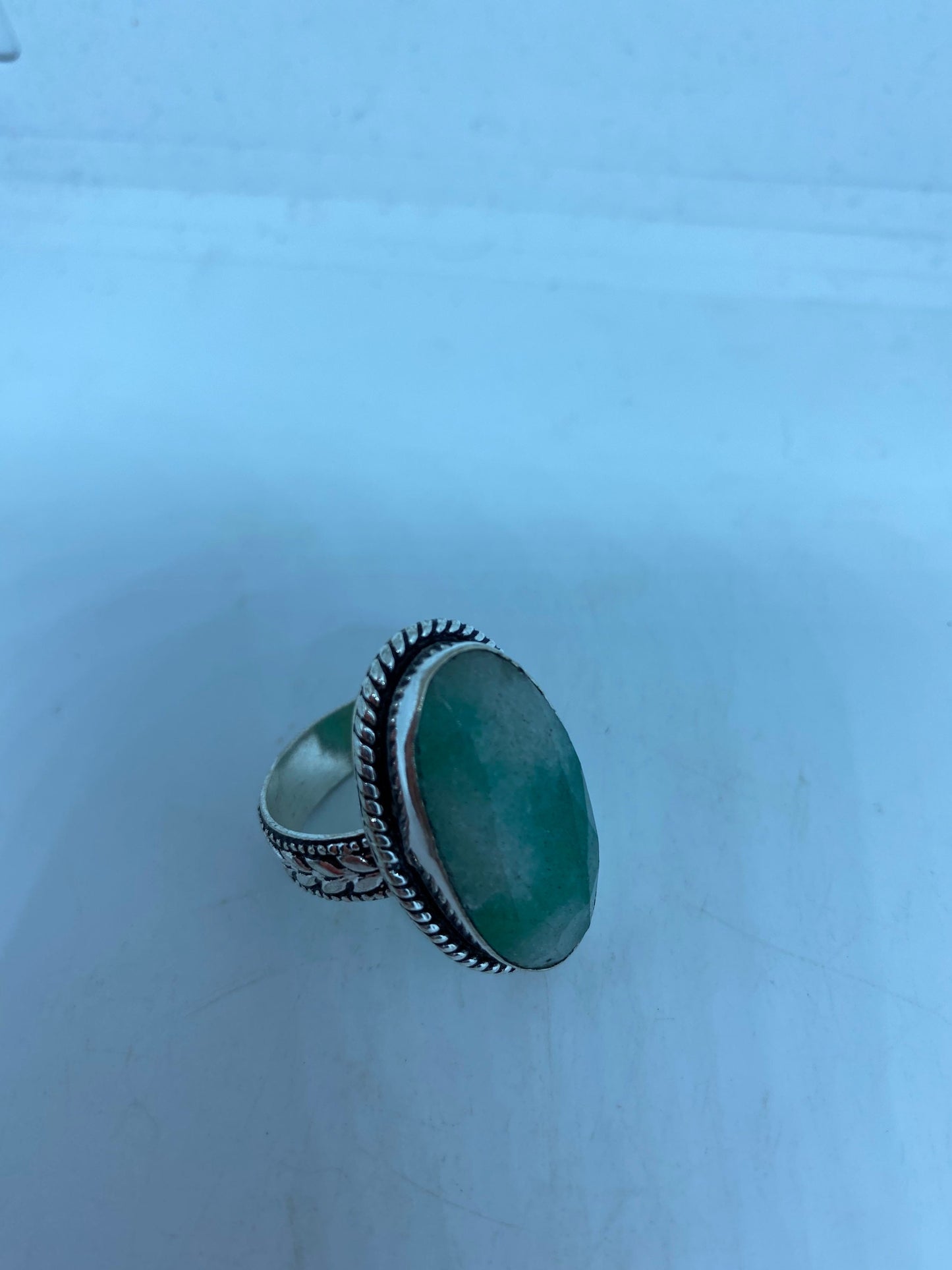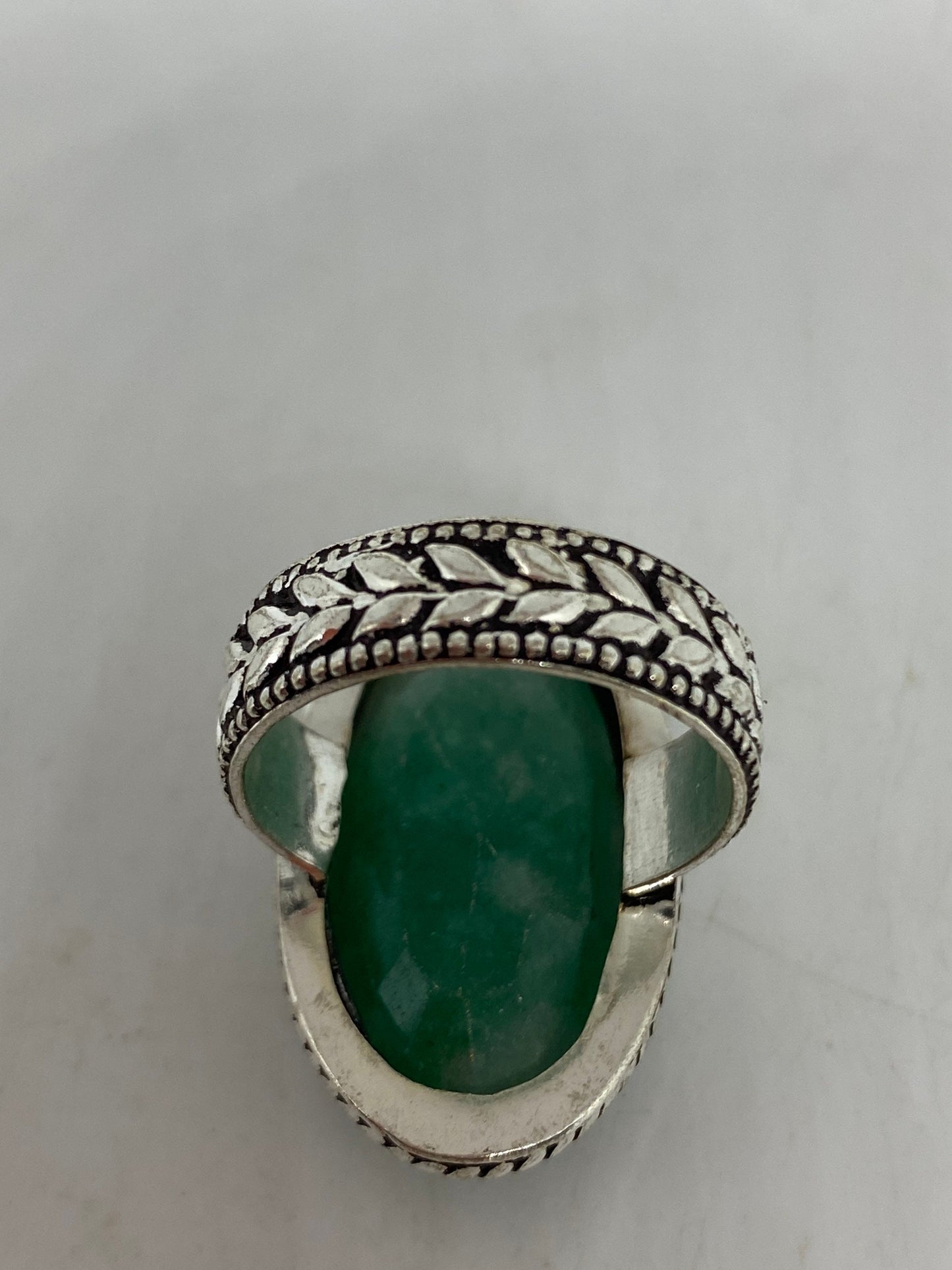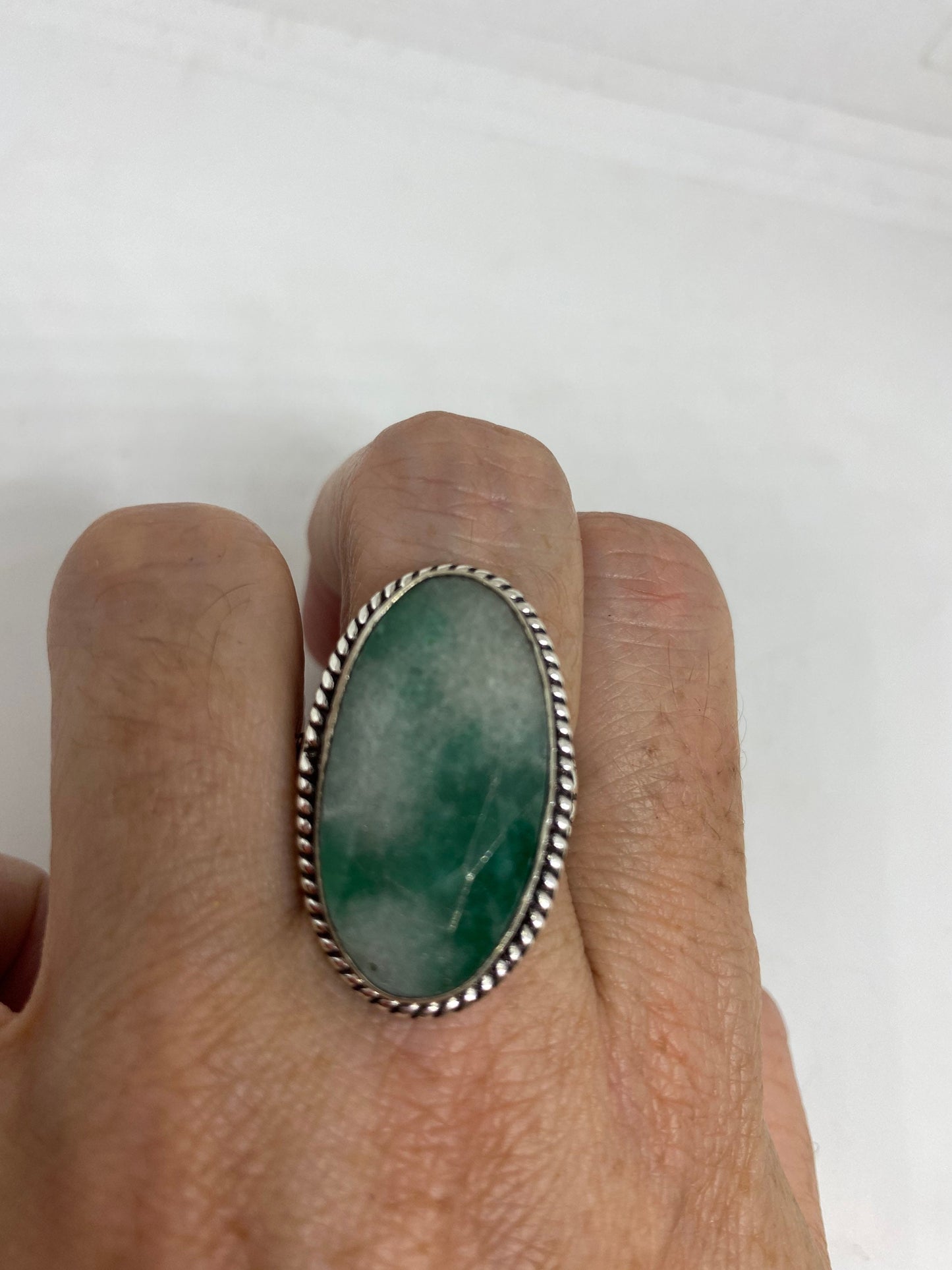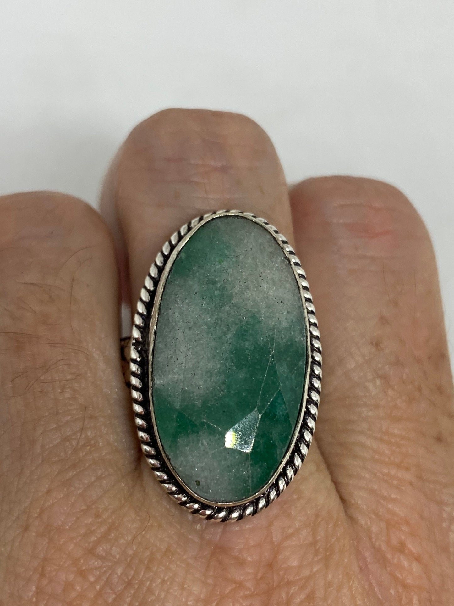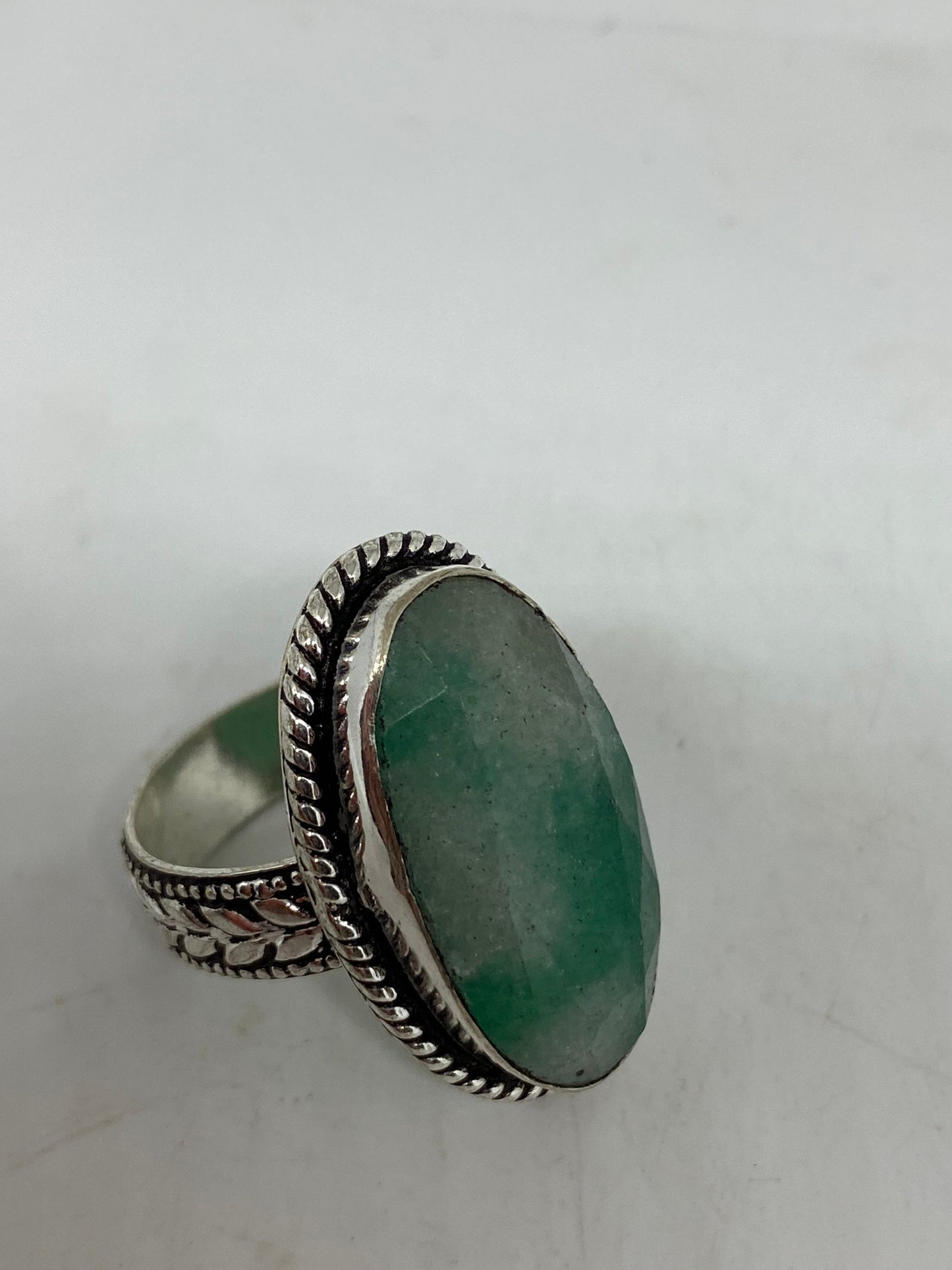Vintage Green Raw Emerald Silver Bronze Statement Boho Ring