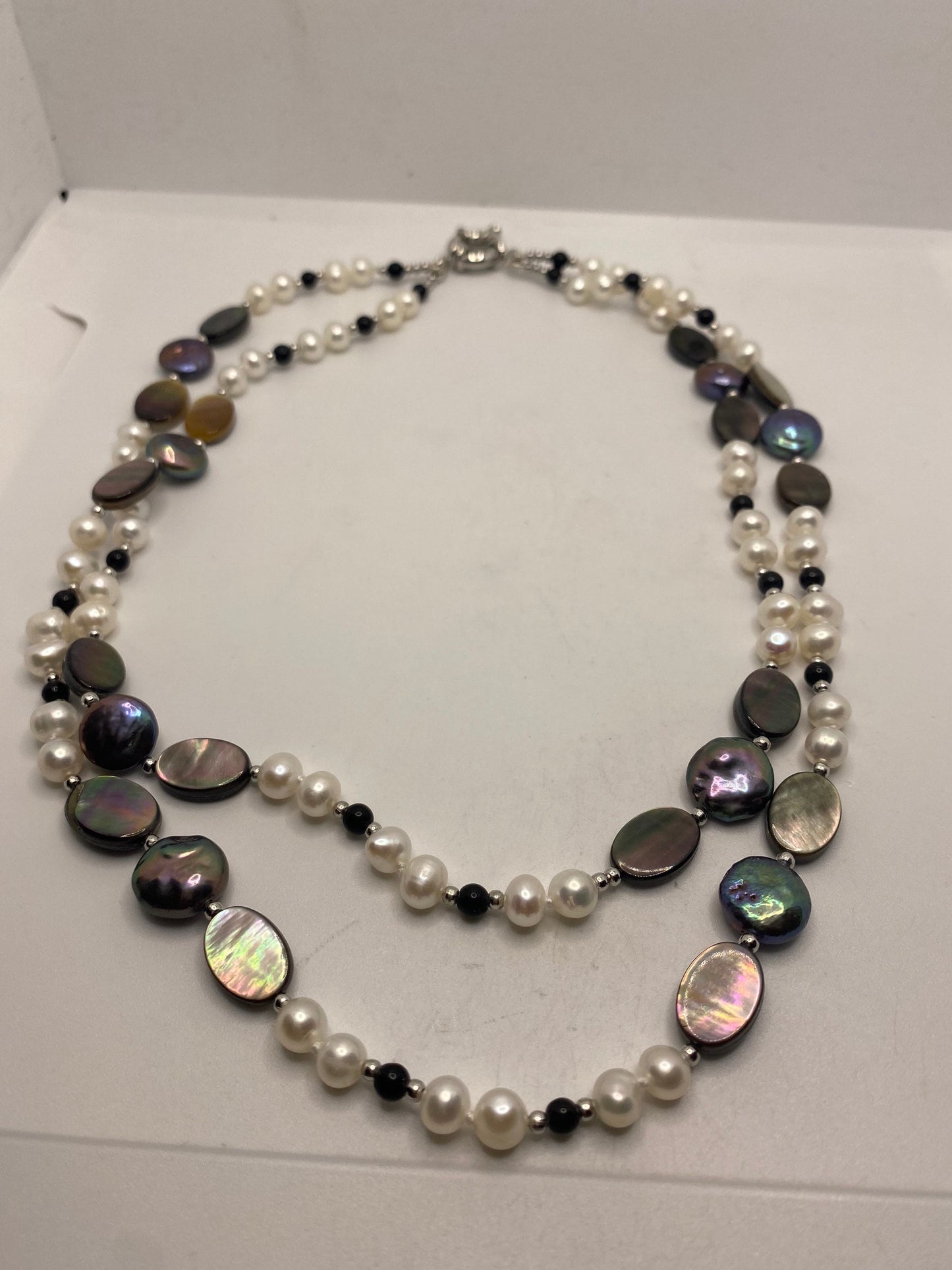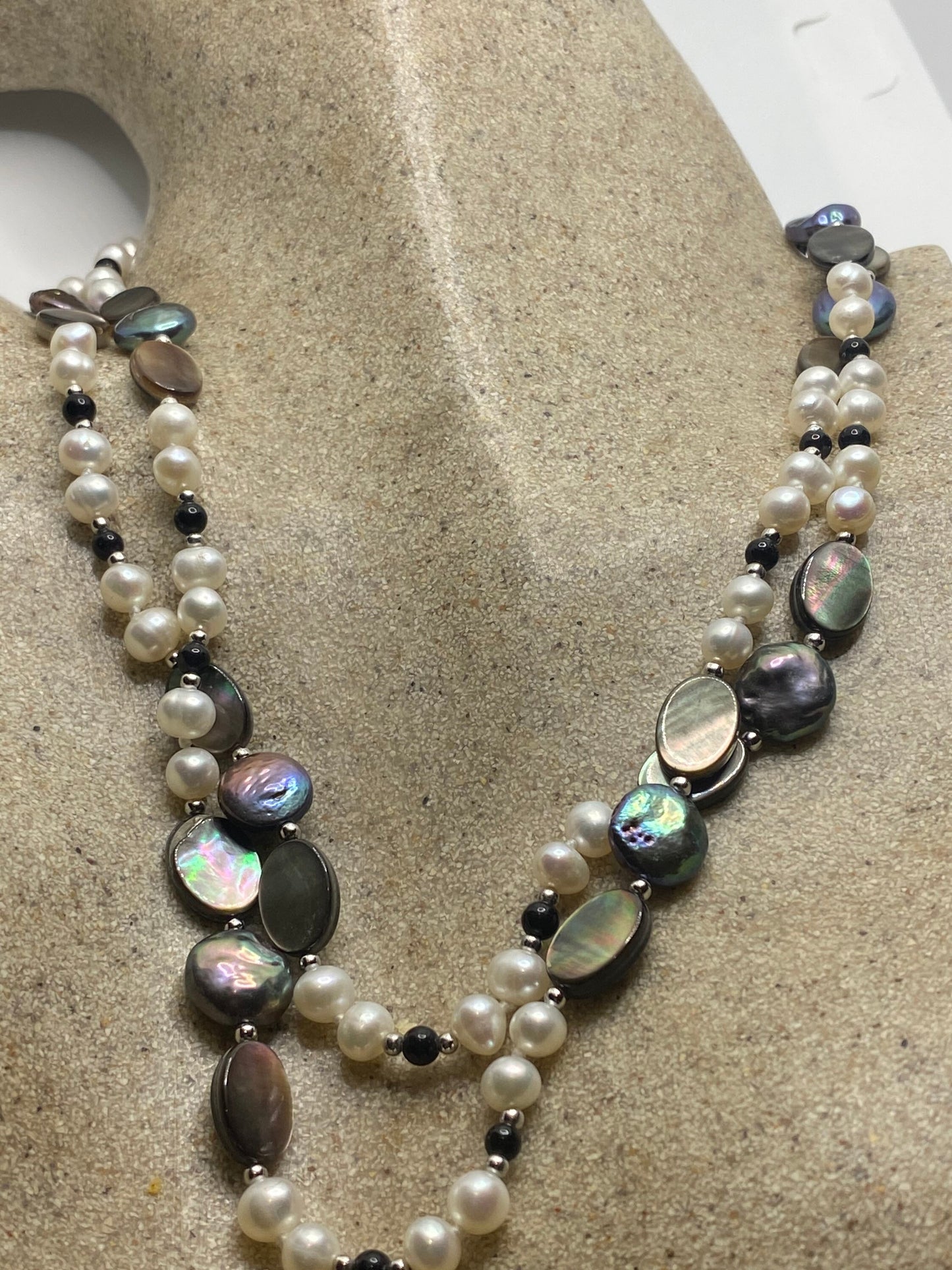 Vintage Hand Knotted Grey Pearl Double 18 in Necklace
