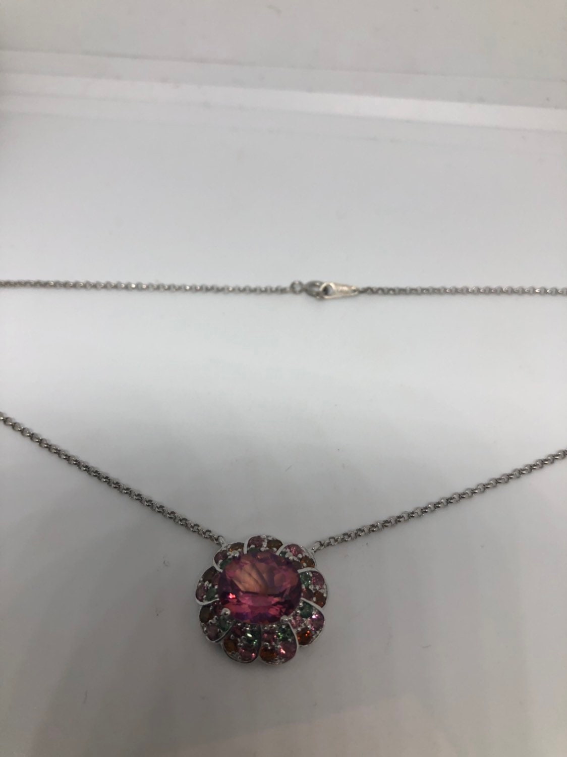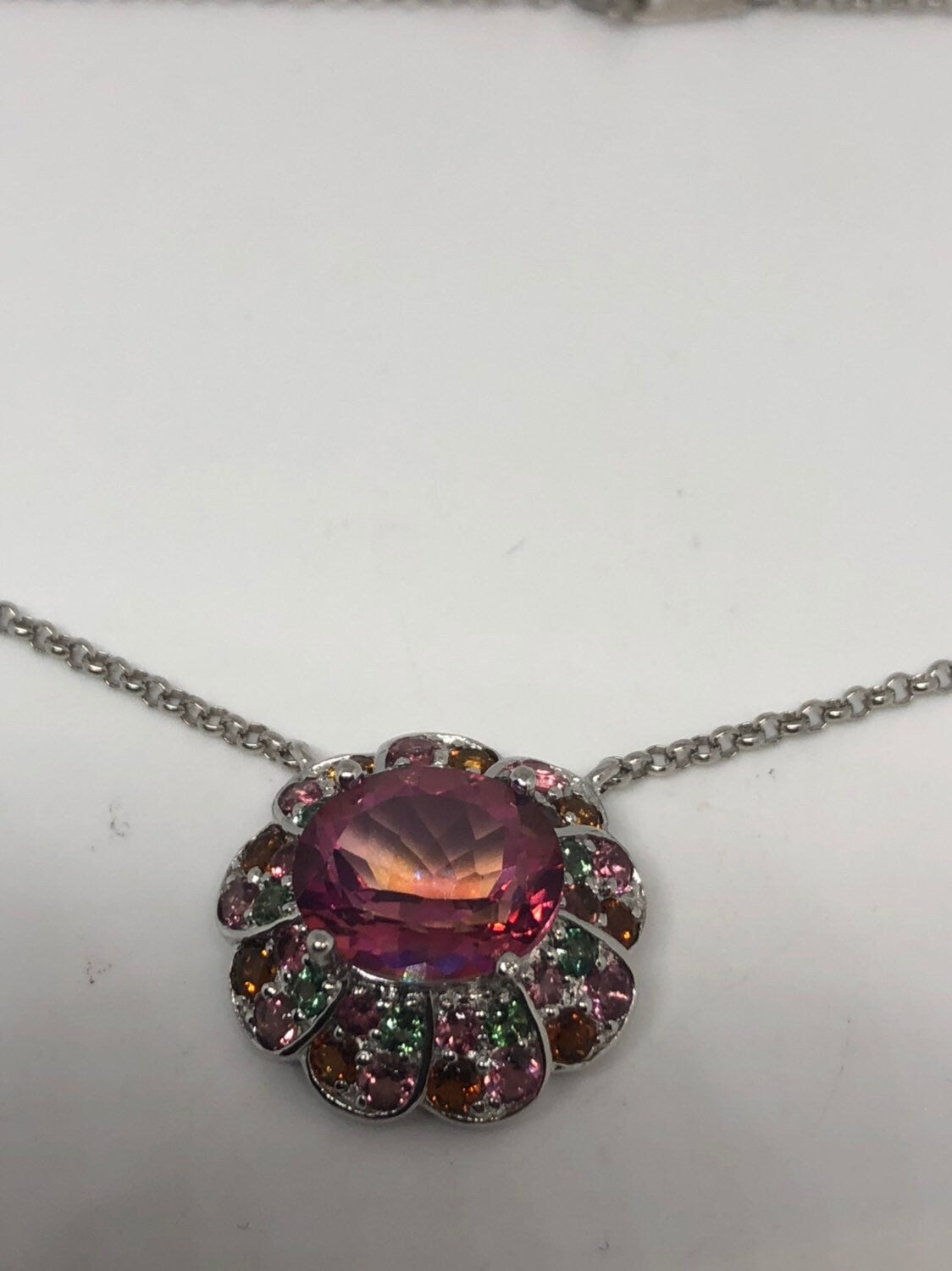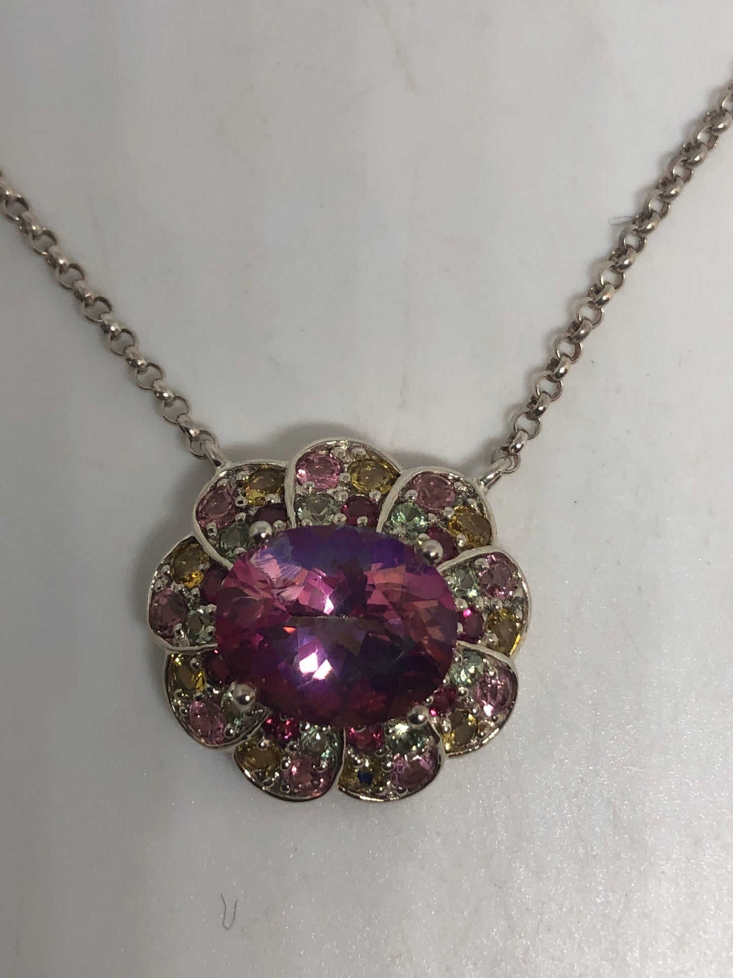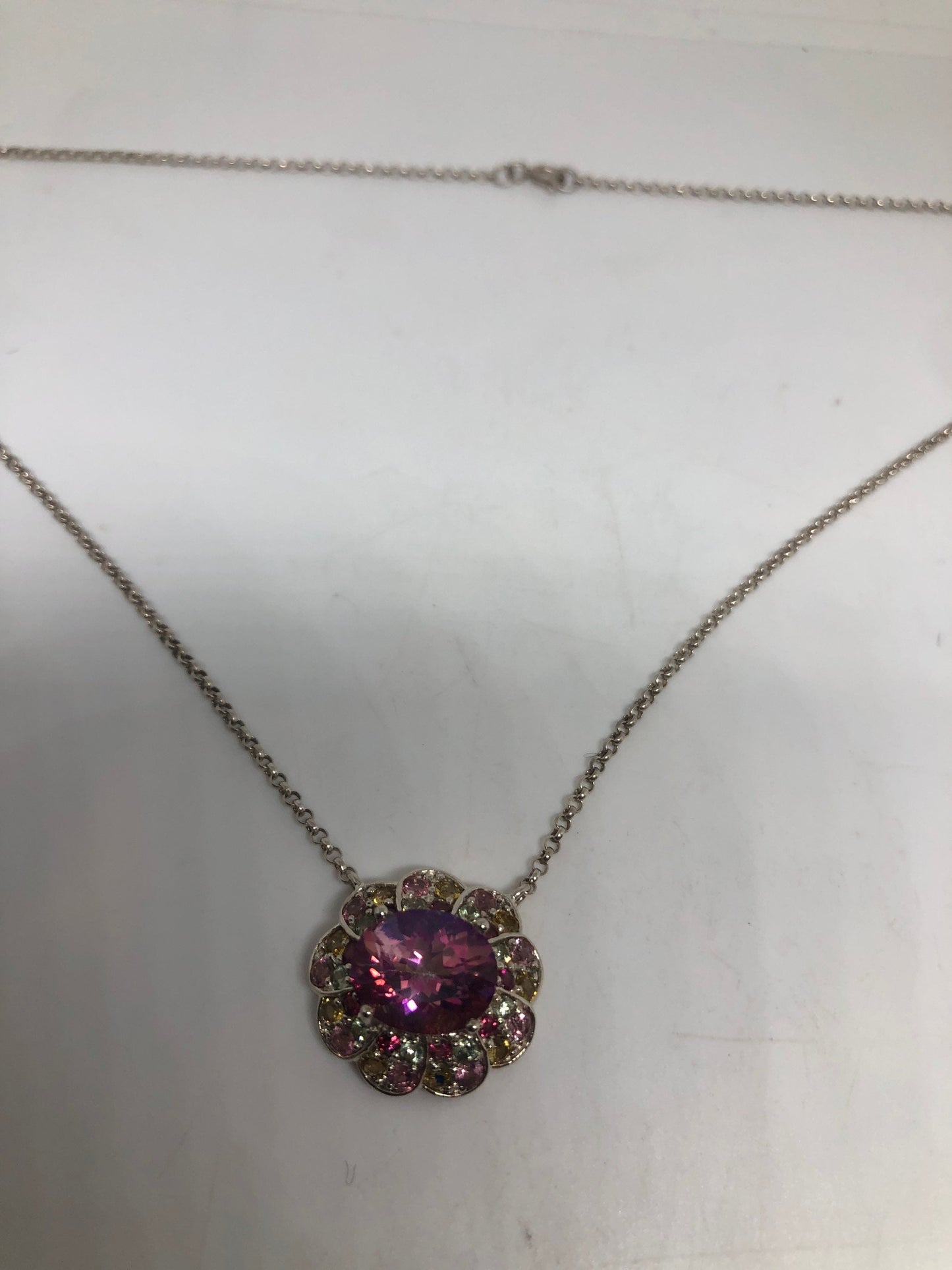 Vintage Handmade 925 Sterling Silver Genuine Pink Mystic Topaz Antique Pendant Necklace