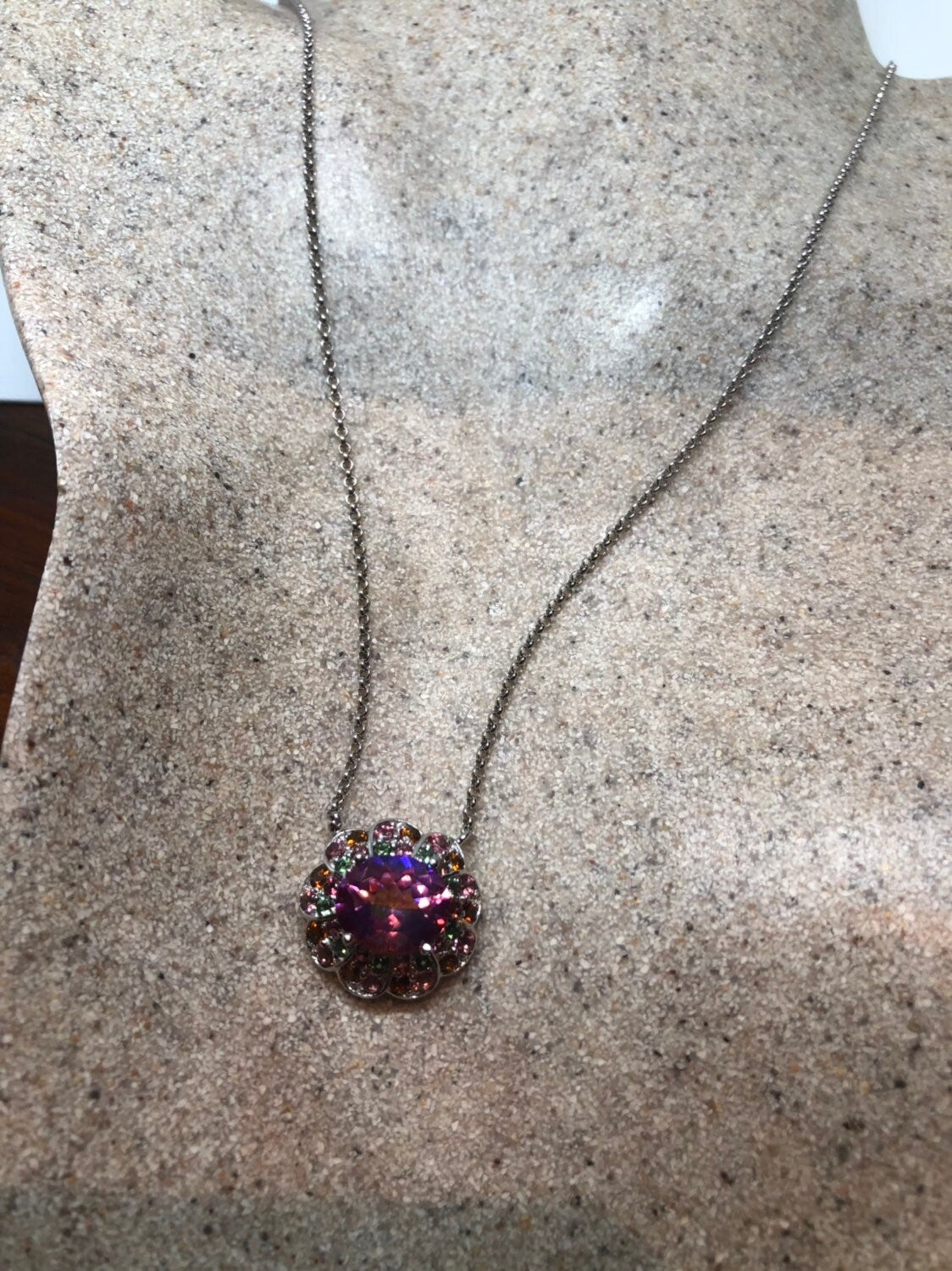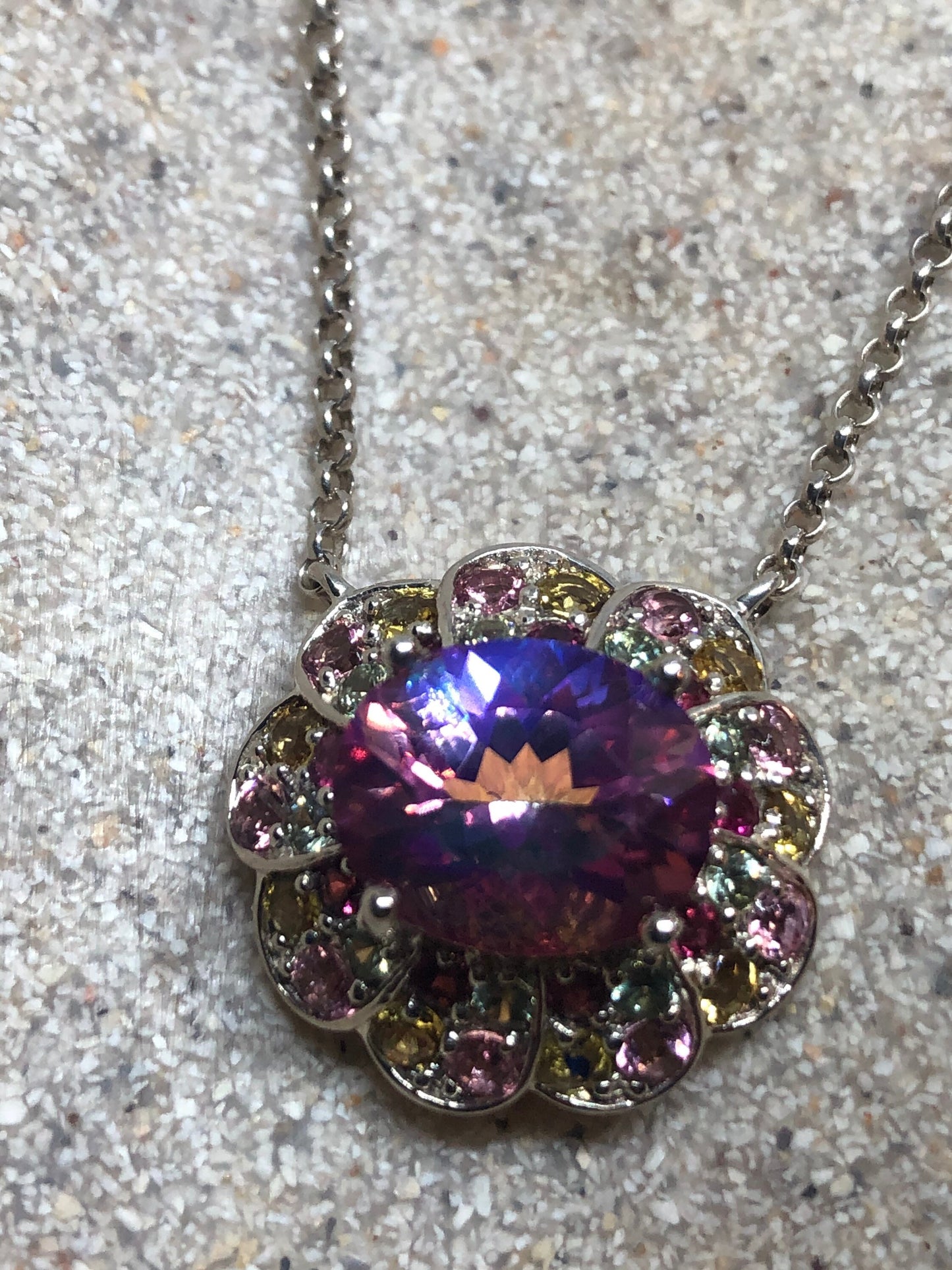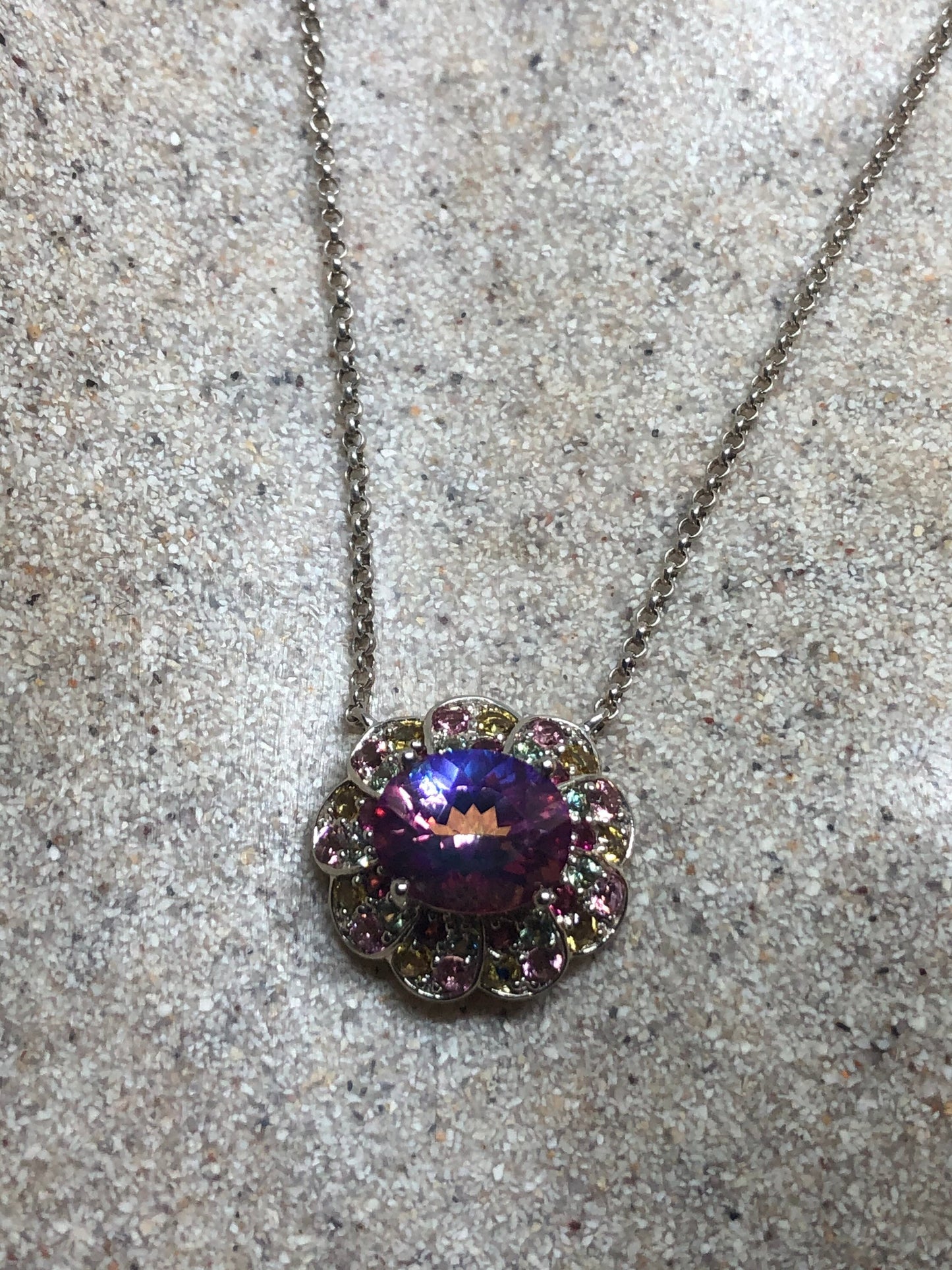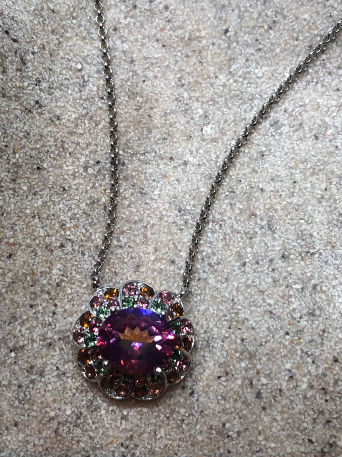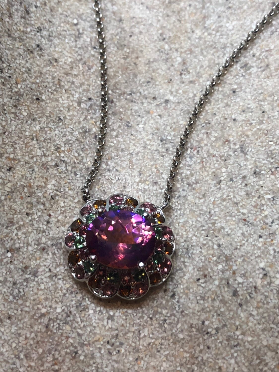Vintage Handmade 925 Sterling Silver Genuine Pink Mystic Topaz Antique Pendant Necklace