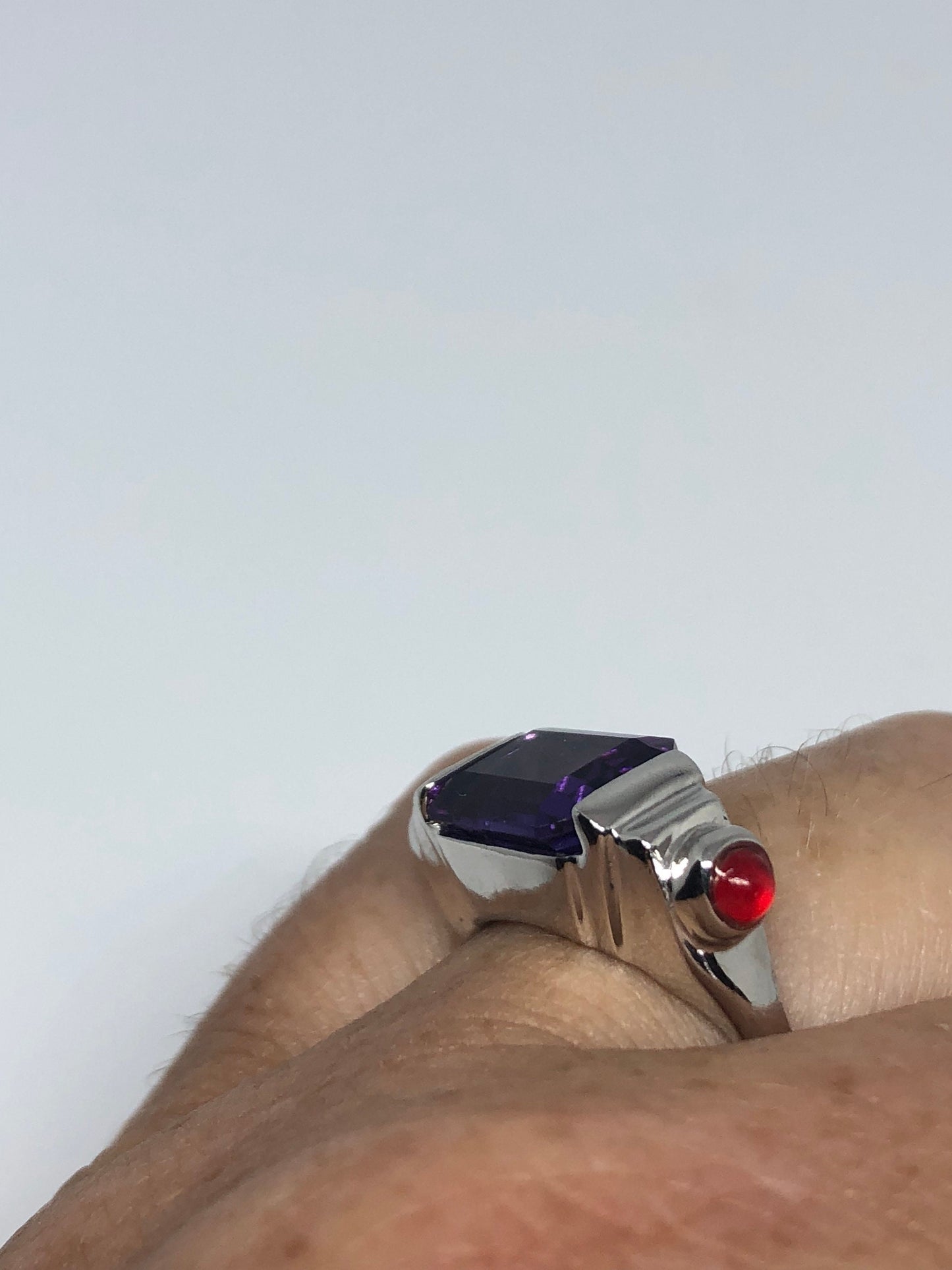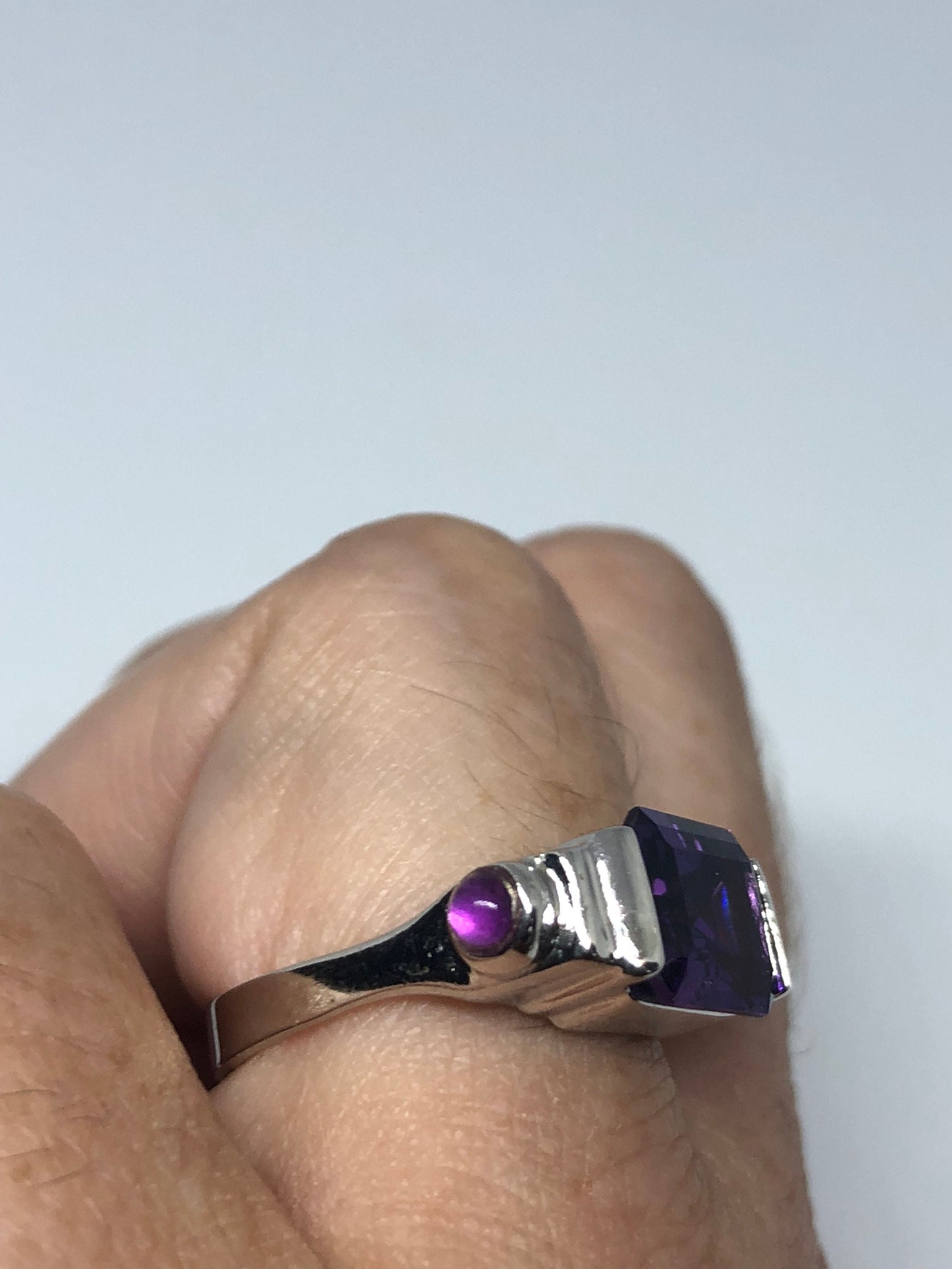 Vintage Handmade Deep Purple Genuine Amethyst Setting 925 Sterling Silver Gothic Ring