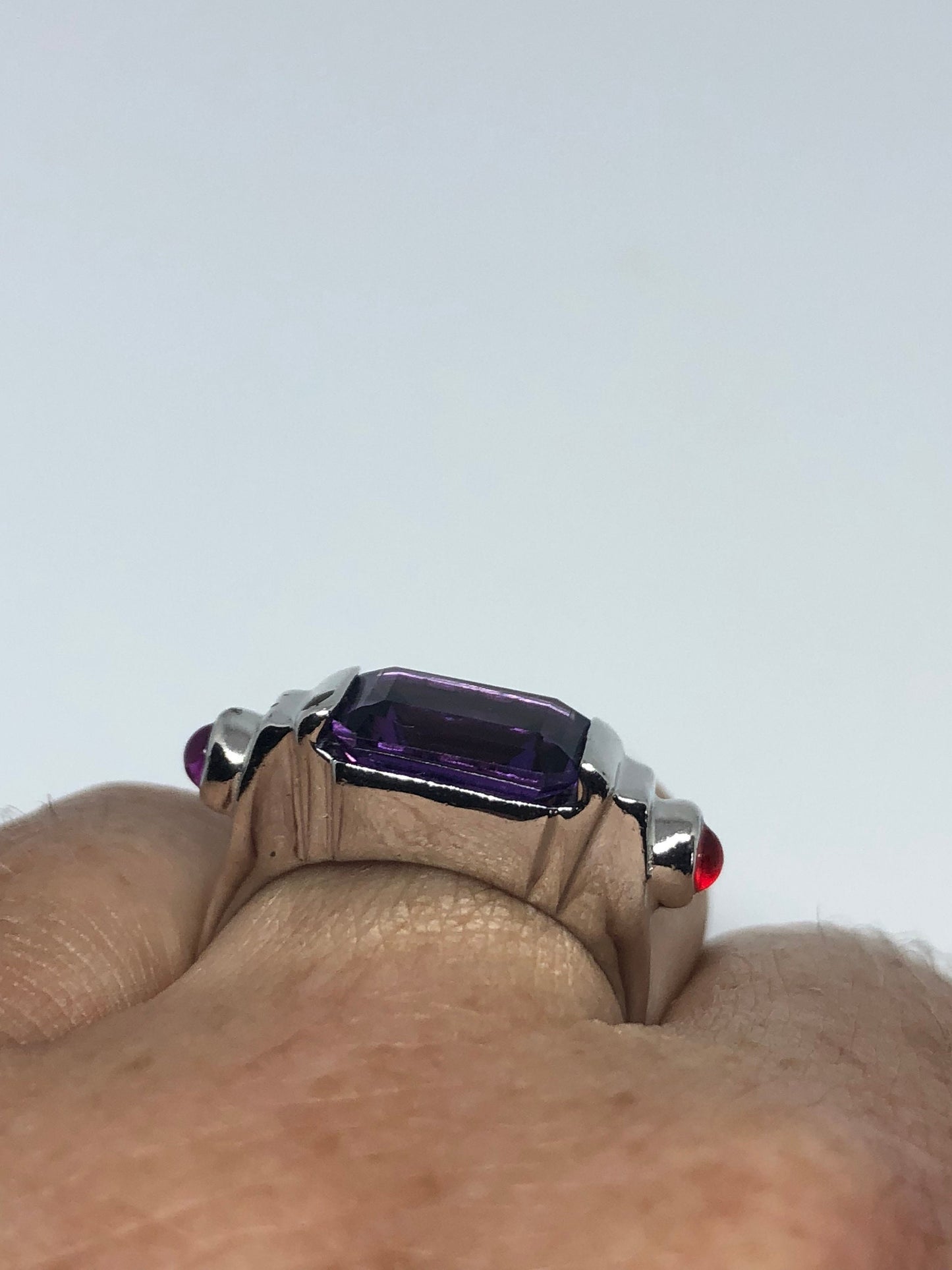 Small garnet and amethyst set in sides