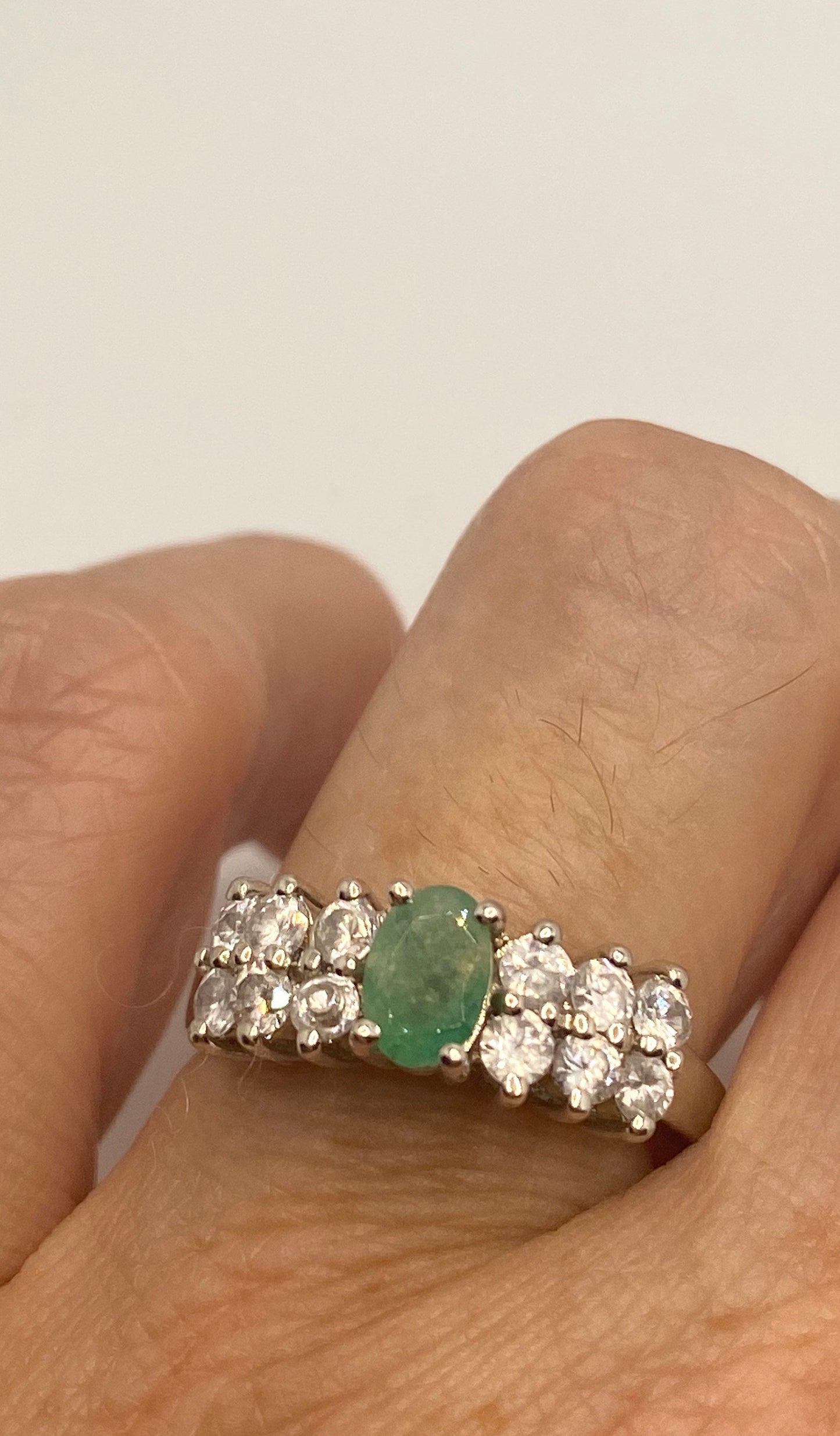 Vintage Handmade Genuine Green Emerald Setting 925 Sterling Silver Gothic Ring