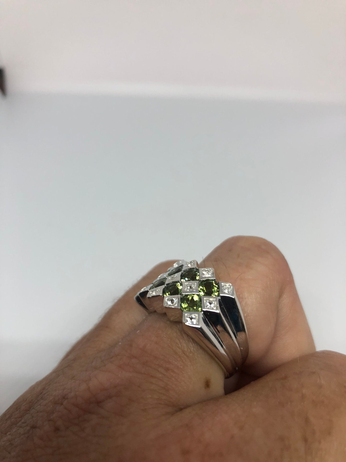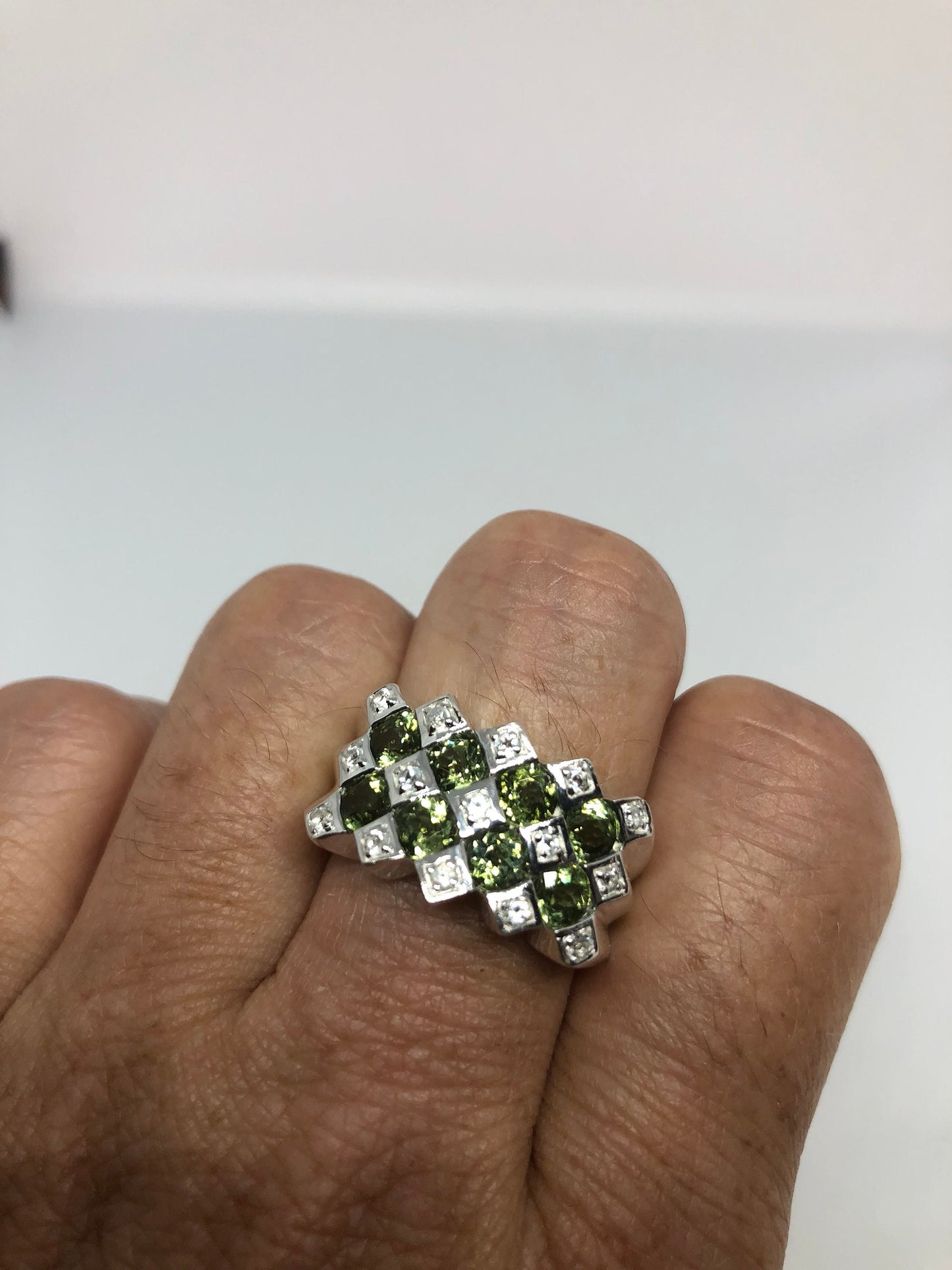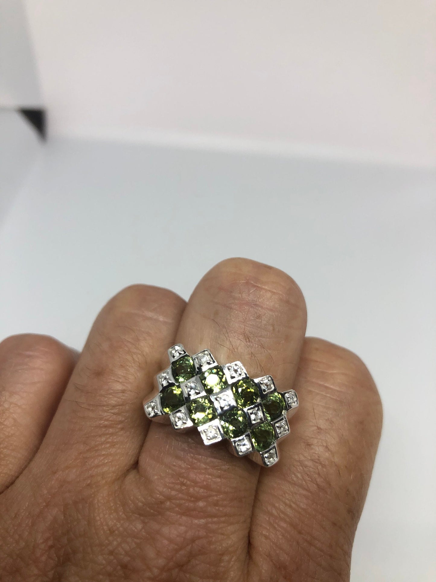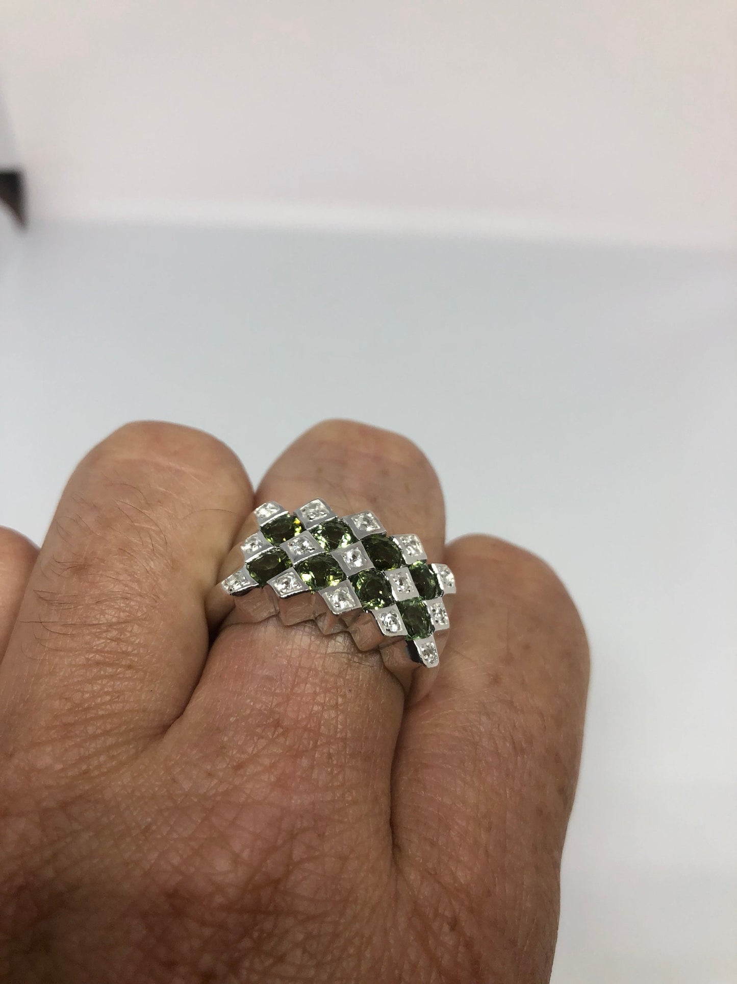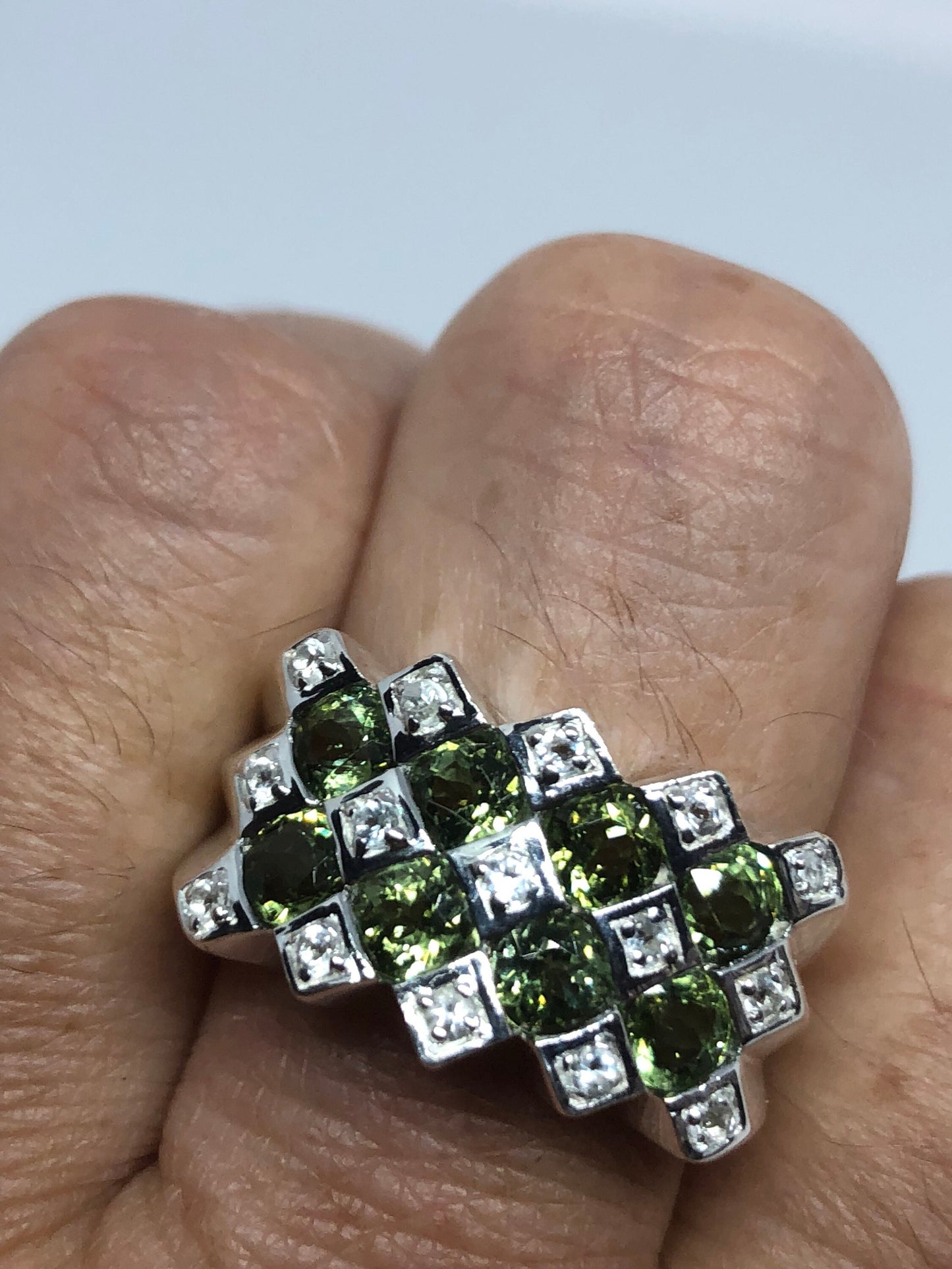 Vintage Handmade Genuine Green Peridot Filigree Setting 925 Sterling Silver Gothic Ring