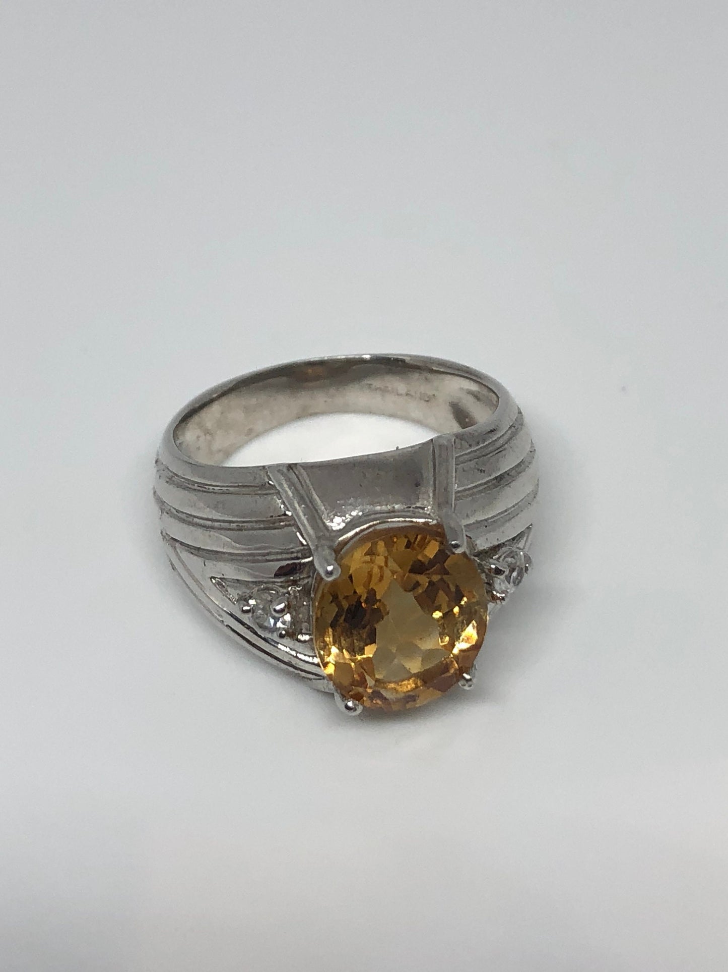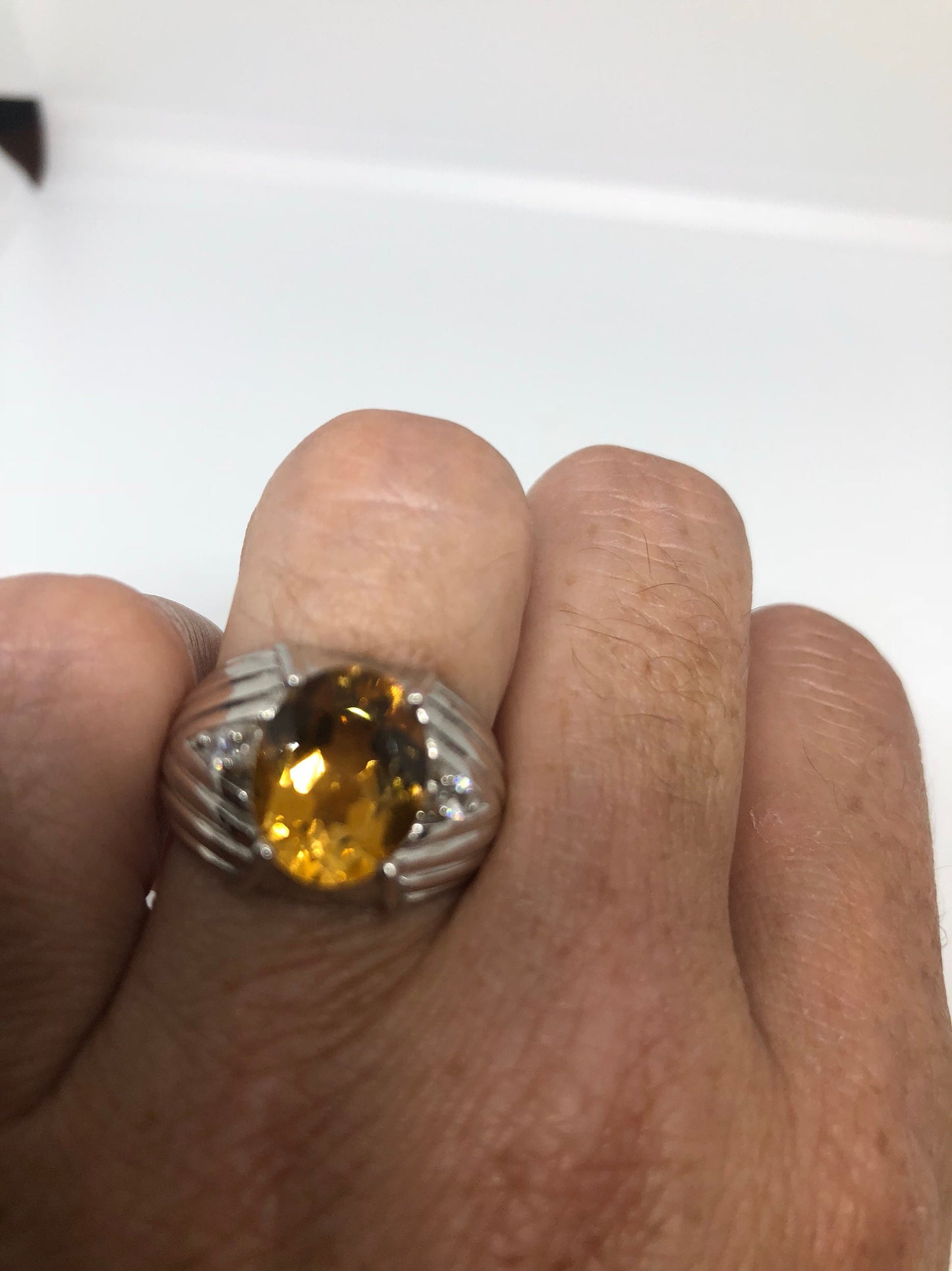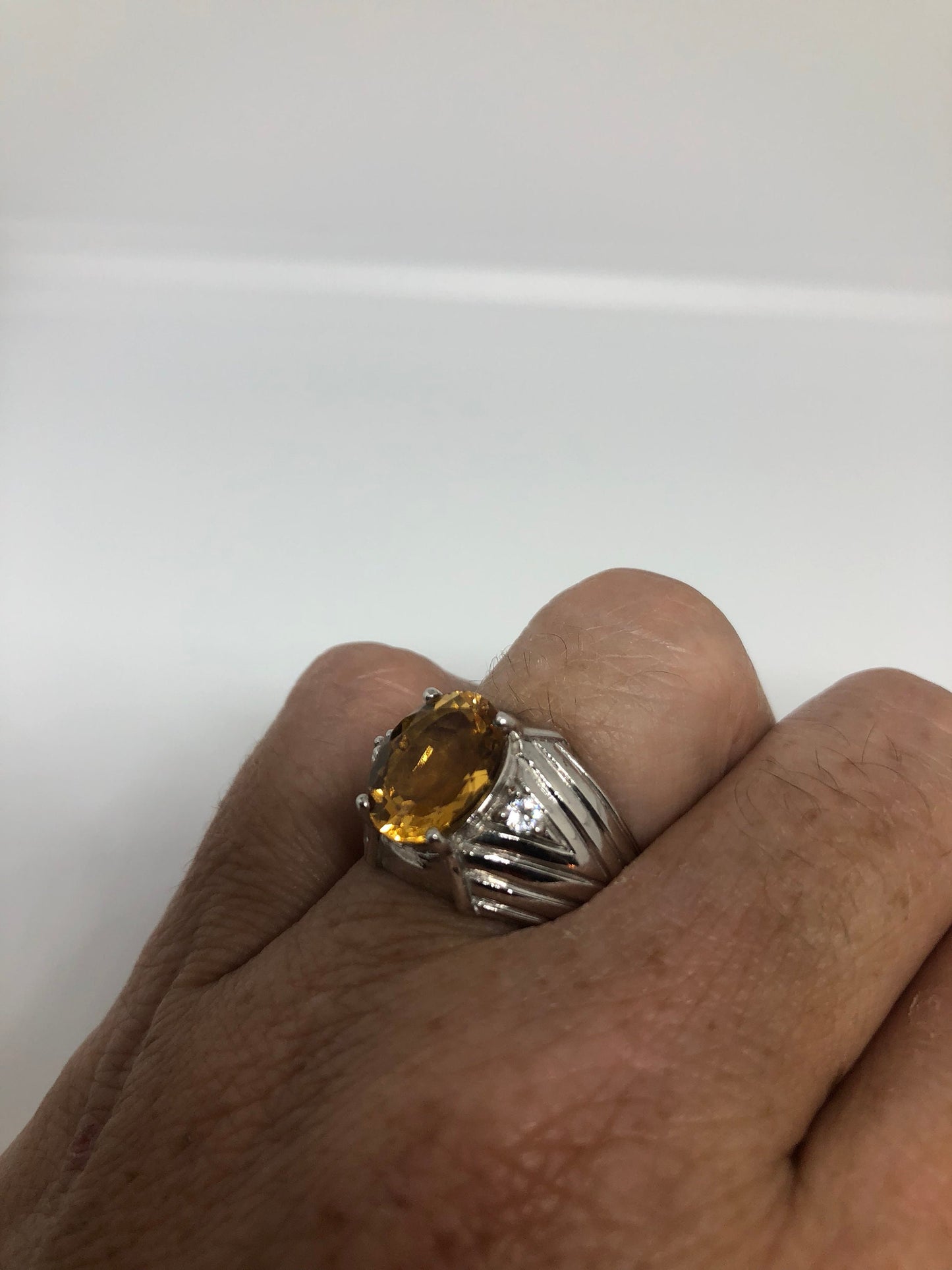 Vintage Handmade Golden Genuine Citrine 925 Sterling Silver Gothic Ring