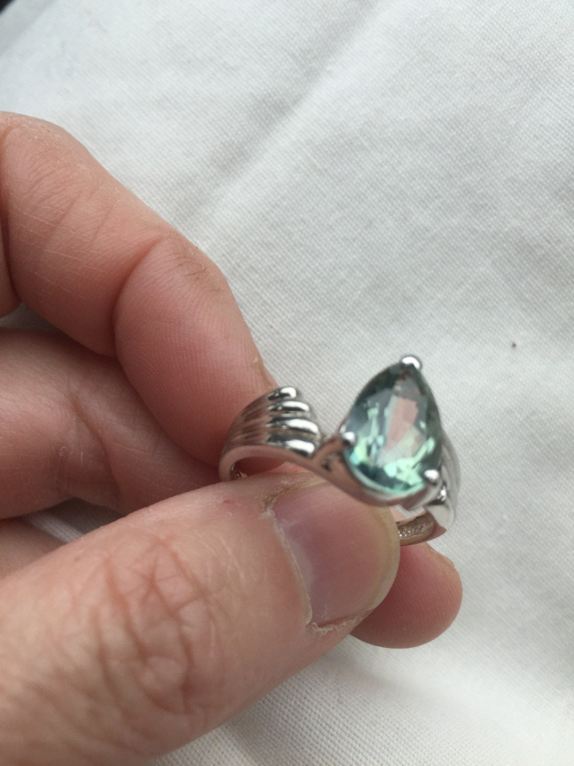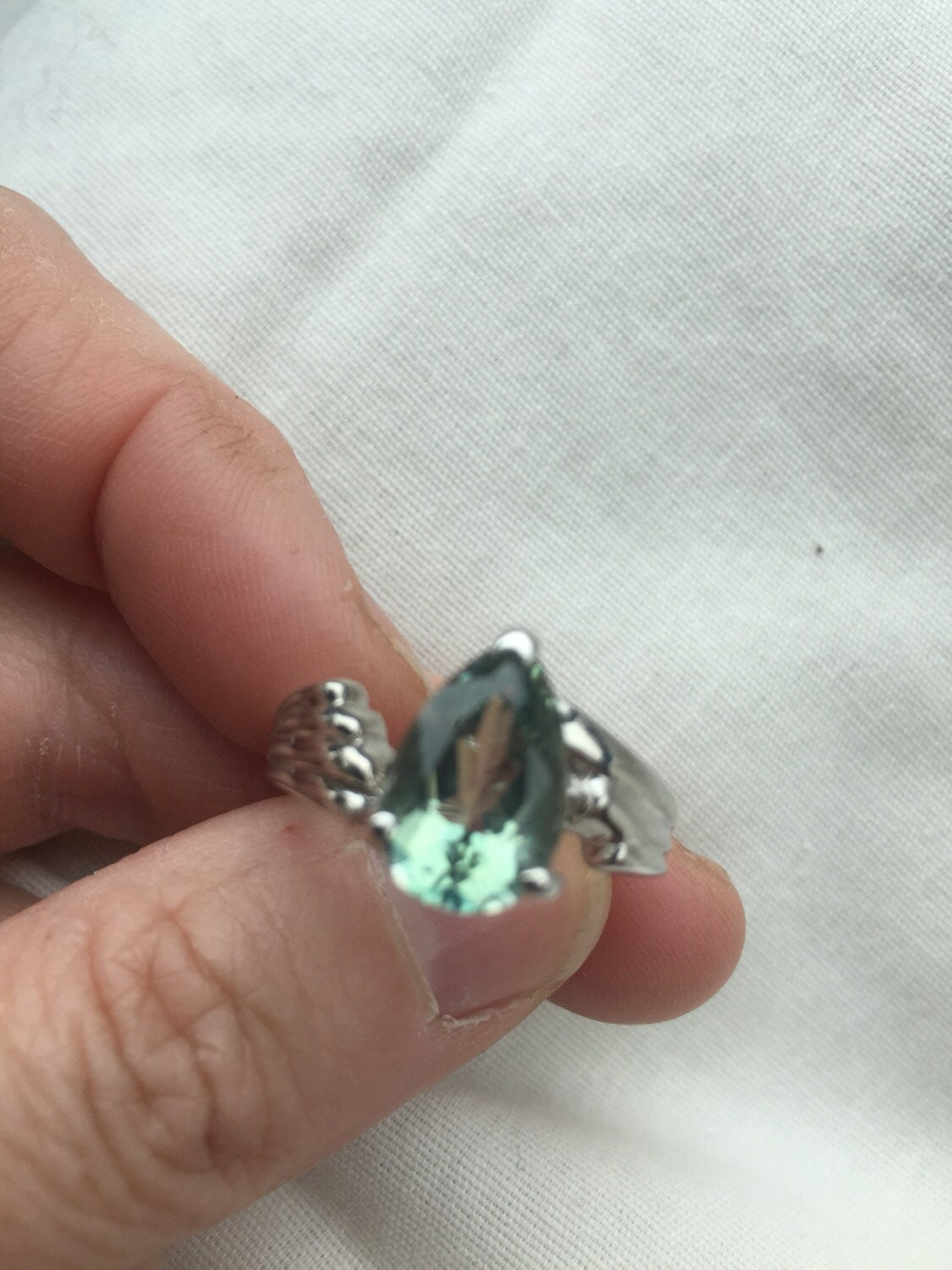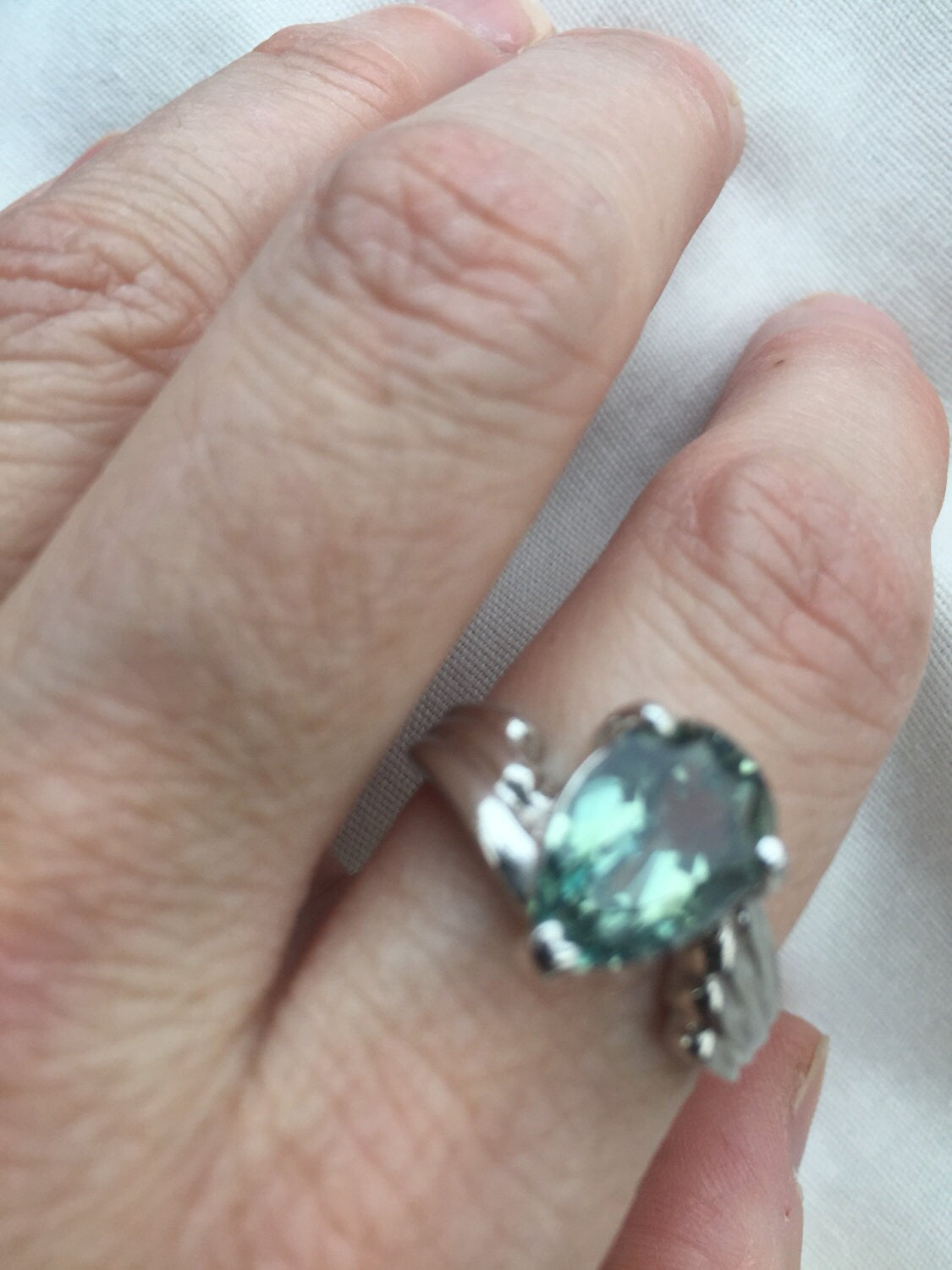 Vintage Handmade Pale Genuine Green Amethyst 925 Sterling Silver Gothic Ring
