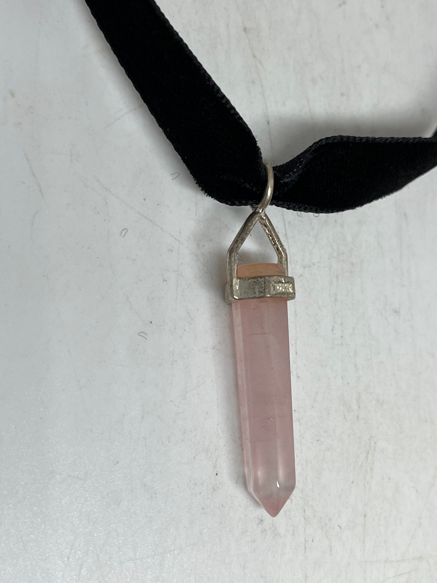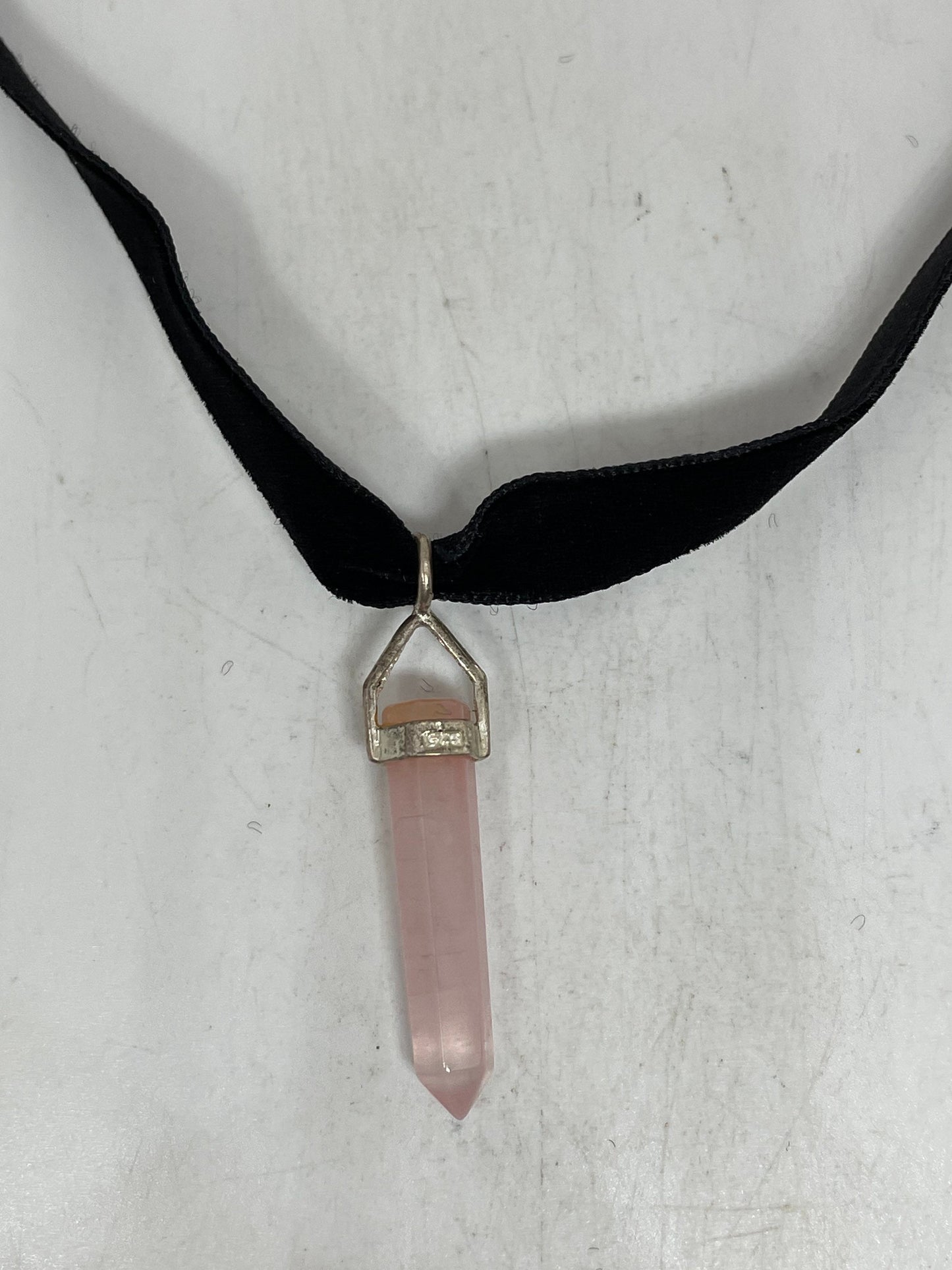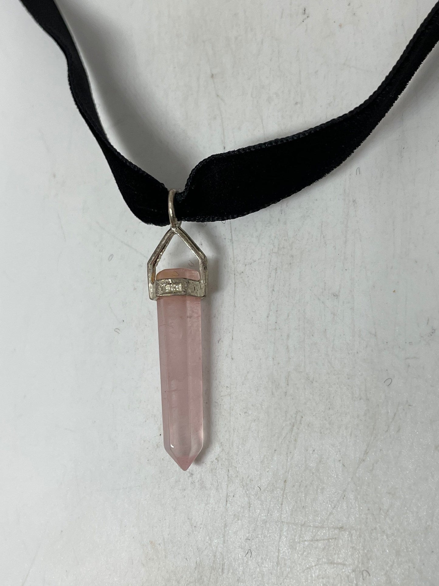 Vintage Handmade Silver Finish Rose Quartz Choker Pendant
