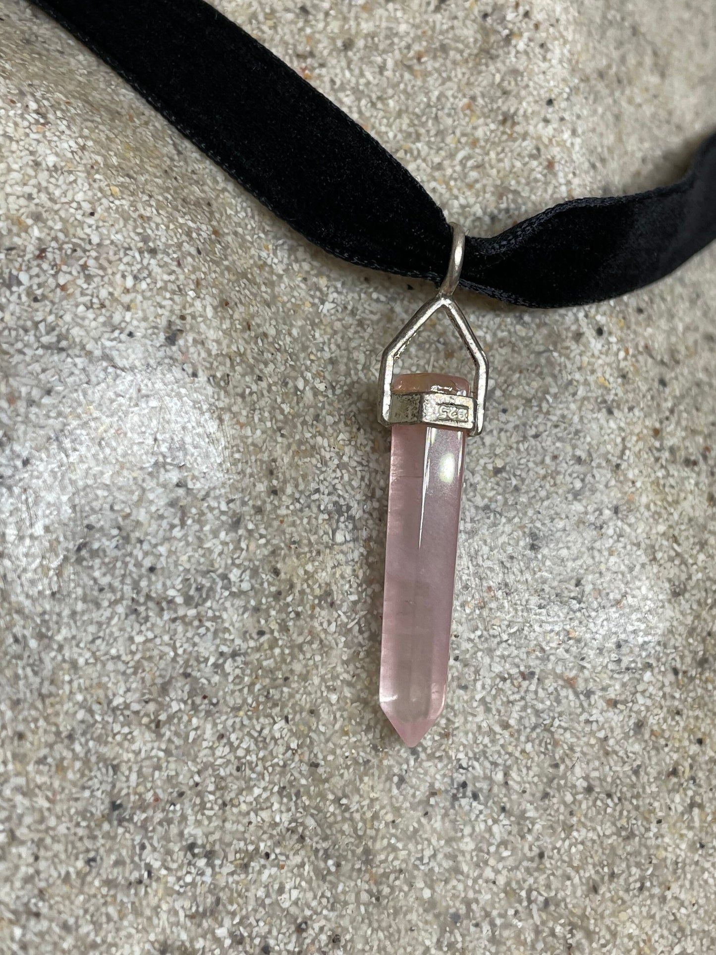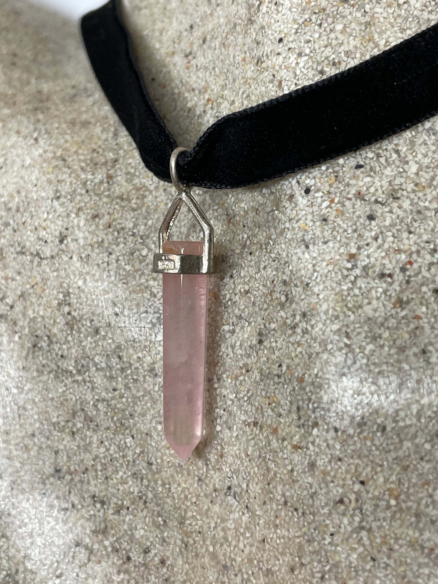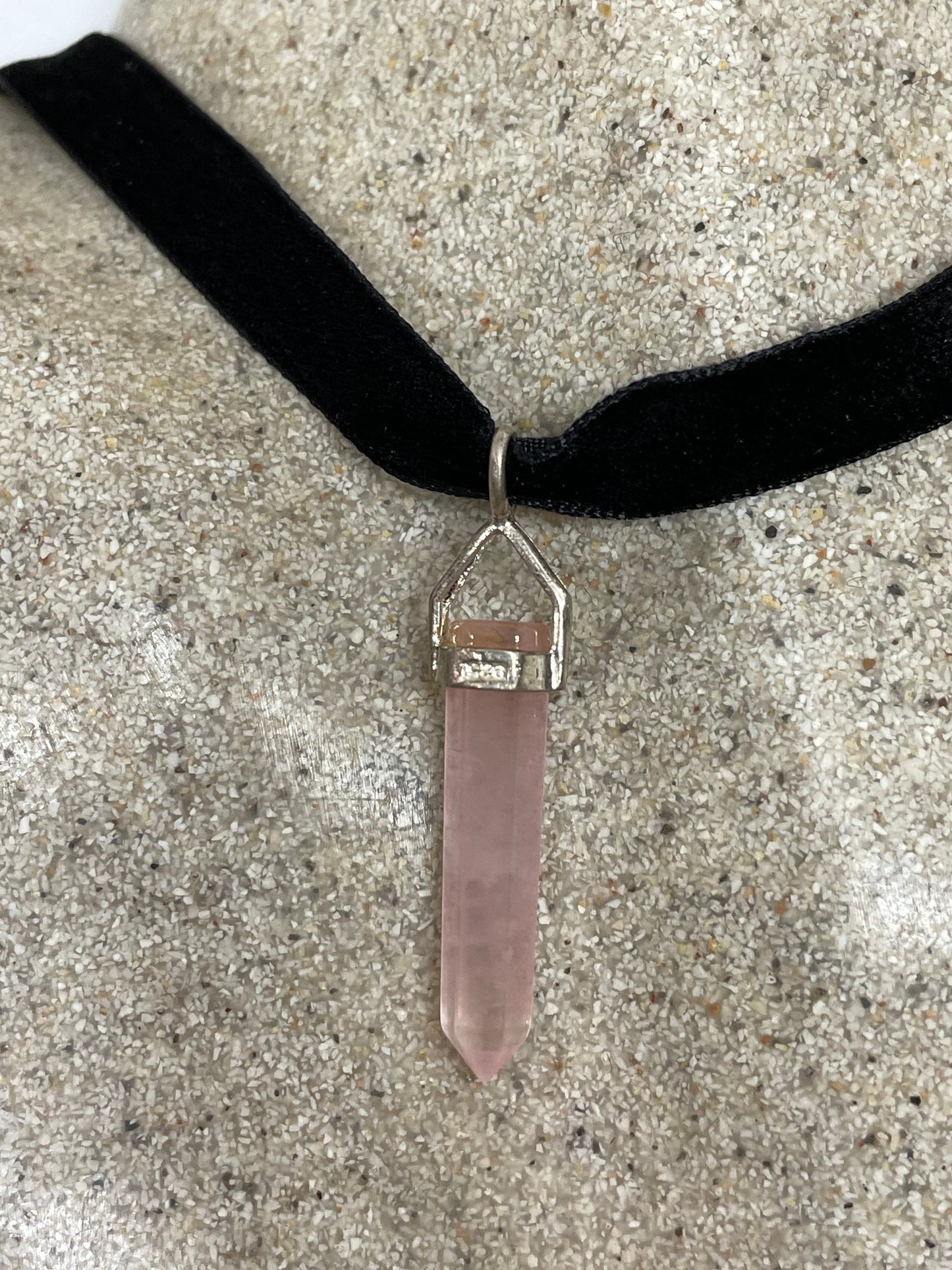 Vintage Handmade Silver Finish Rose Quartz Choker Pendant