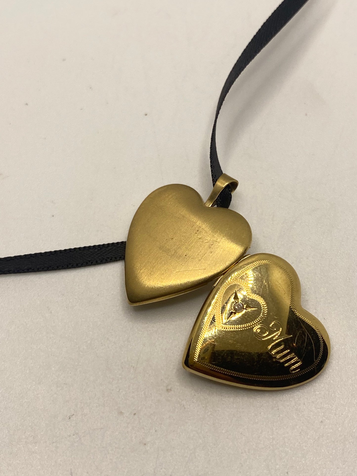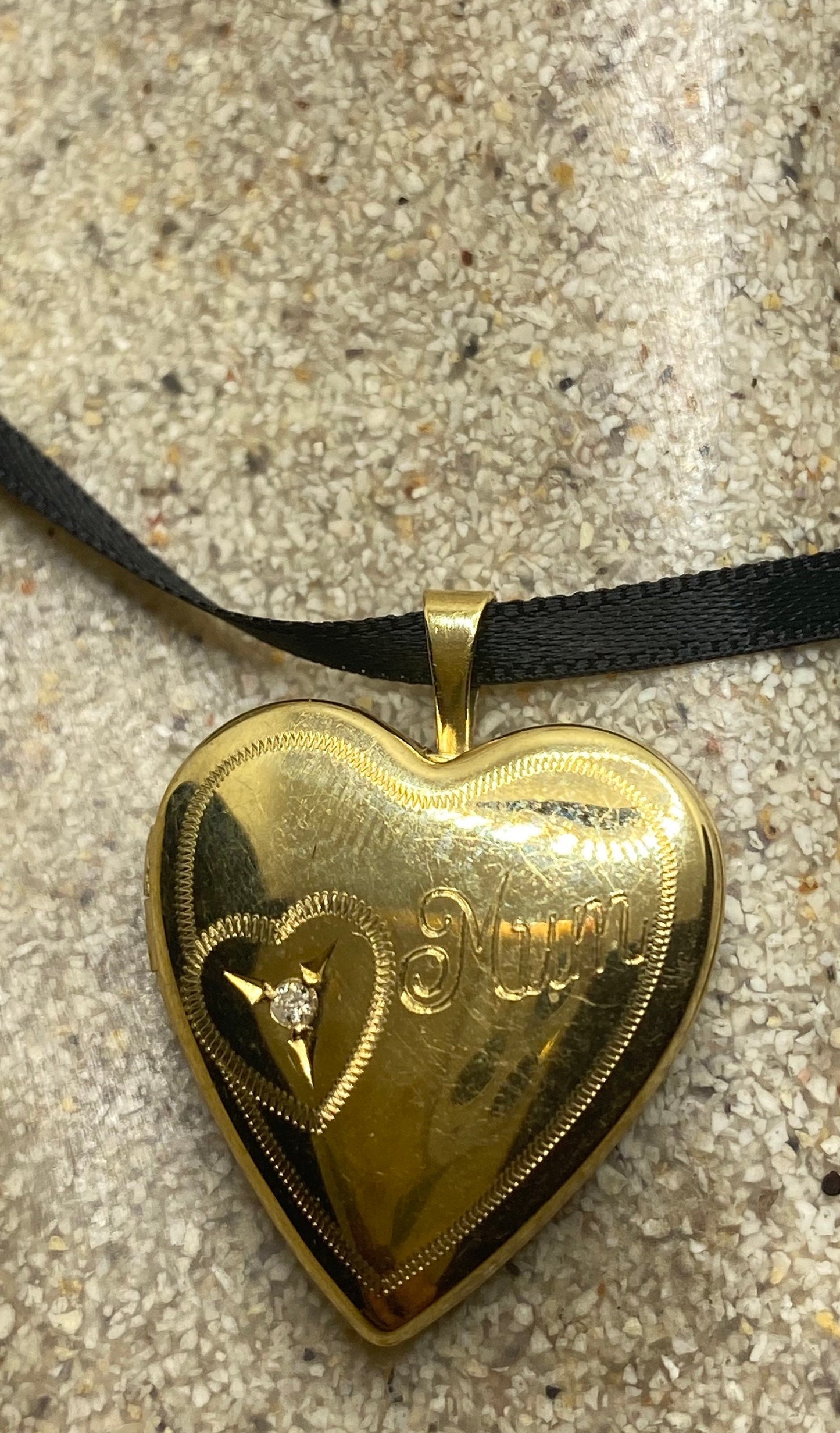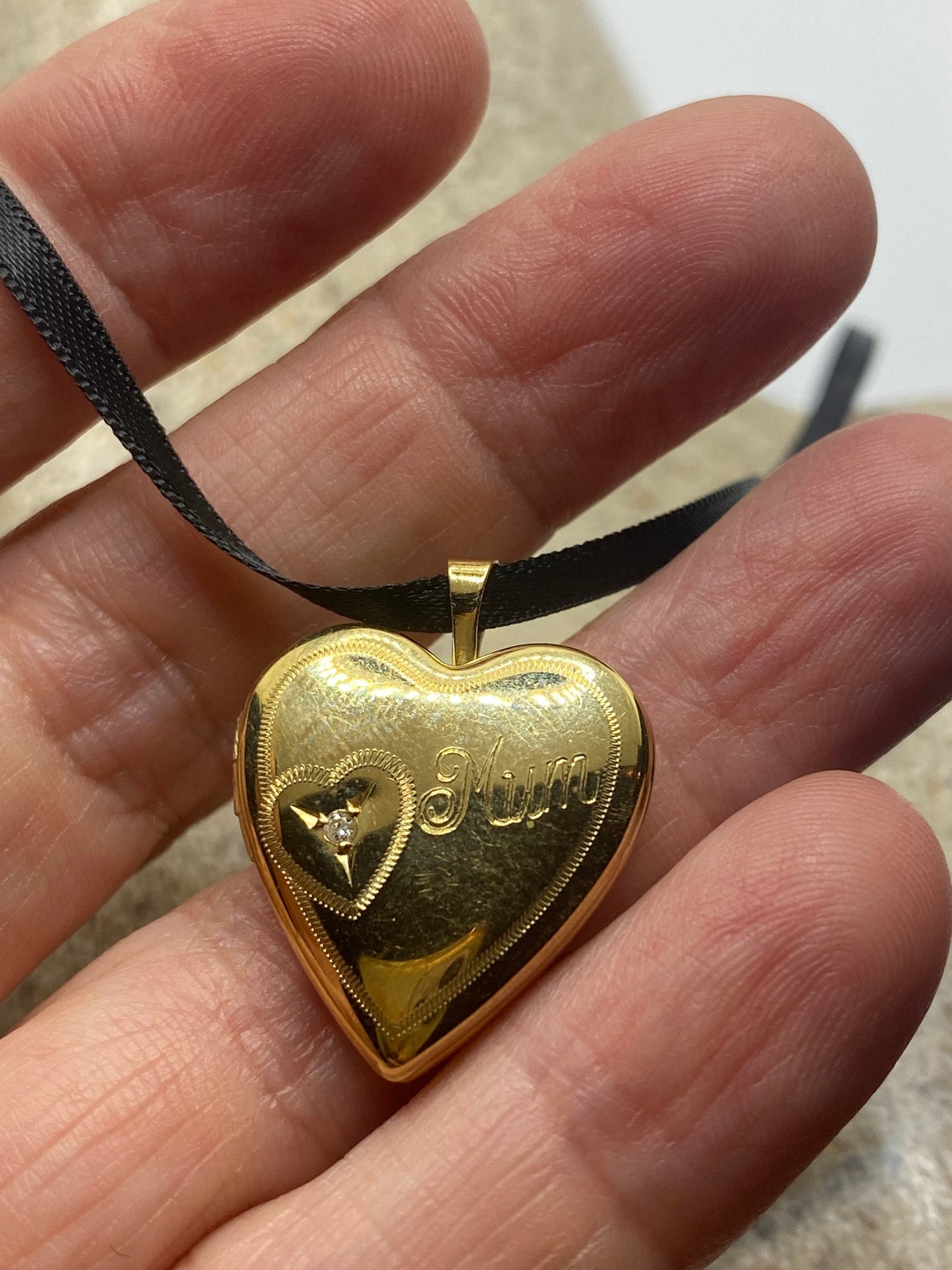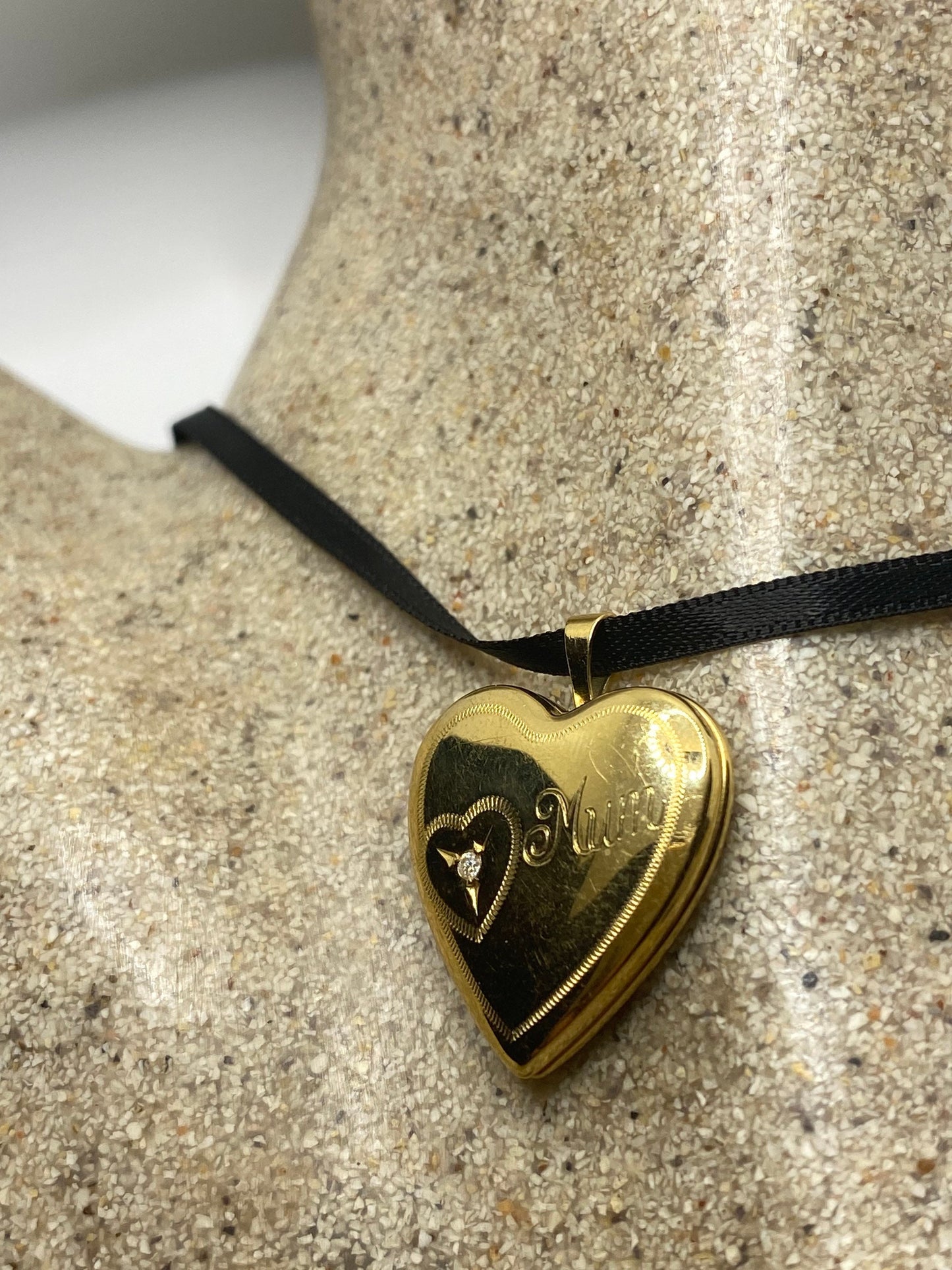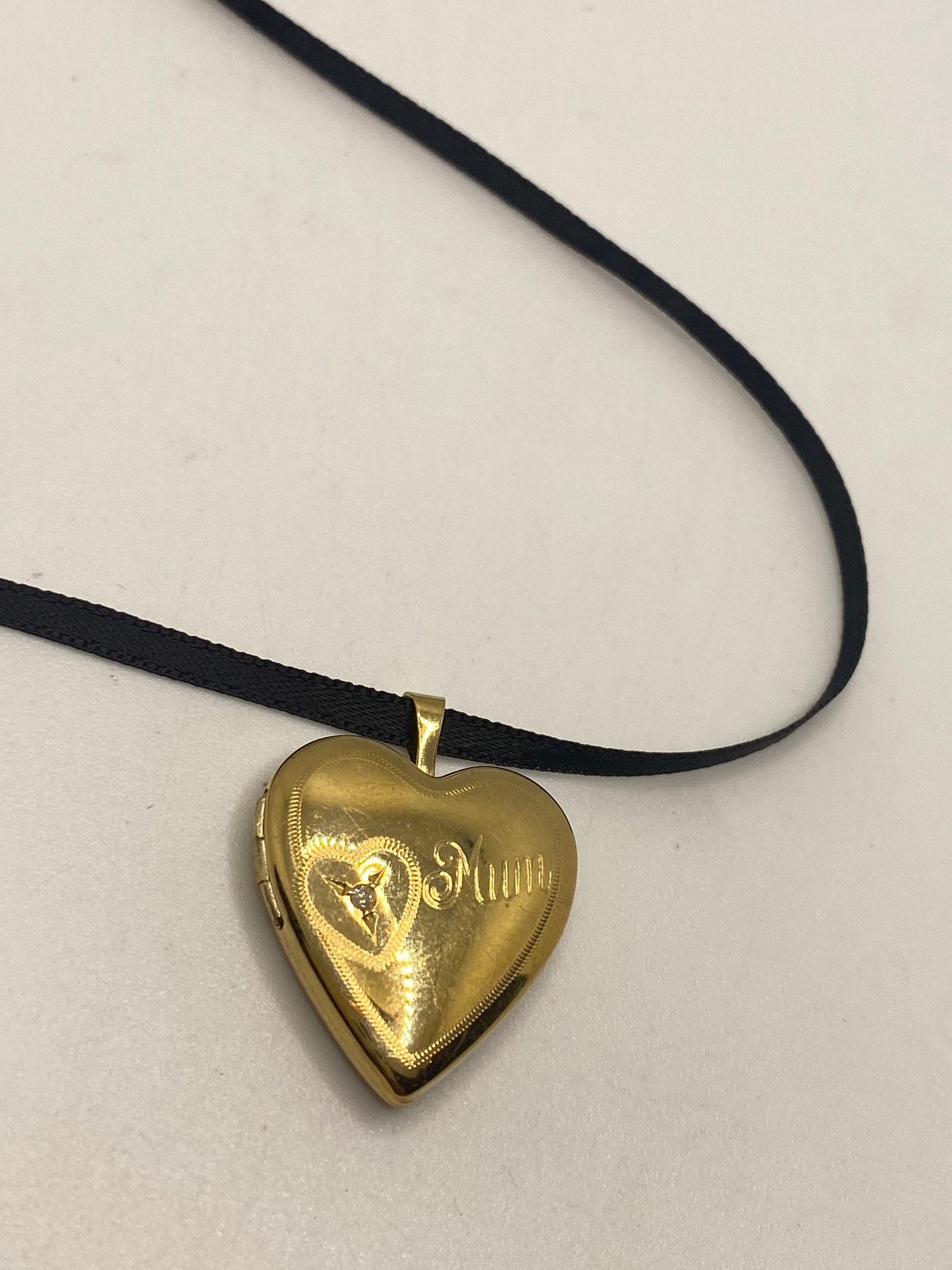Vintage heart locket choker gold fill with tiny diamond necklace