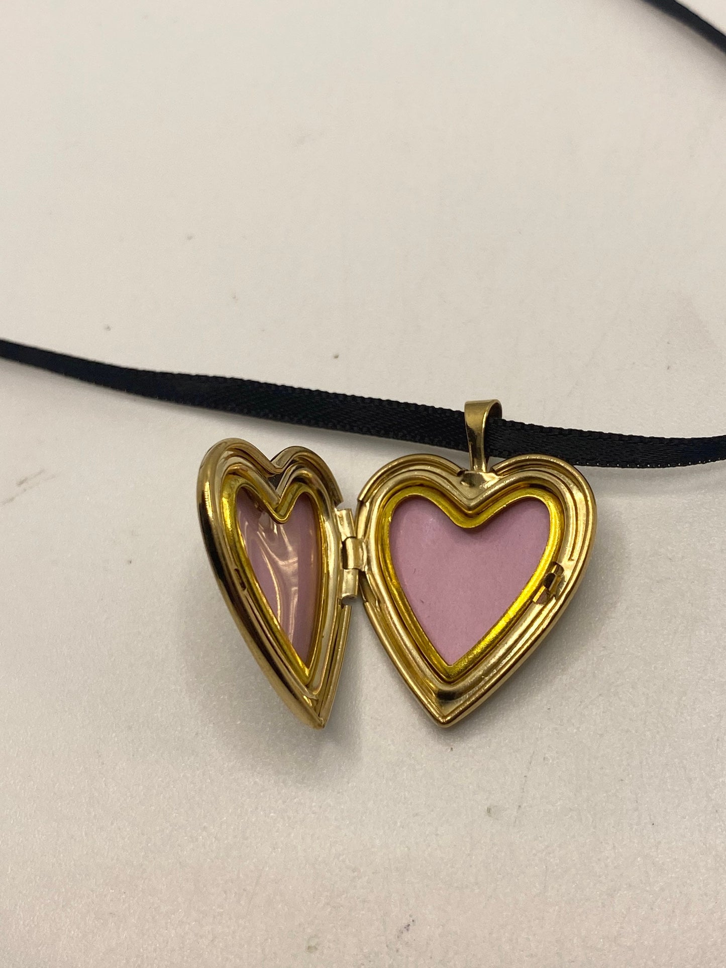 Hung on black thin ribbon