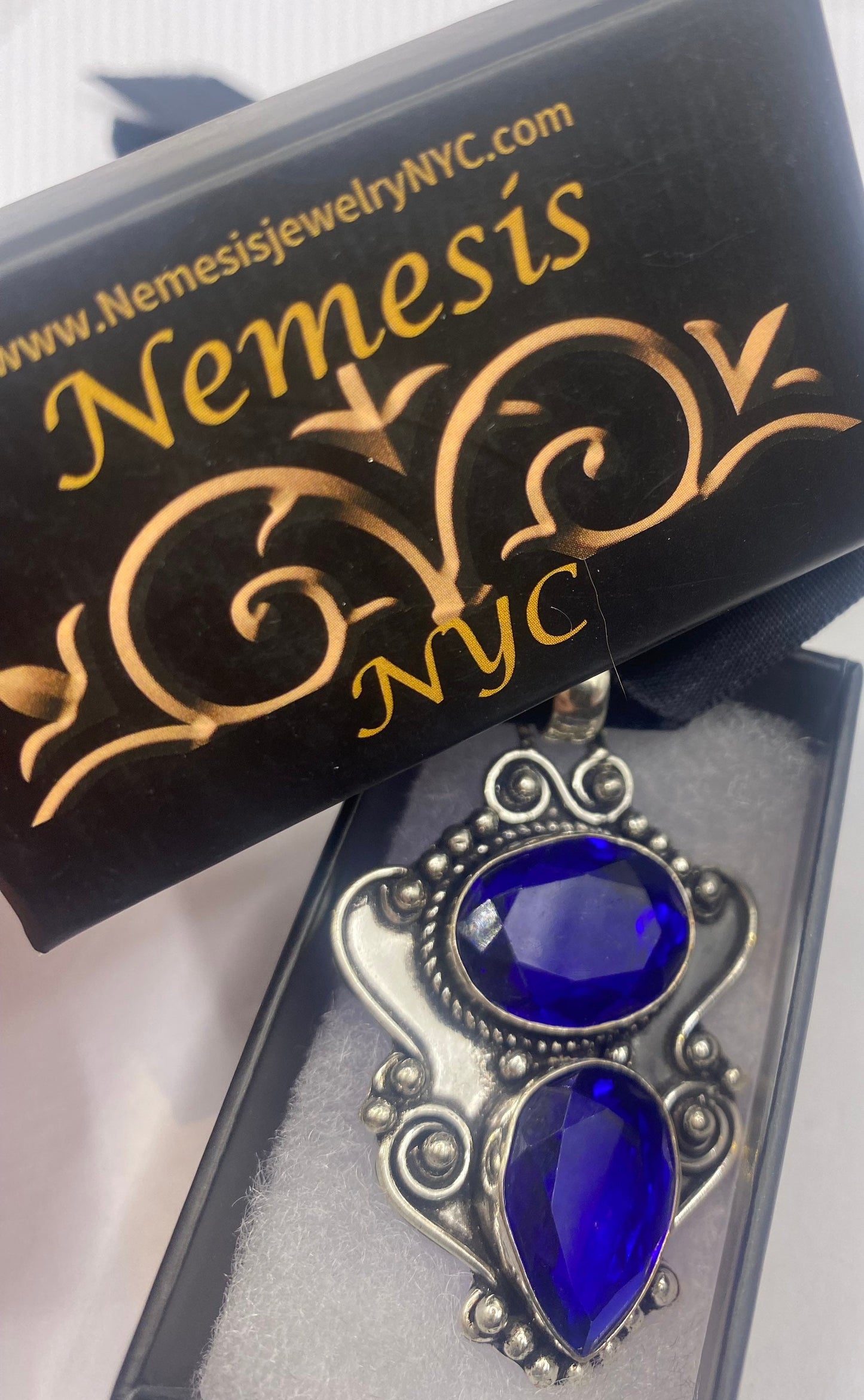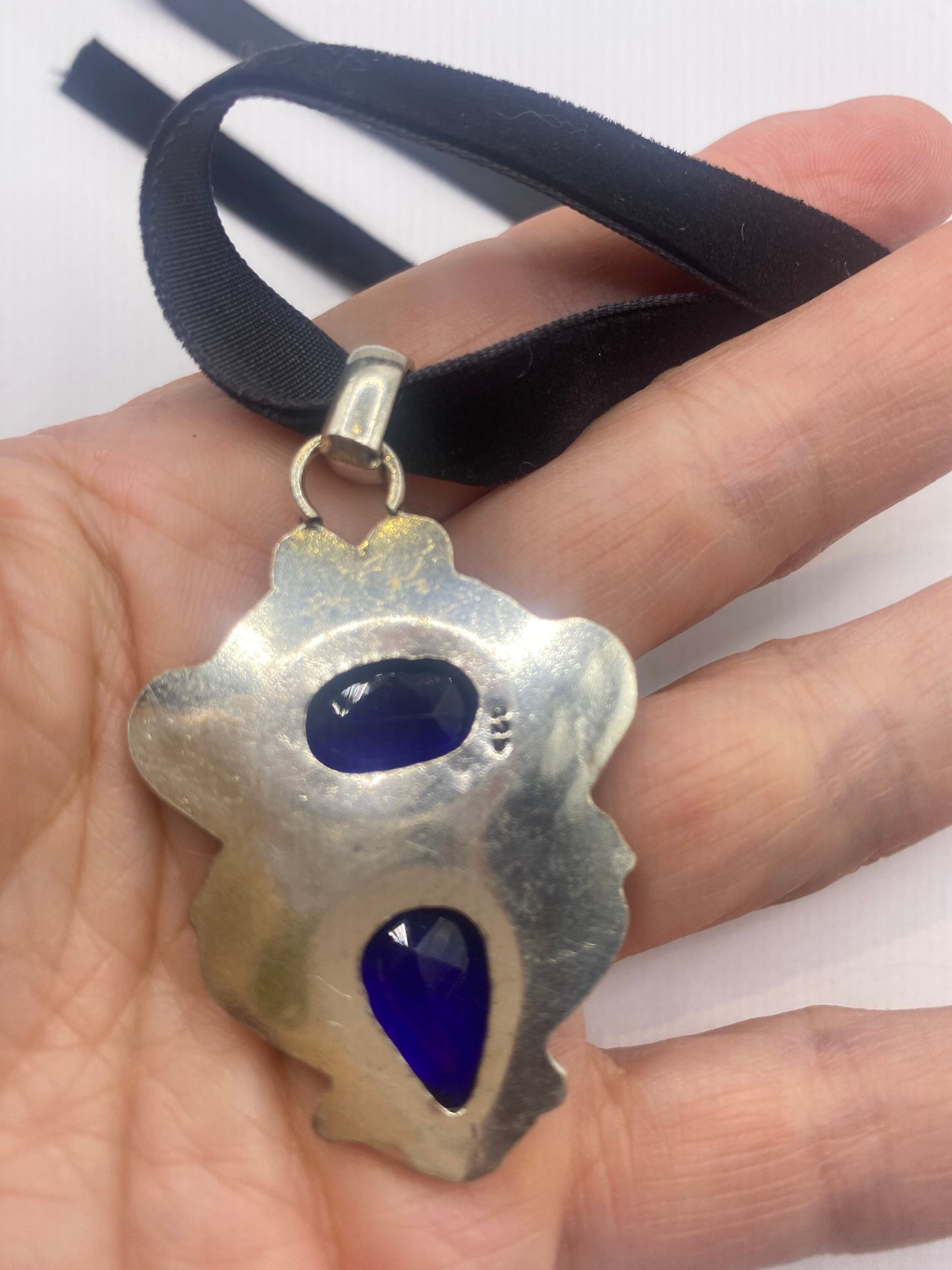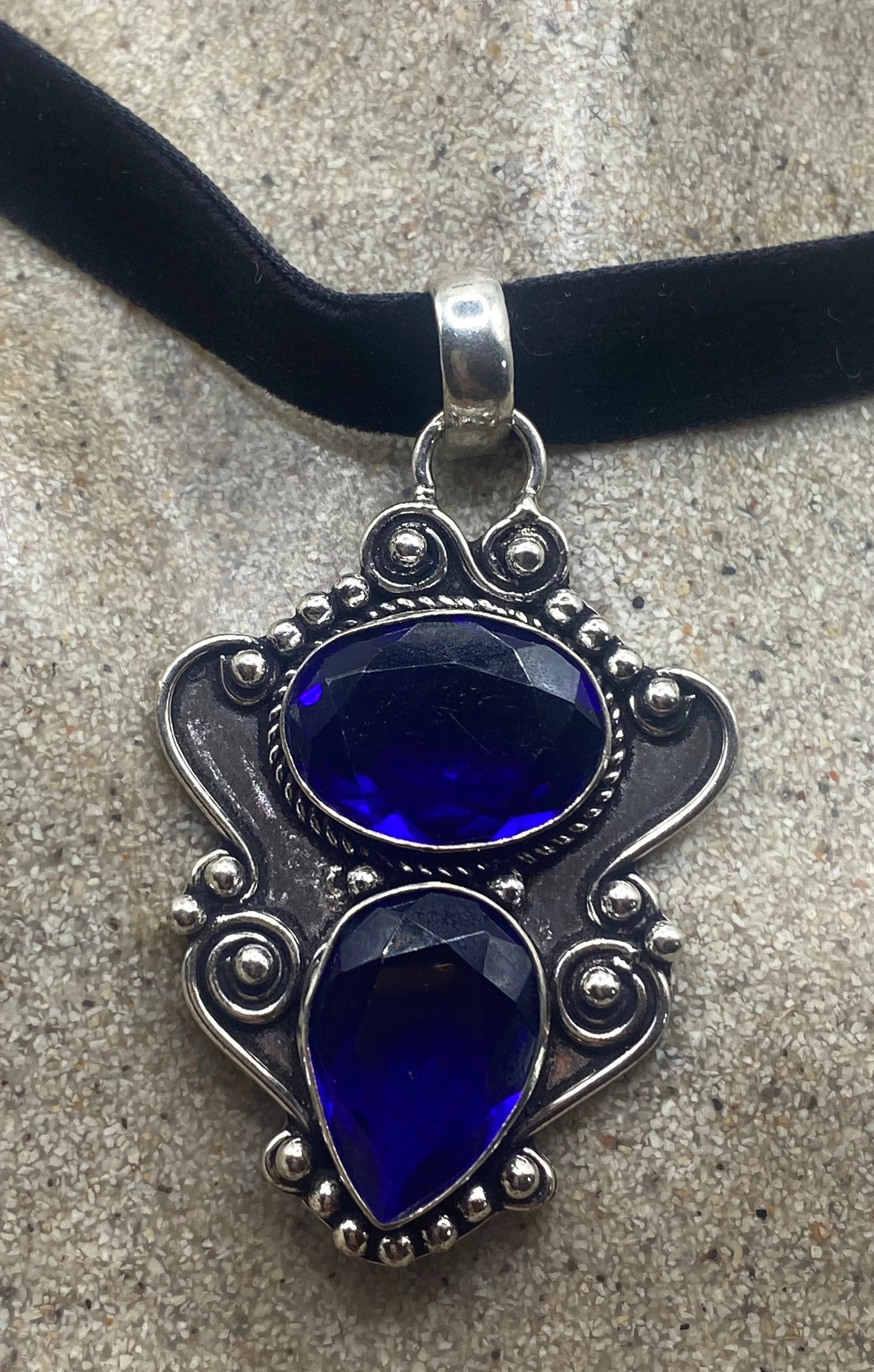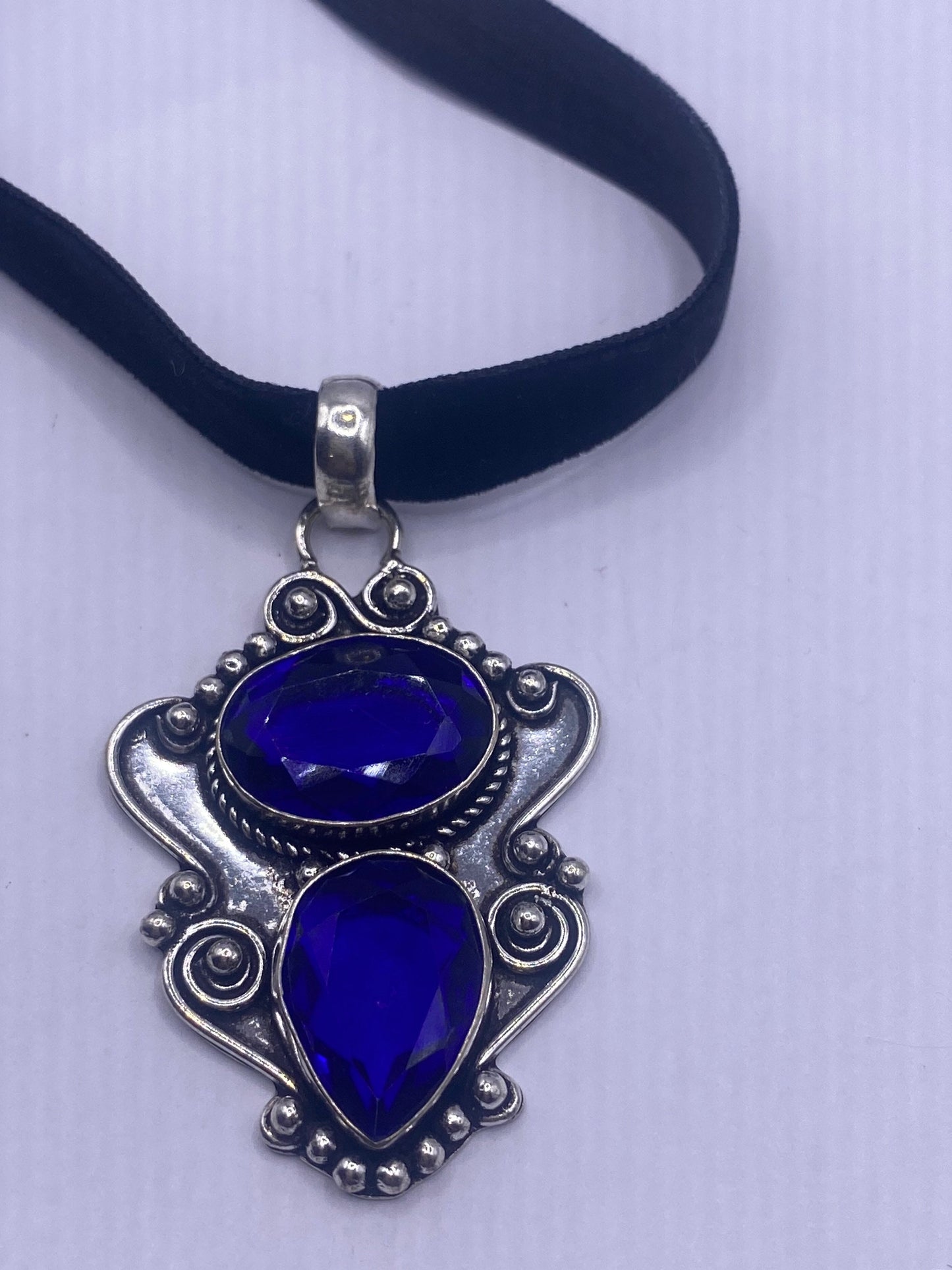 Vintage Indigo Blue Glass Black Velvet Choker Necklace