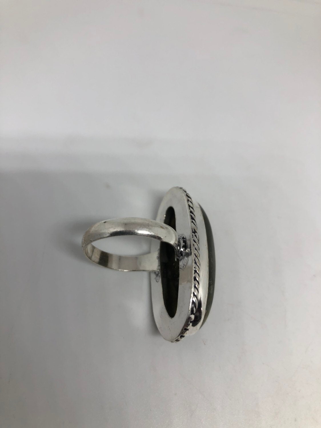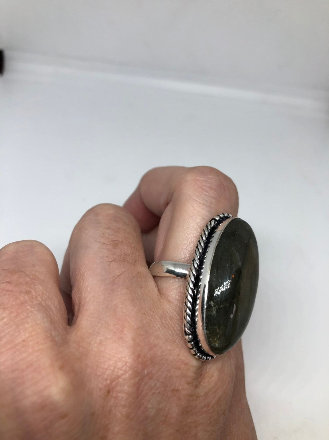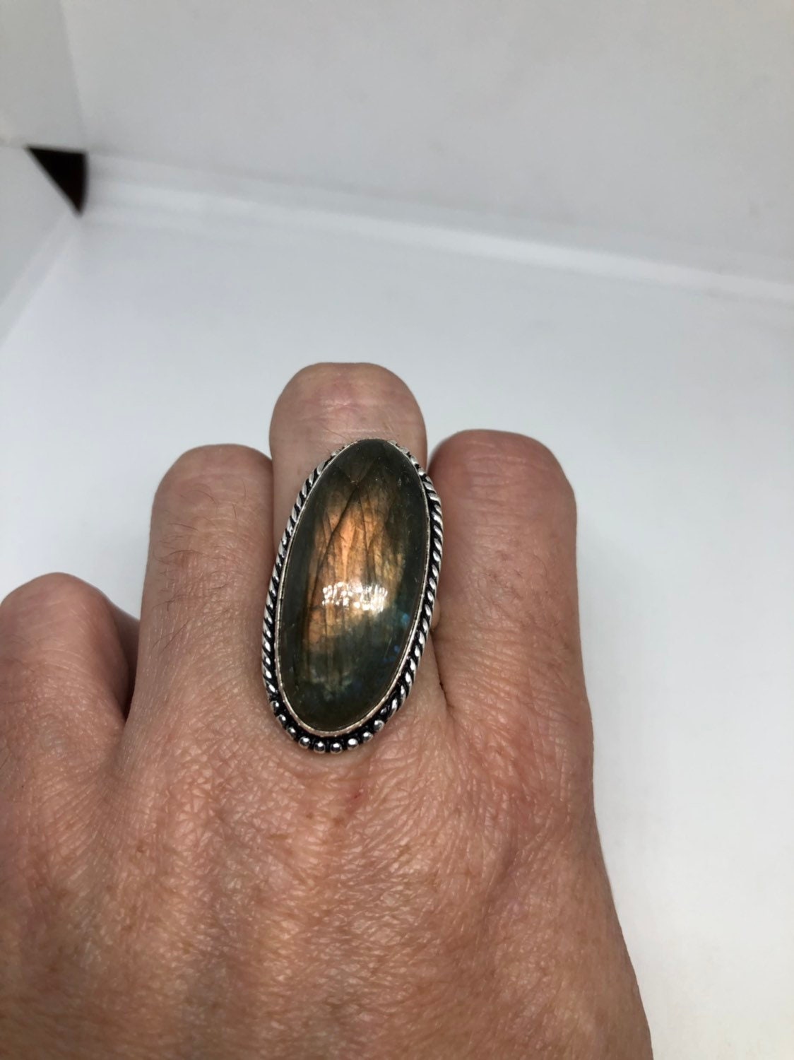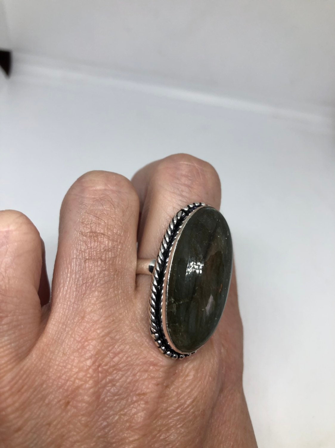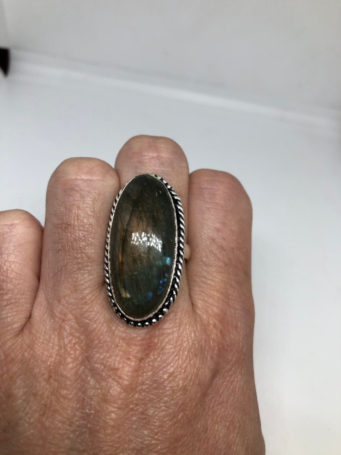 Vintage Large Blue Green Labradorite Stone Silver Ring