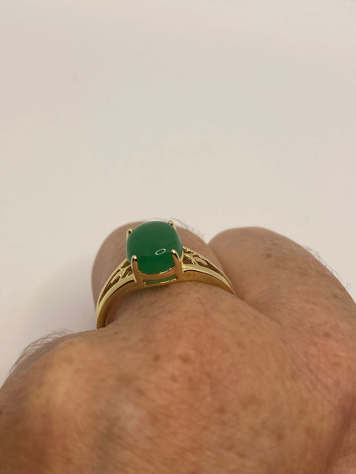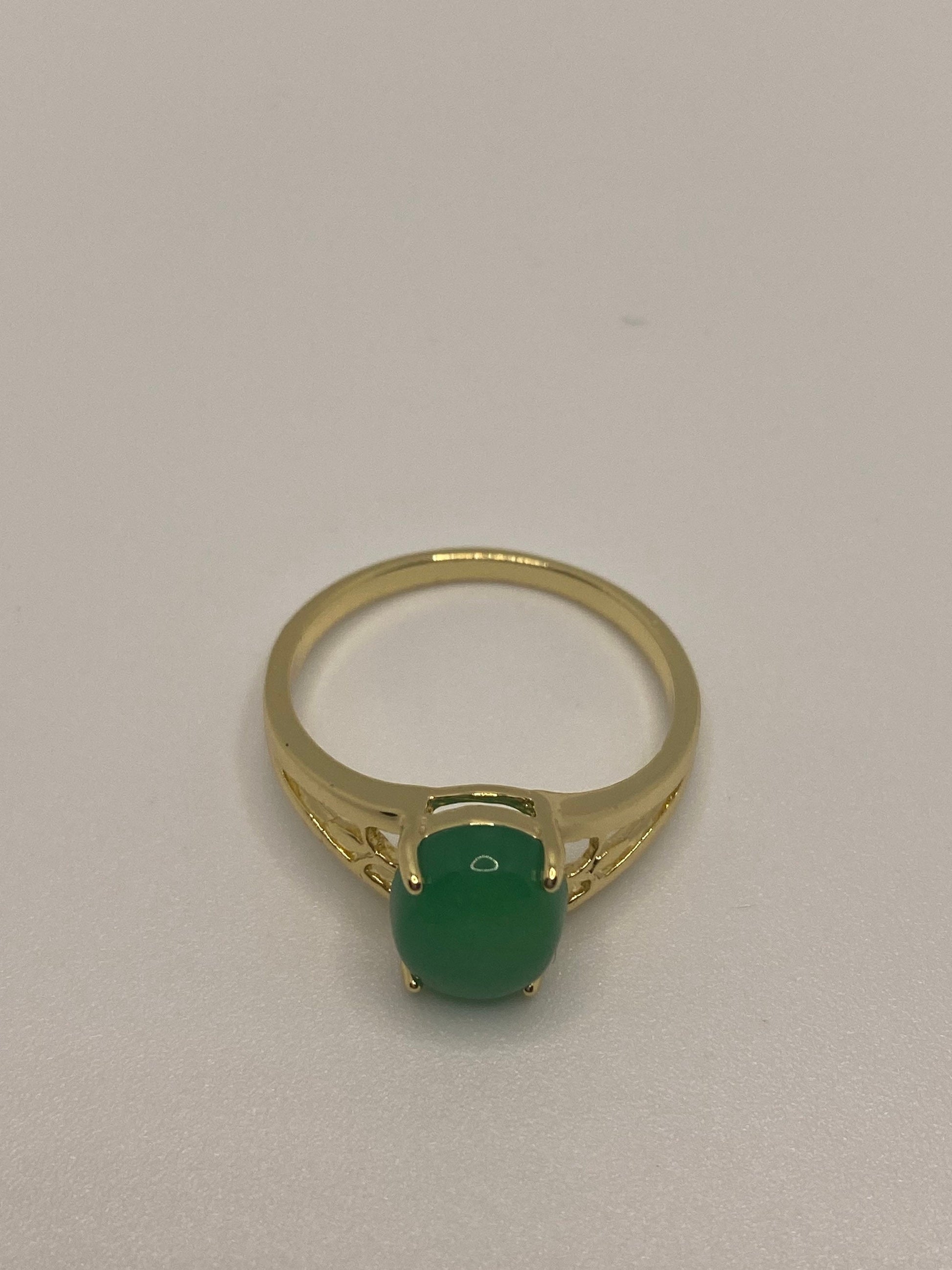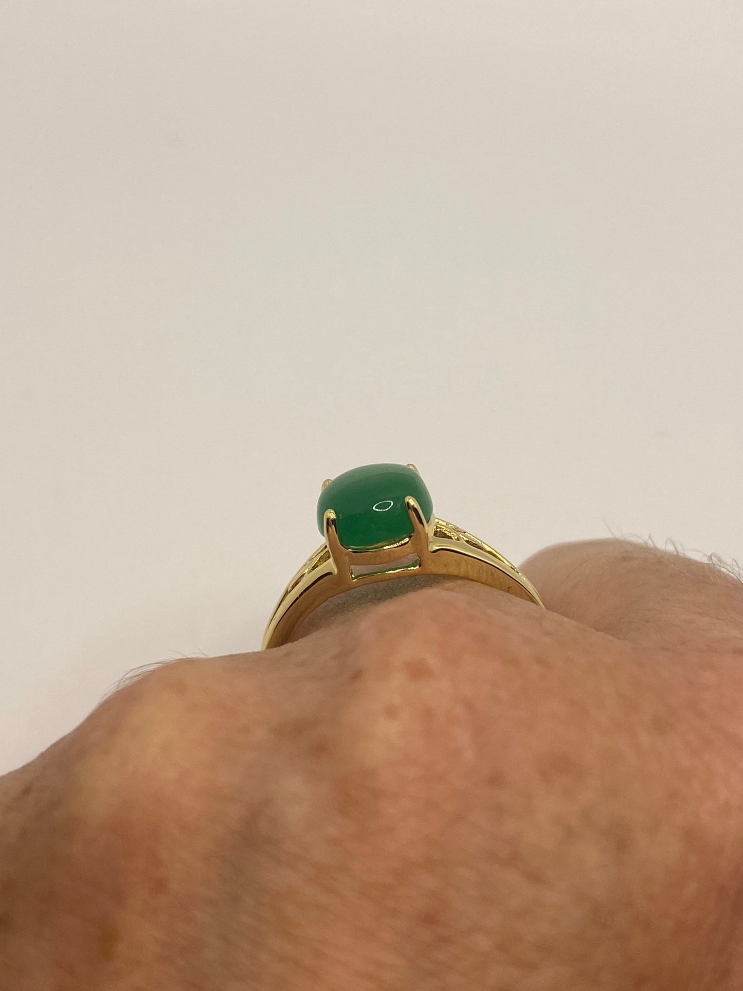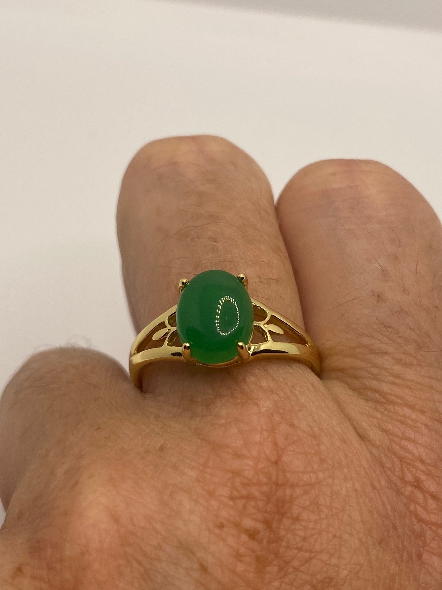 This is "fun jade" Color enhanced stone. Vintage 1970's re finished.