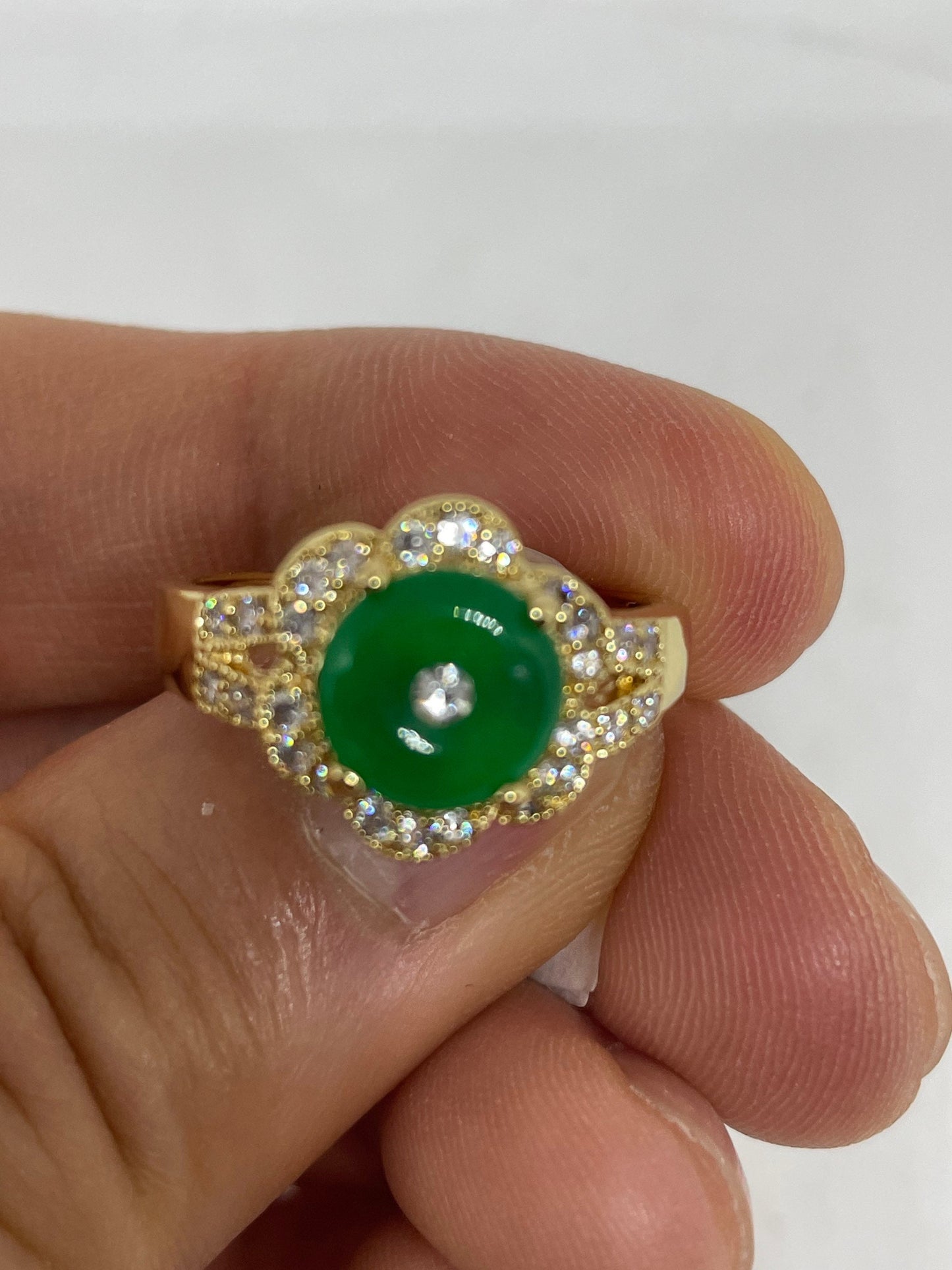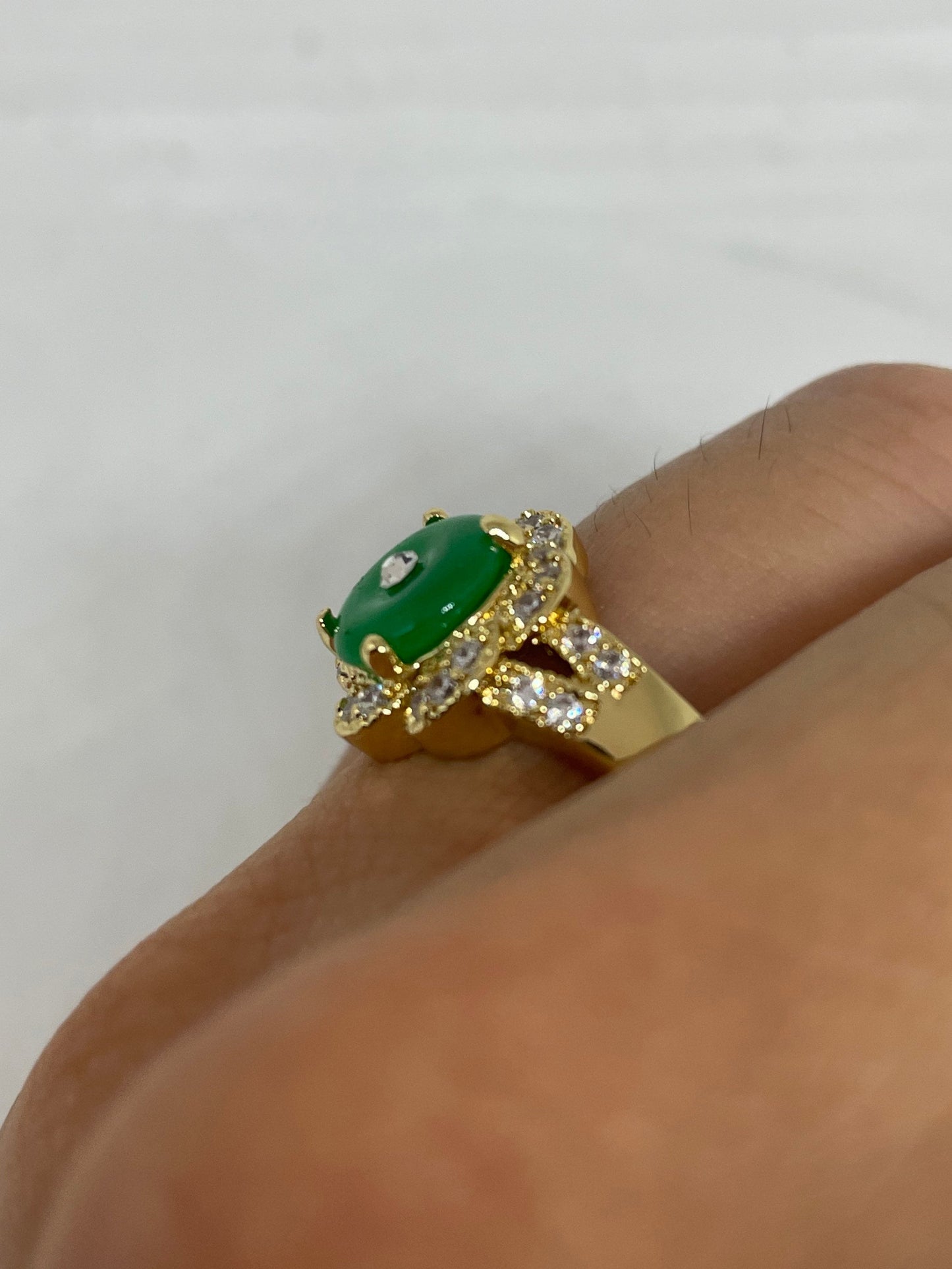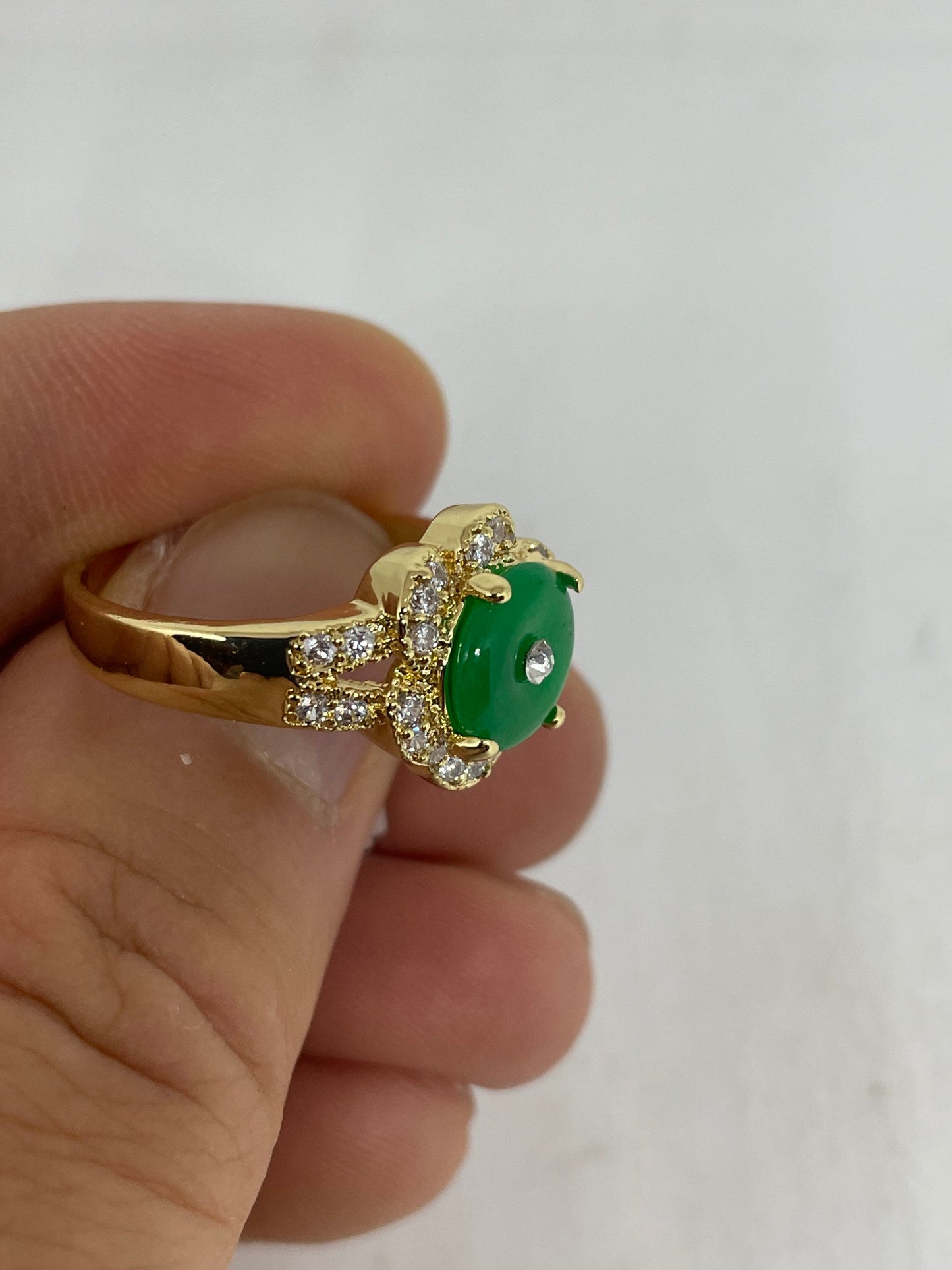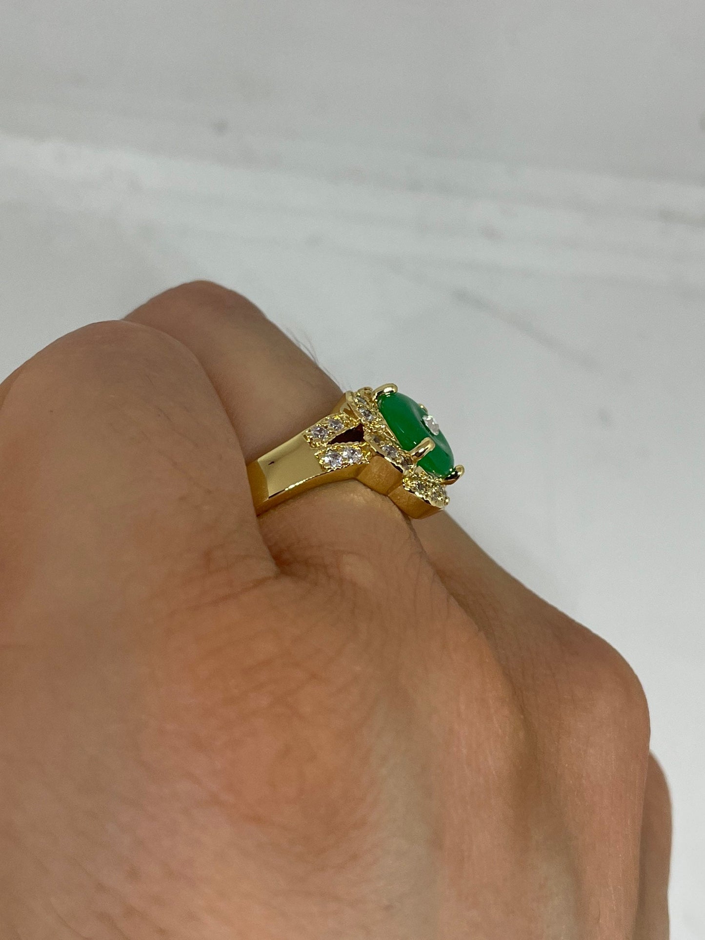 Vintage Lucky Green Nephrite Jade Gold Filled Cocktail Ring