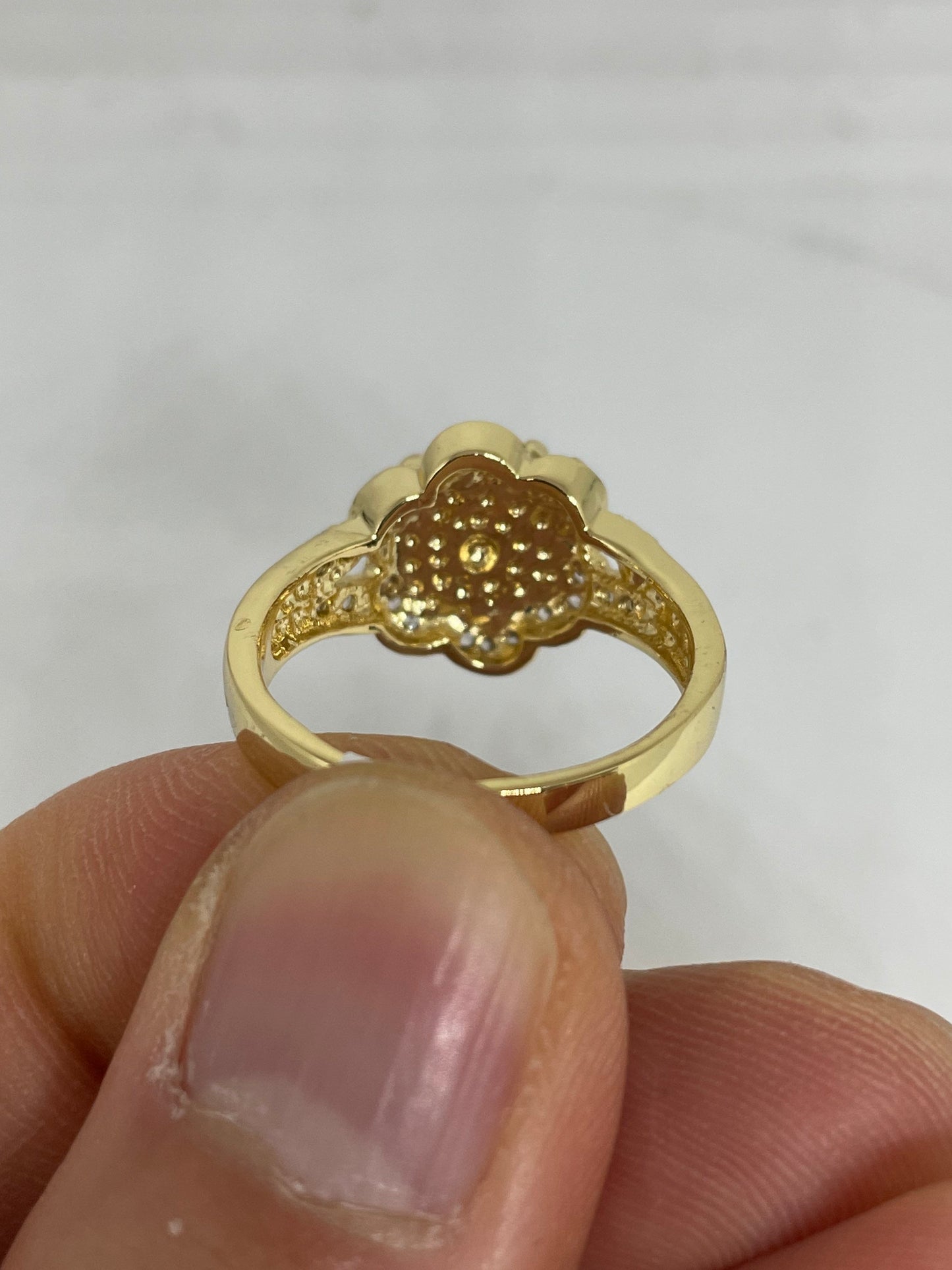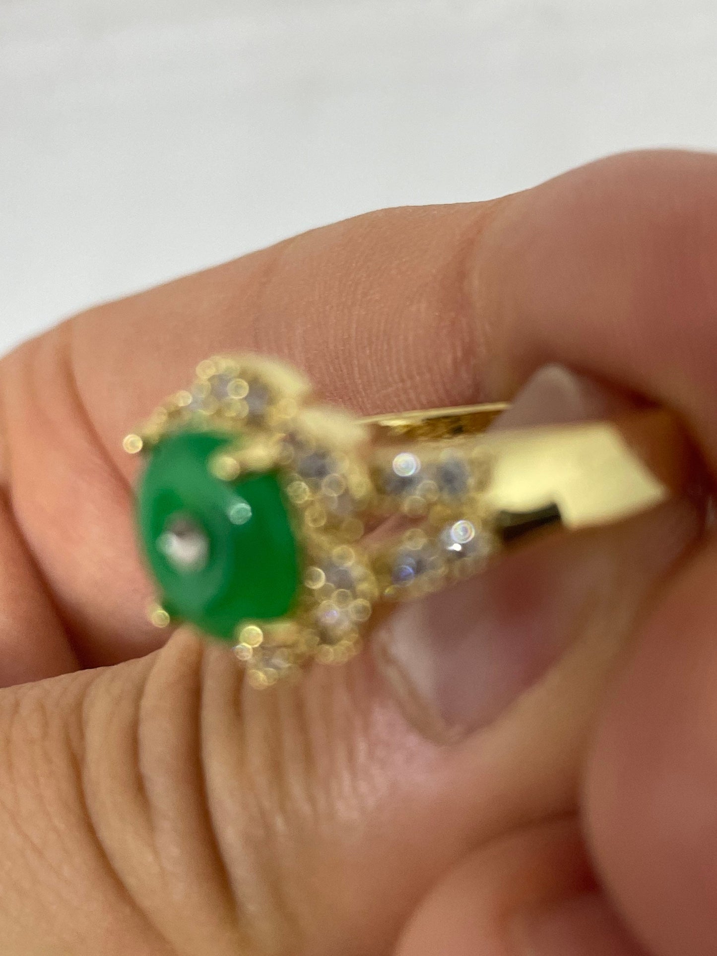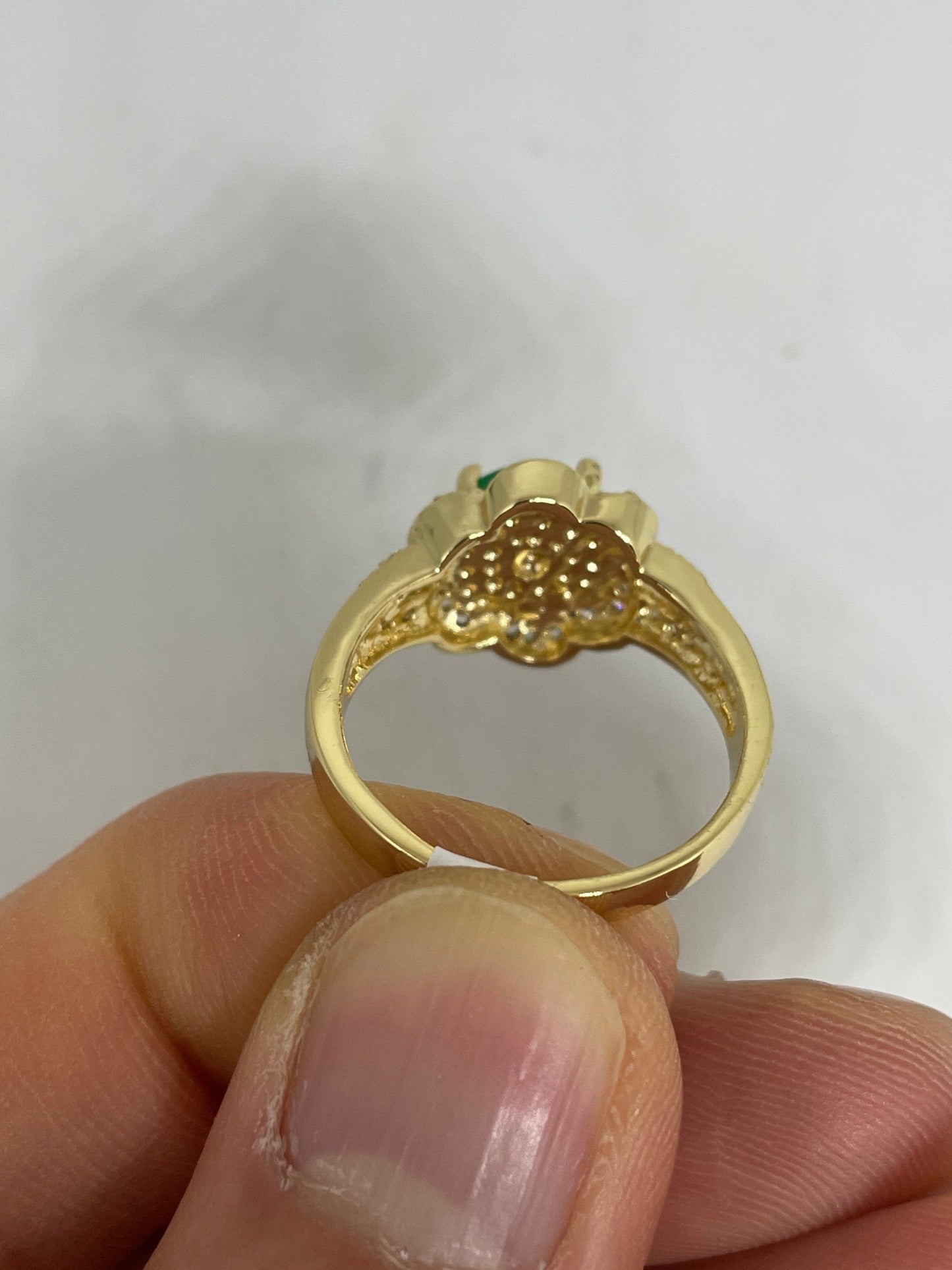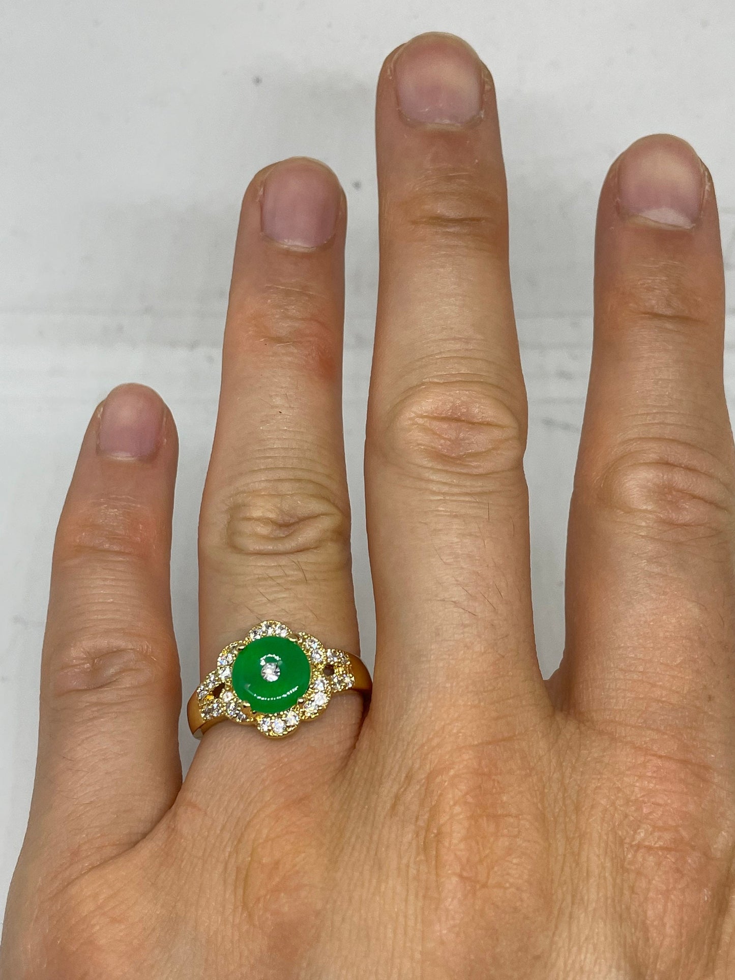 Vintage Lucky Green Nephrite Jade Gold Filled Cocktail Ring