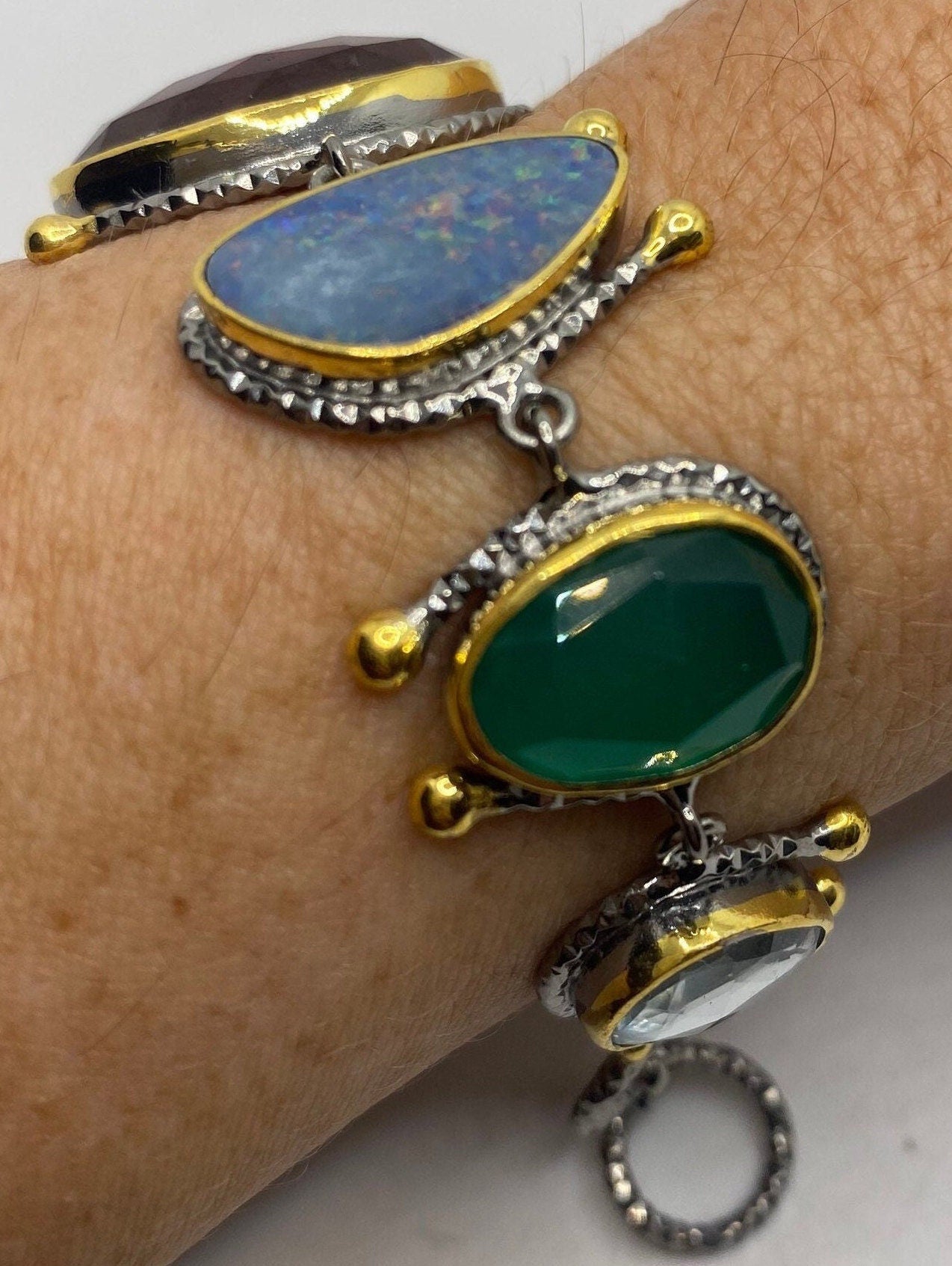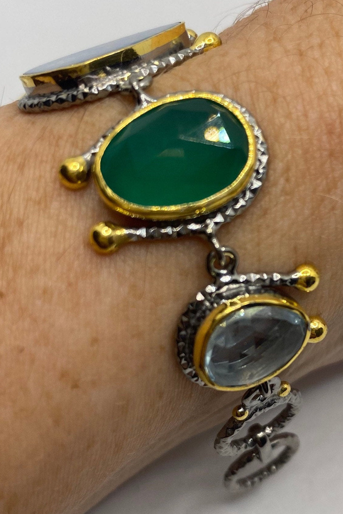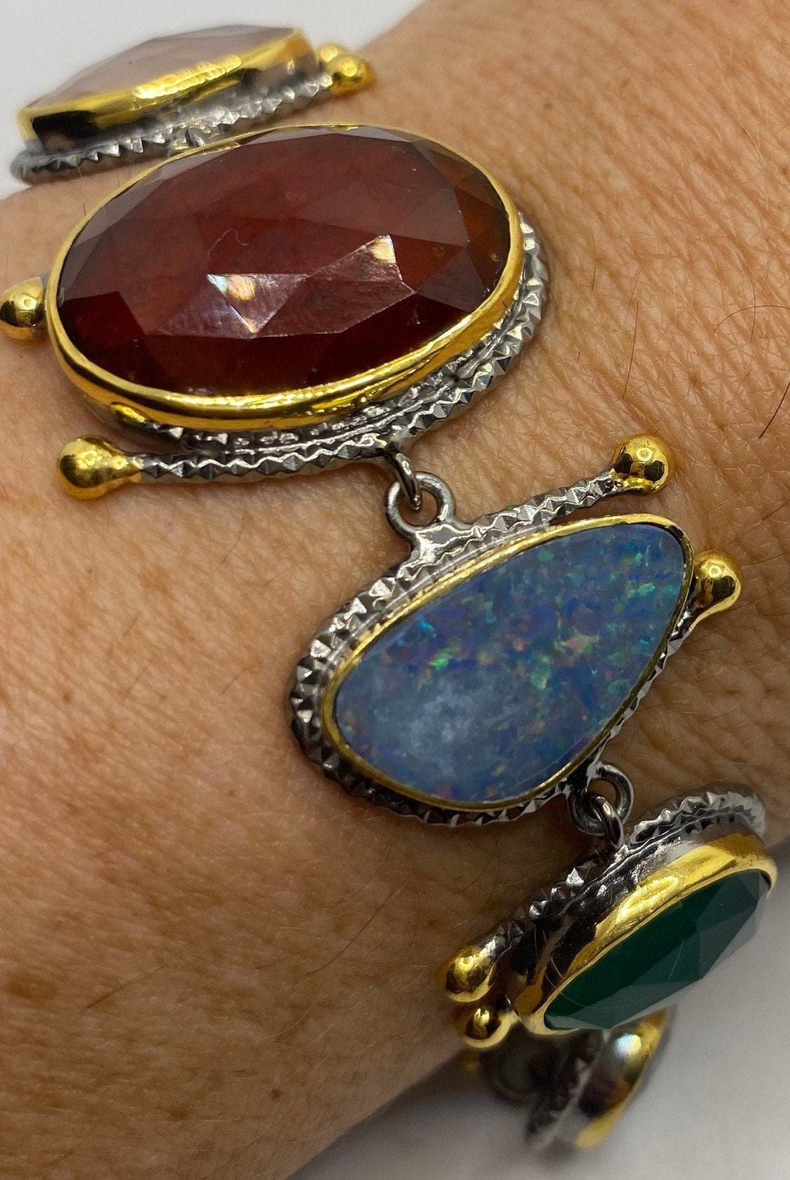 Vintage Mixed Genuine Gemstones 925 Sterling Silver Bracelet