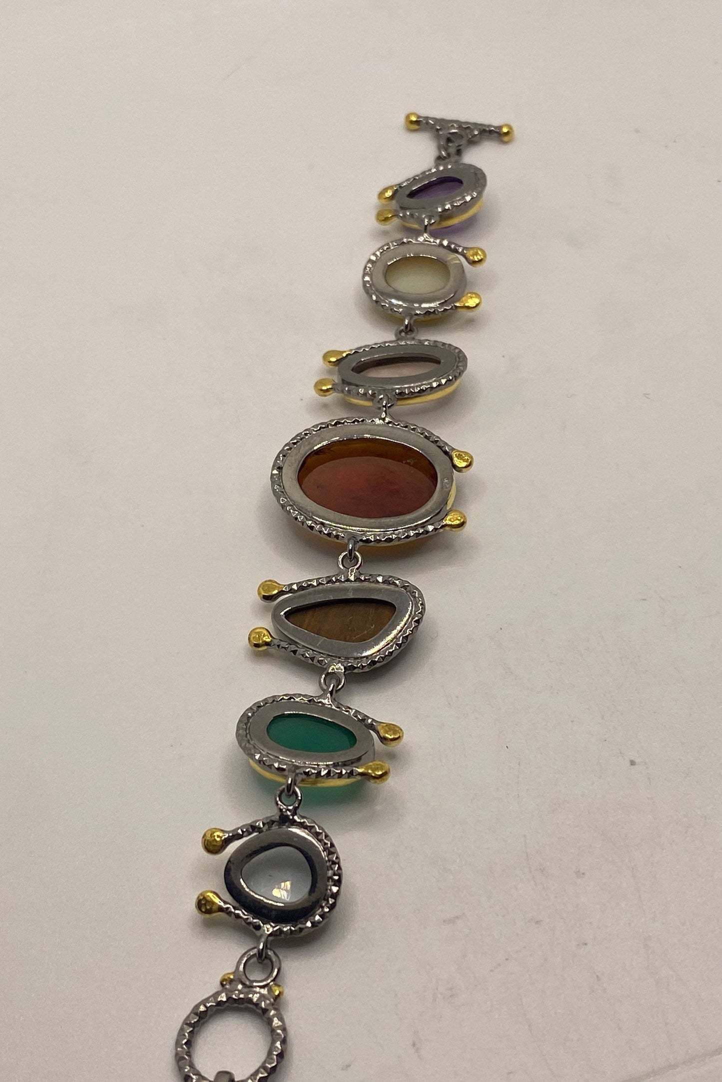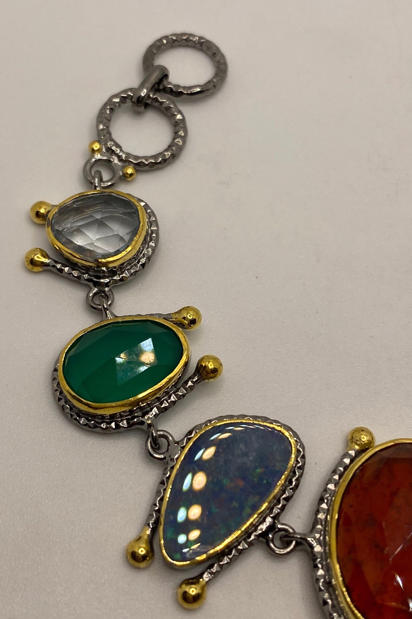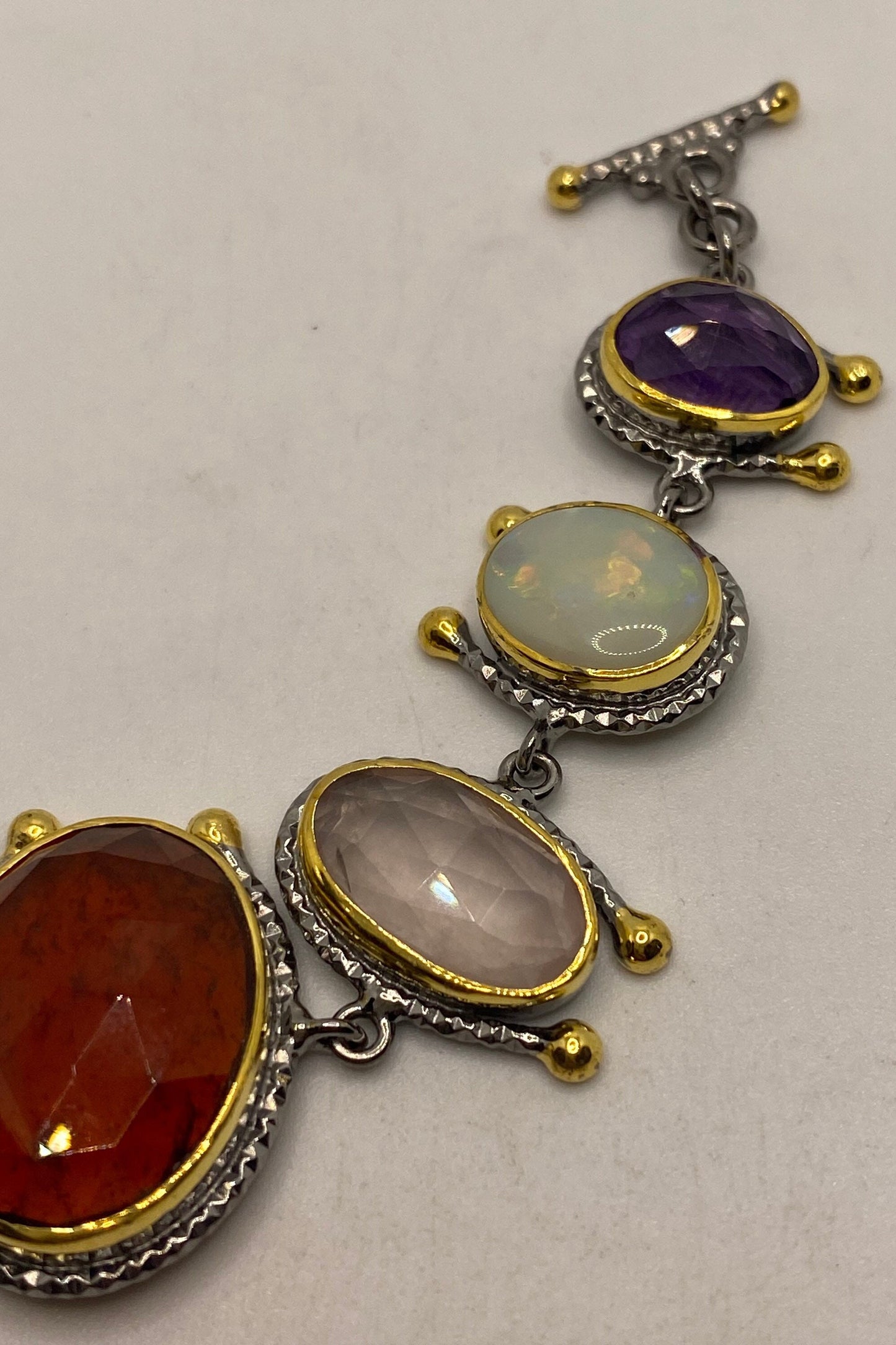 Vintage Mixed Genuine Gemstones 925 Sterling Silver Bracelet