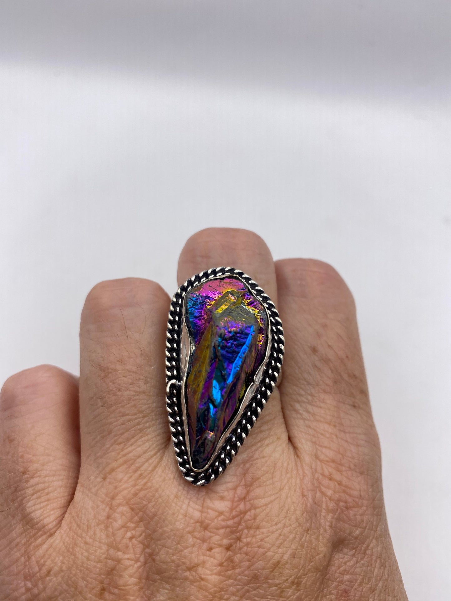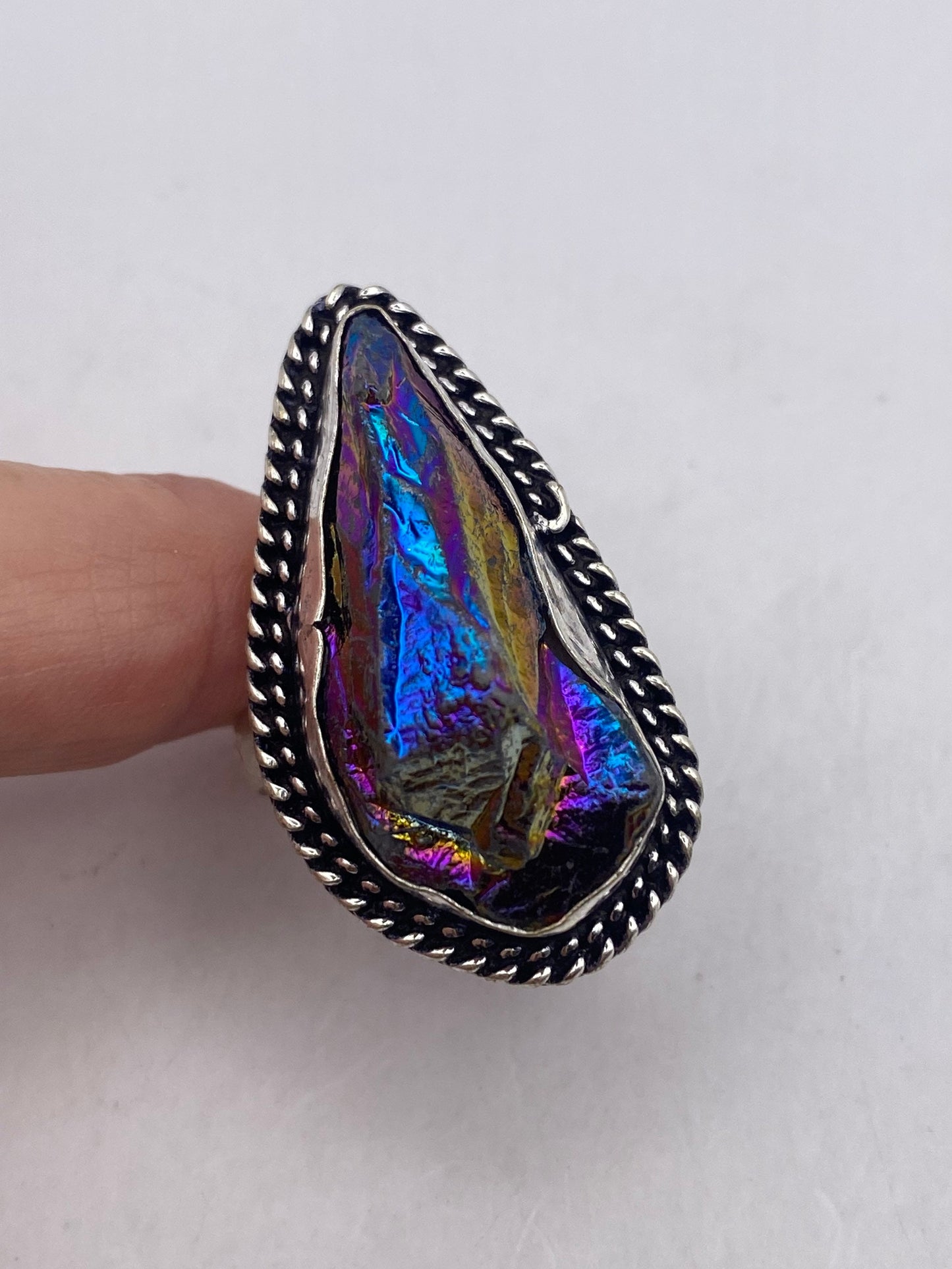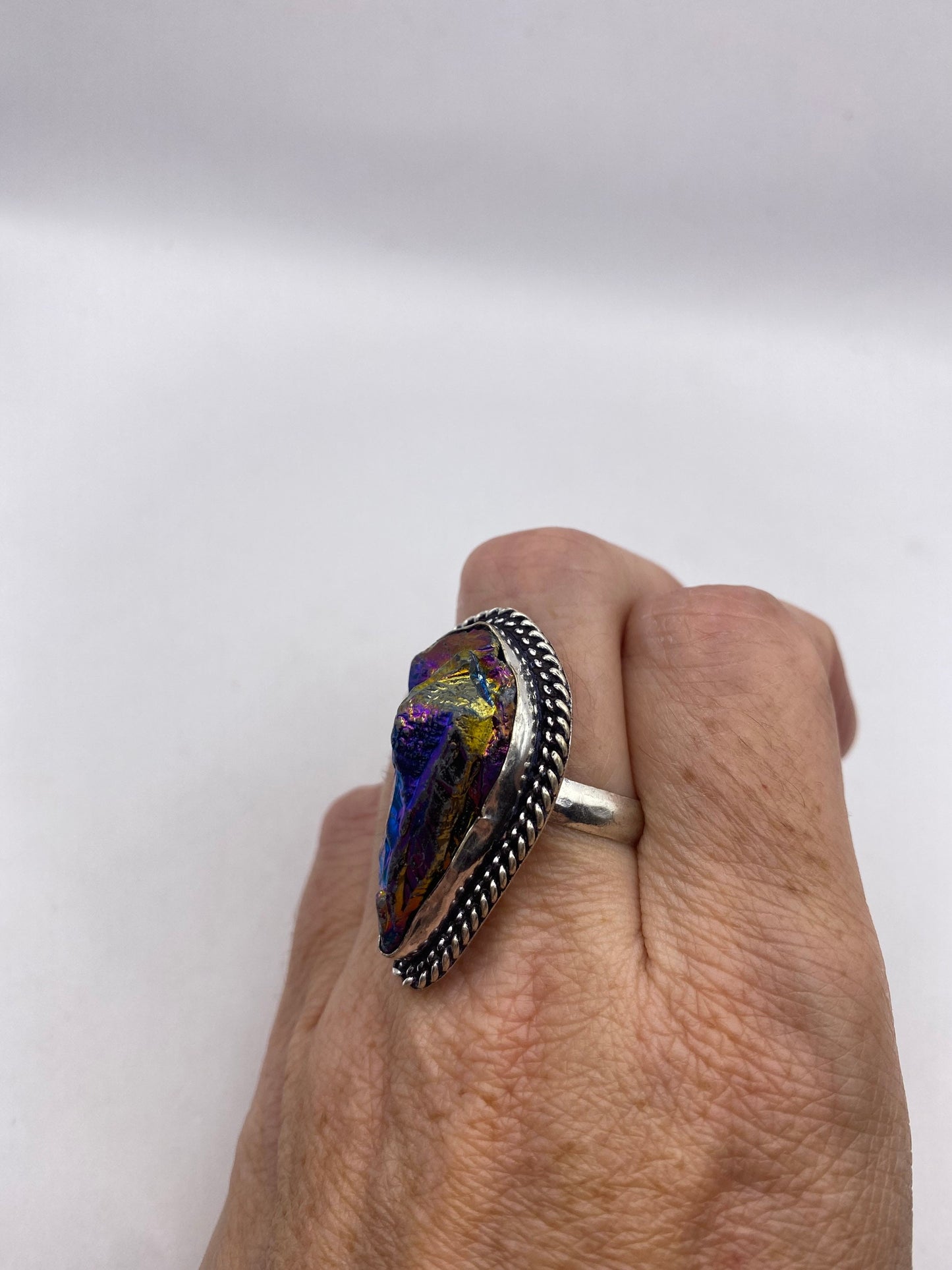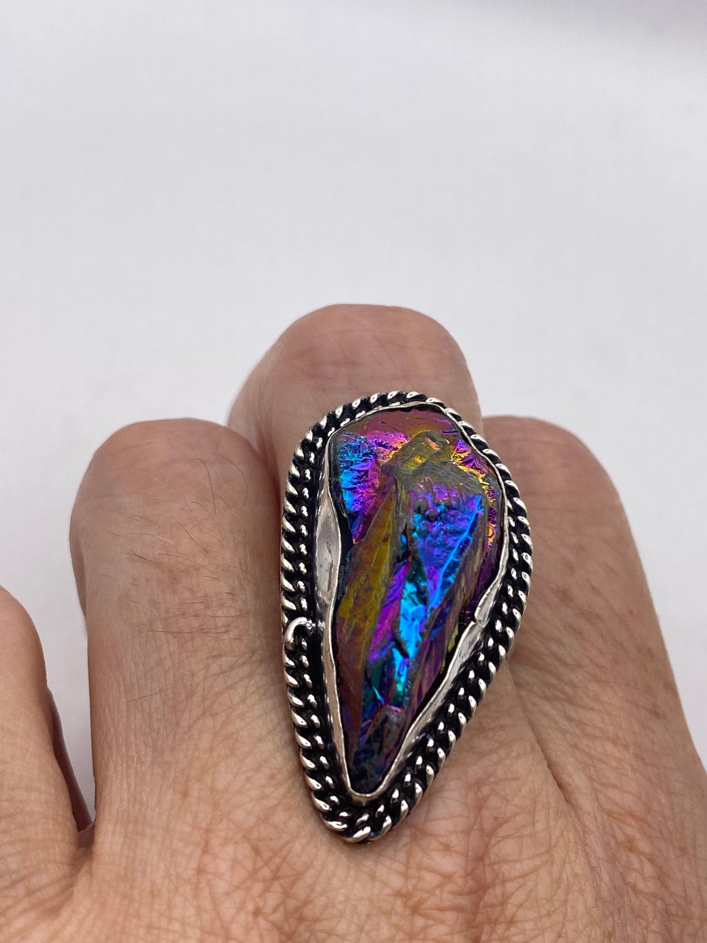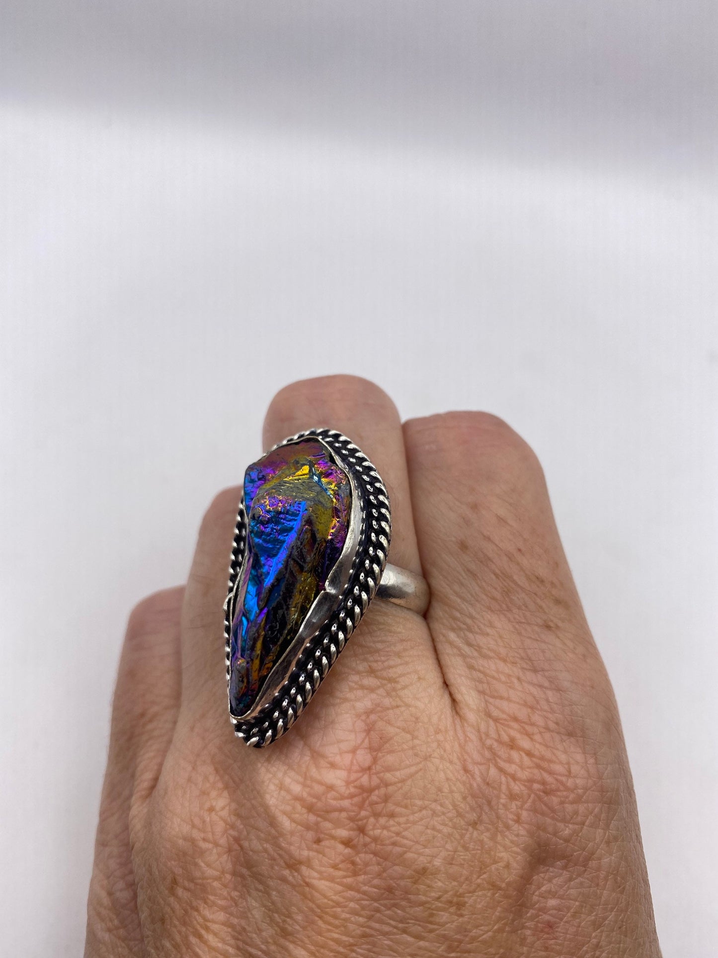 Vintage Mystic Peacock Ore Silver Cocktail Ring Size 9