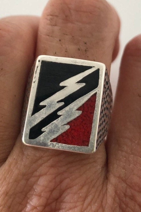 Vintage Native American Style Southwestern Red Stone Inlay Ring