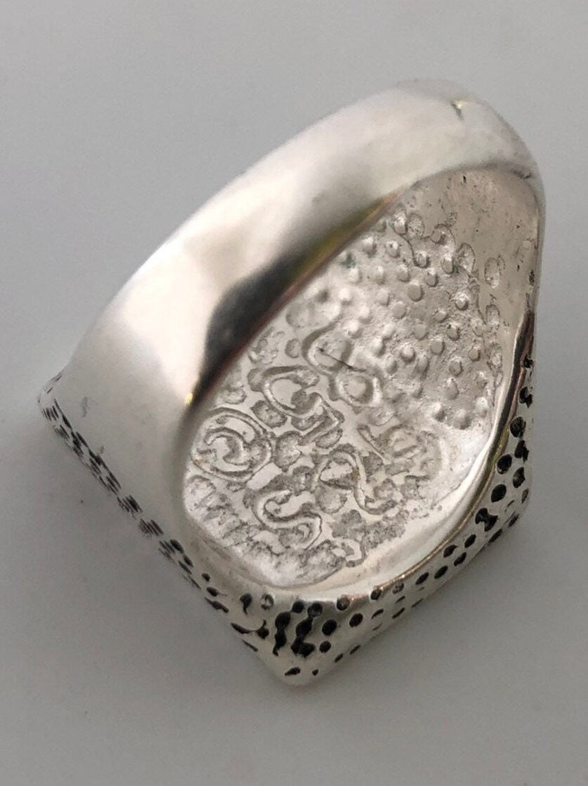 Vintage Southwestern gemstone inlay silver white bronze men's ring.