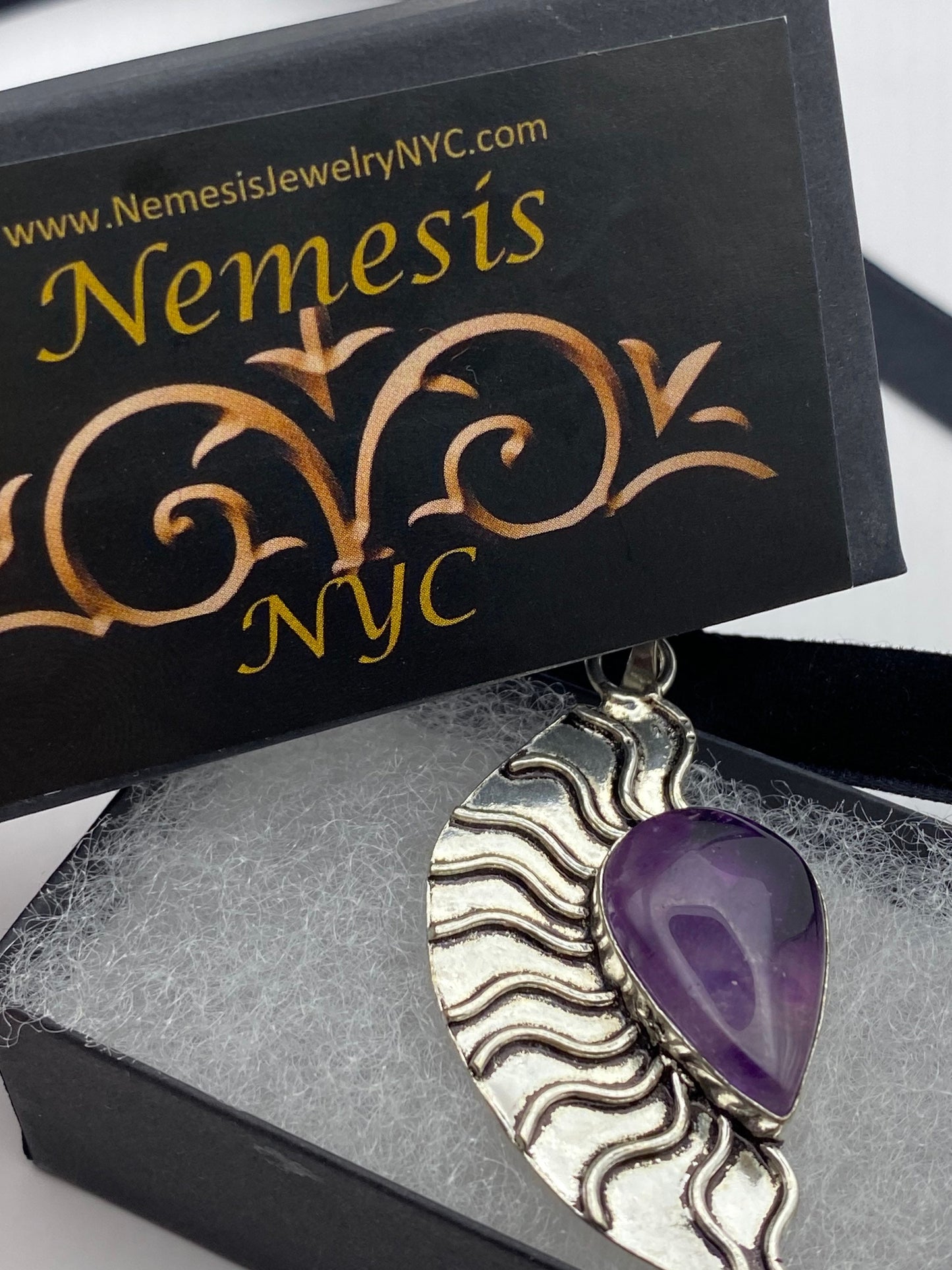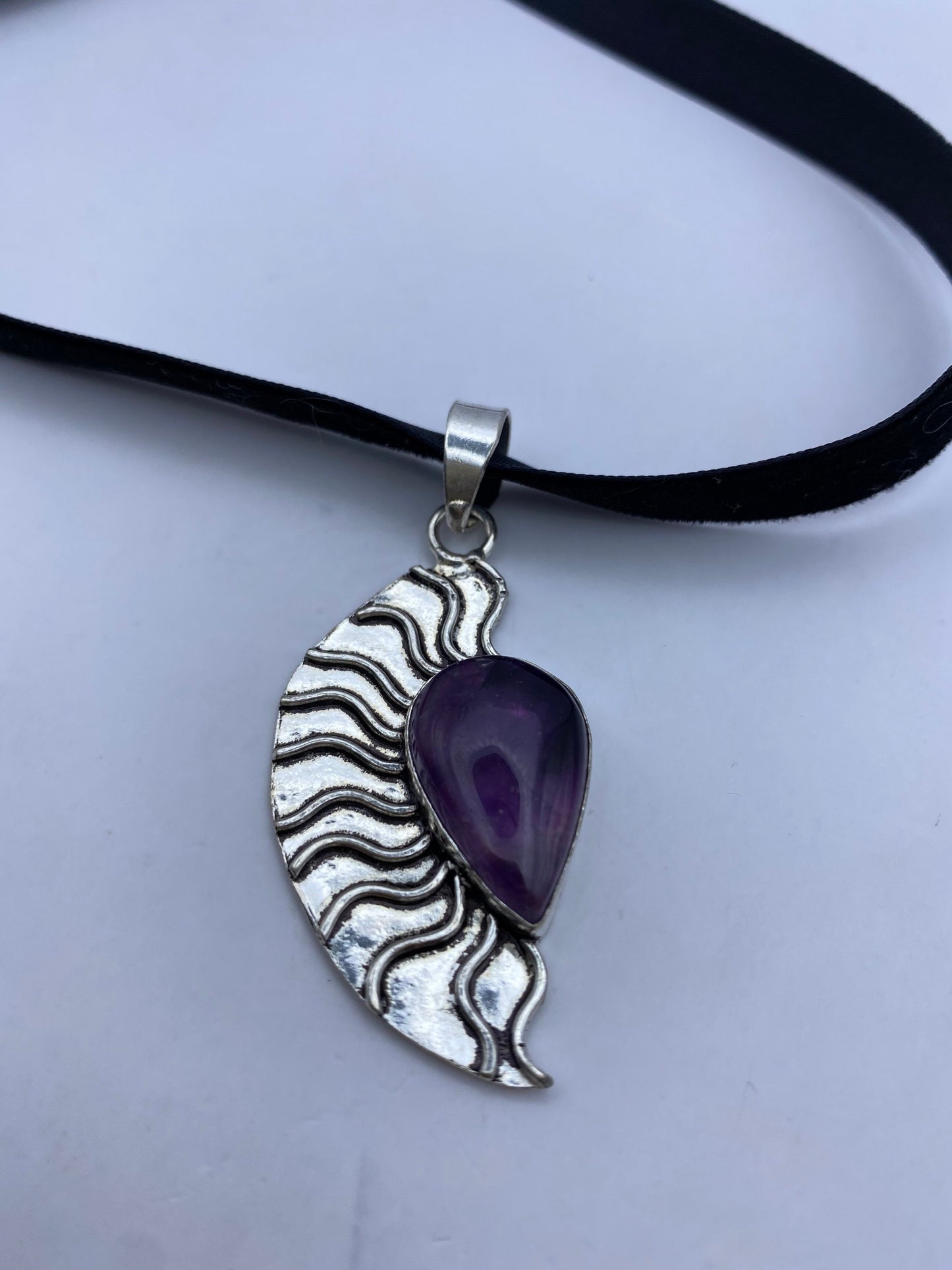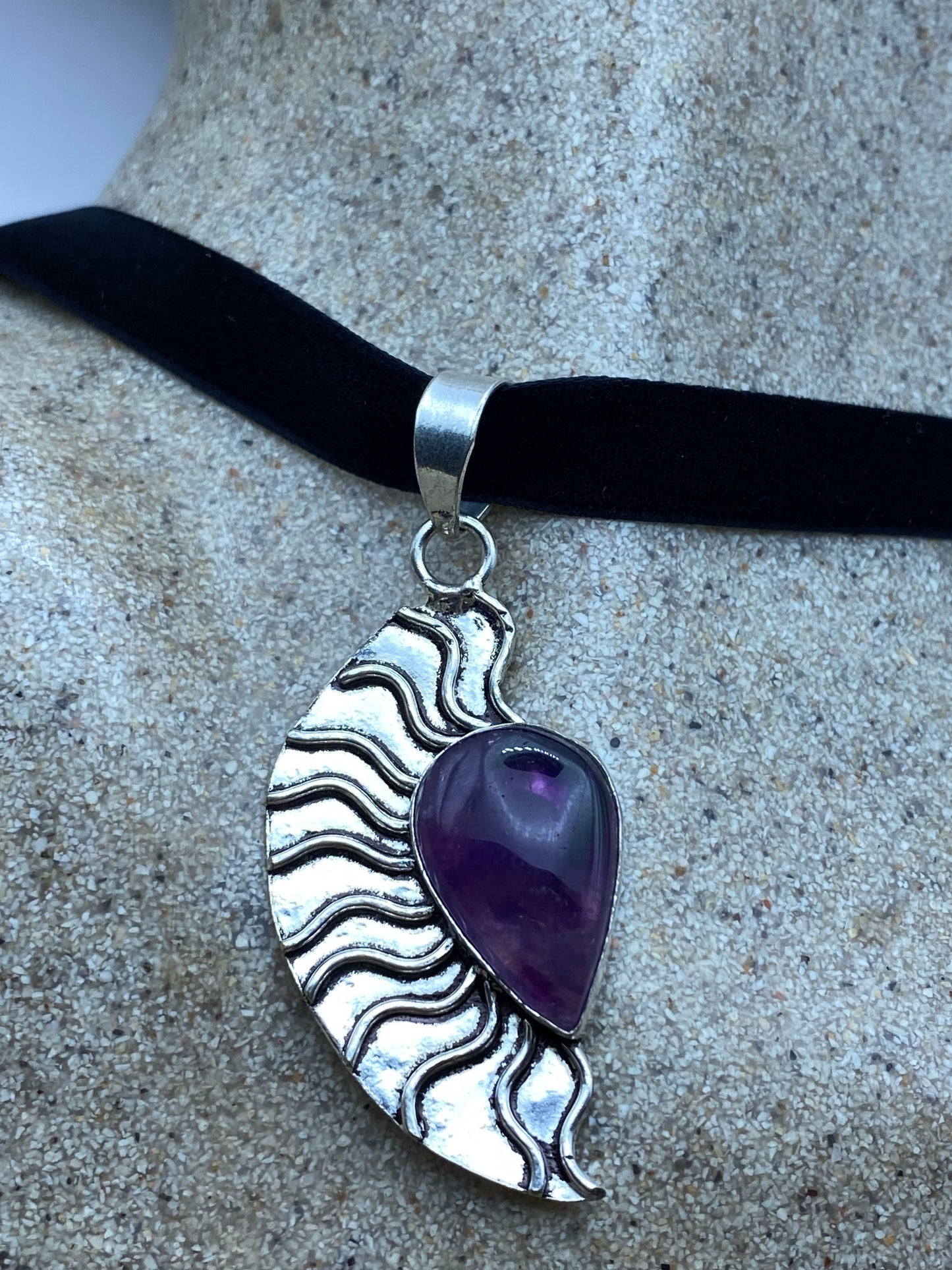 Vintage Purple Amethyst Choker Bohemian Cabochon Droplet Necklace