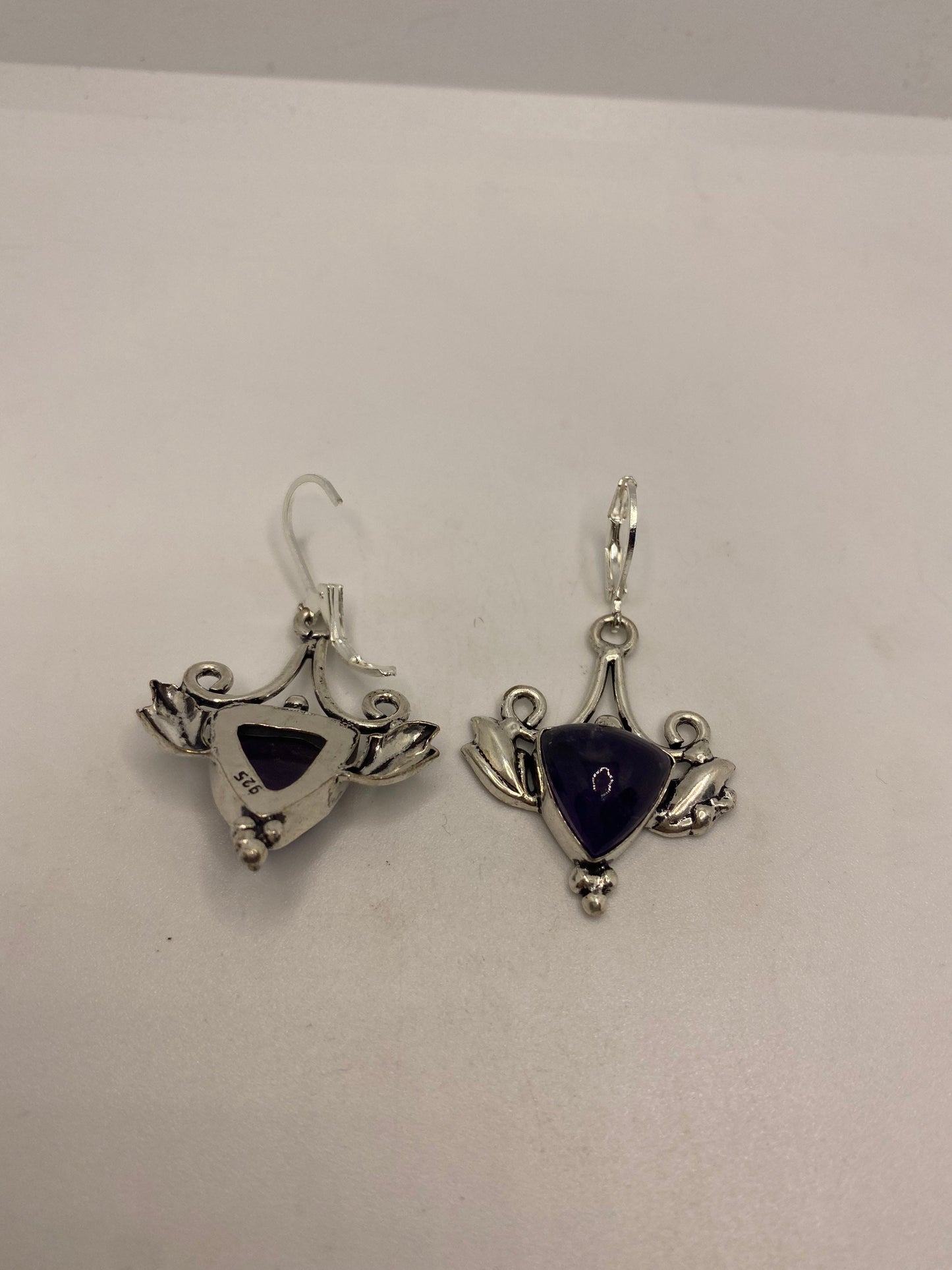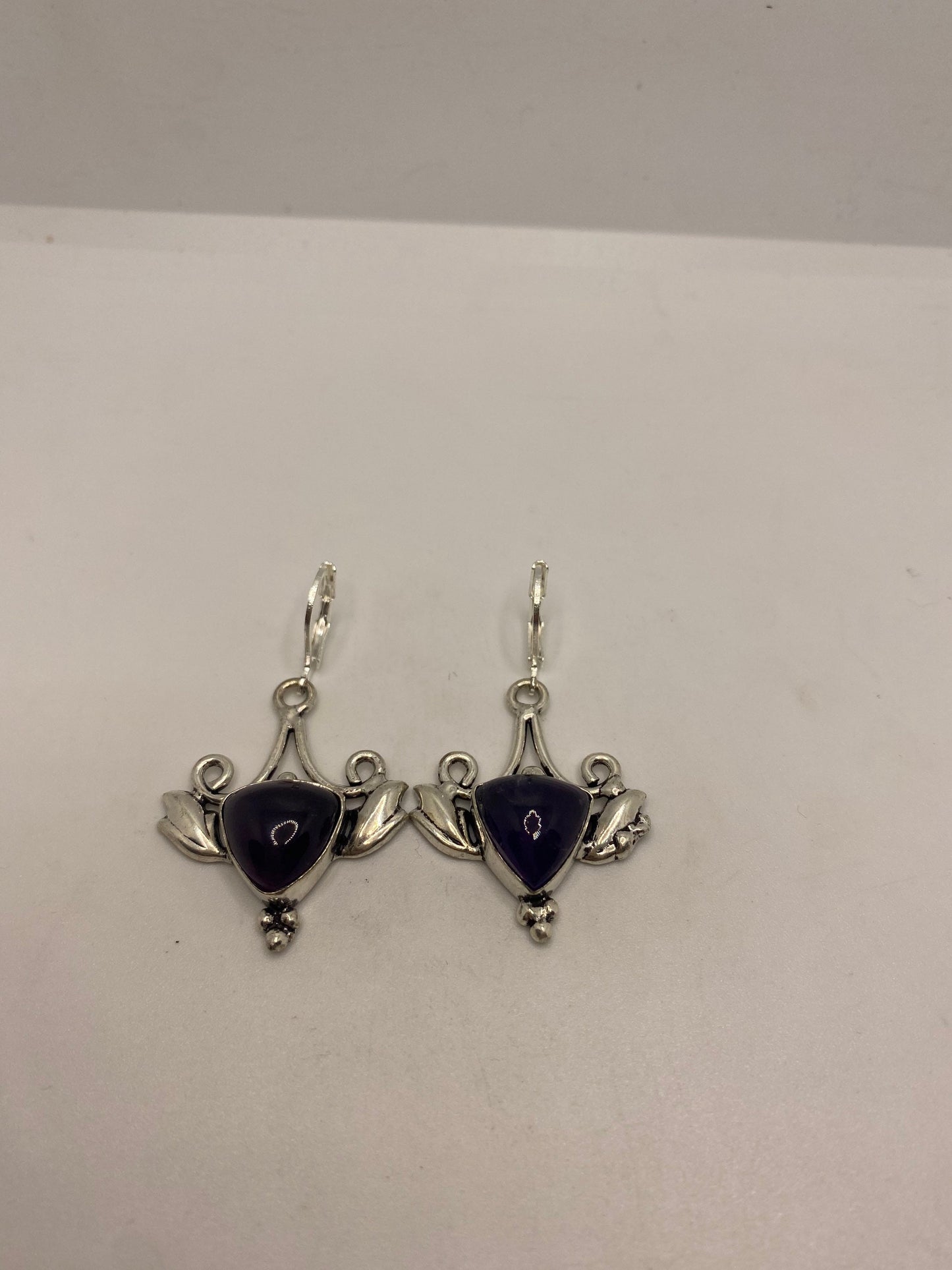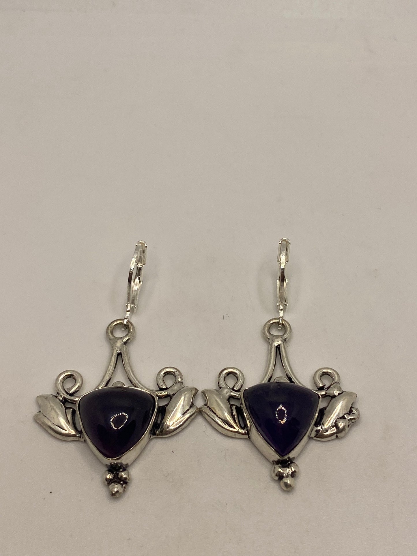 Vintage Purple Amethyst Earrings 925 Sterling Silver Leverback