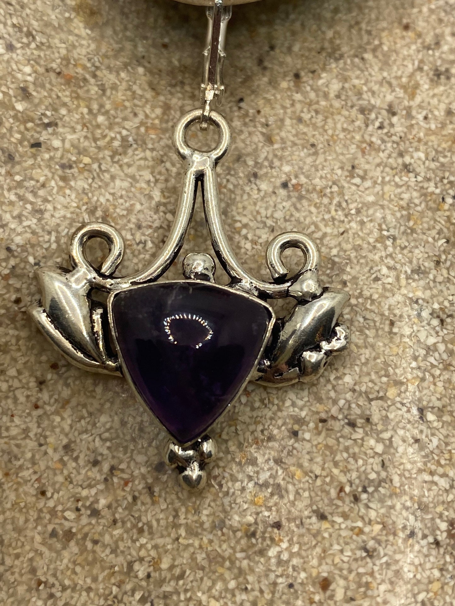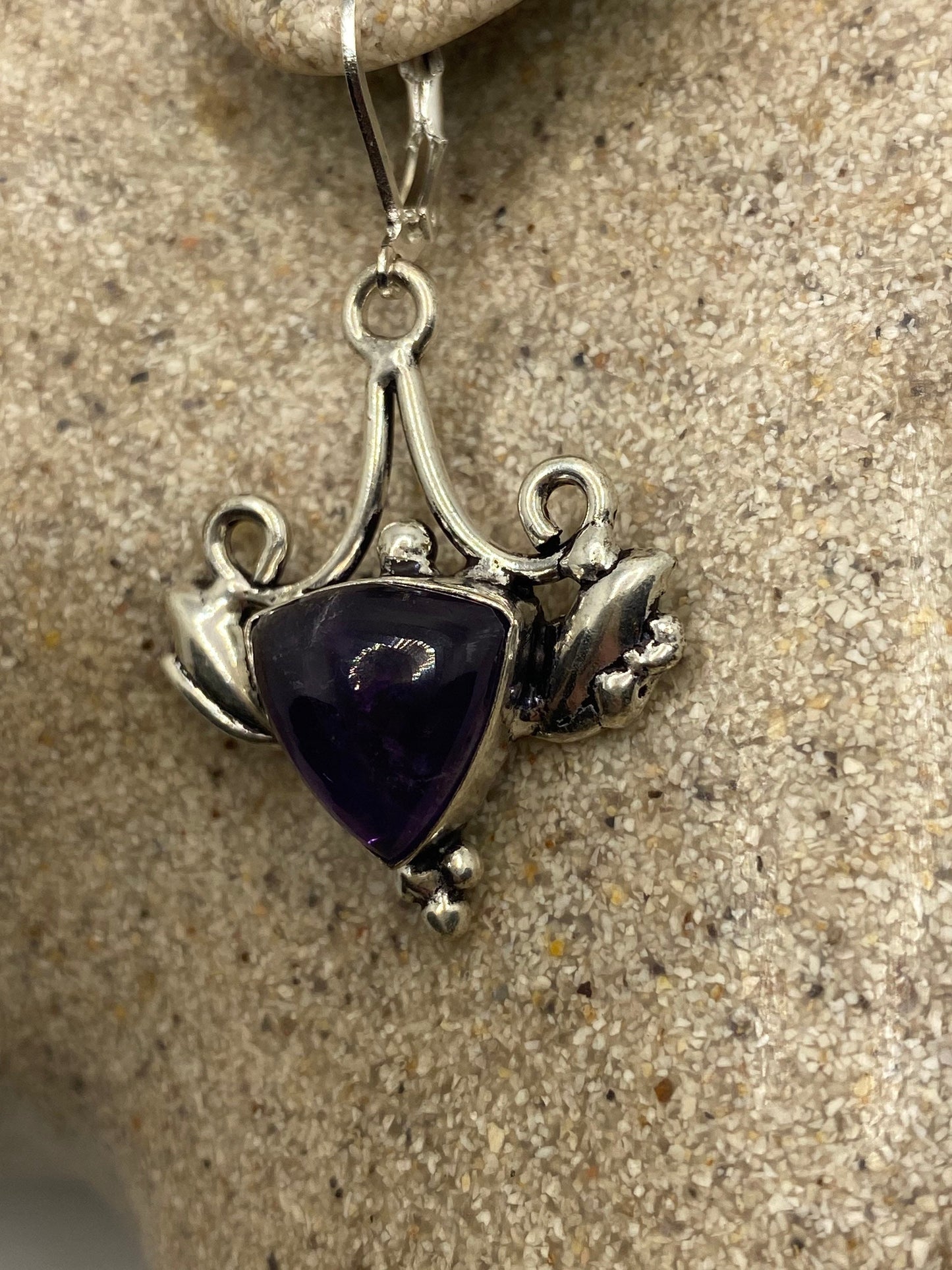 Vintage purple Amethyst earrings 925 Sterling silver leverback