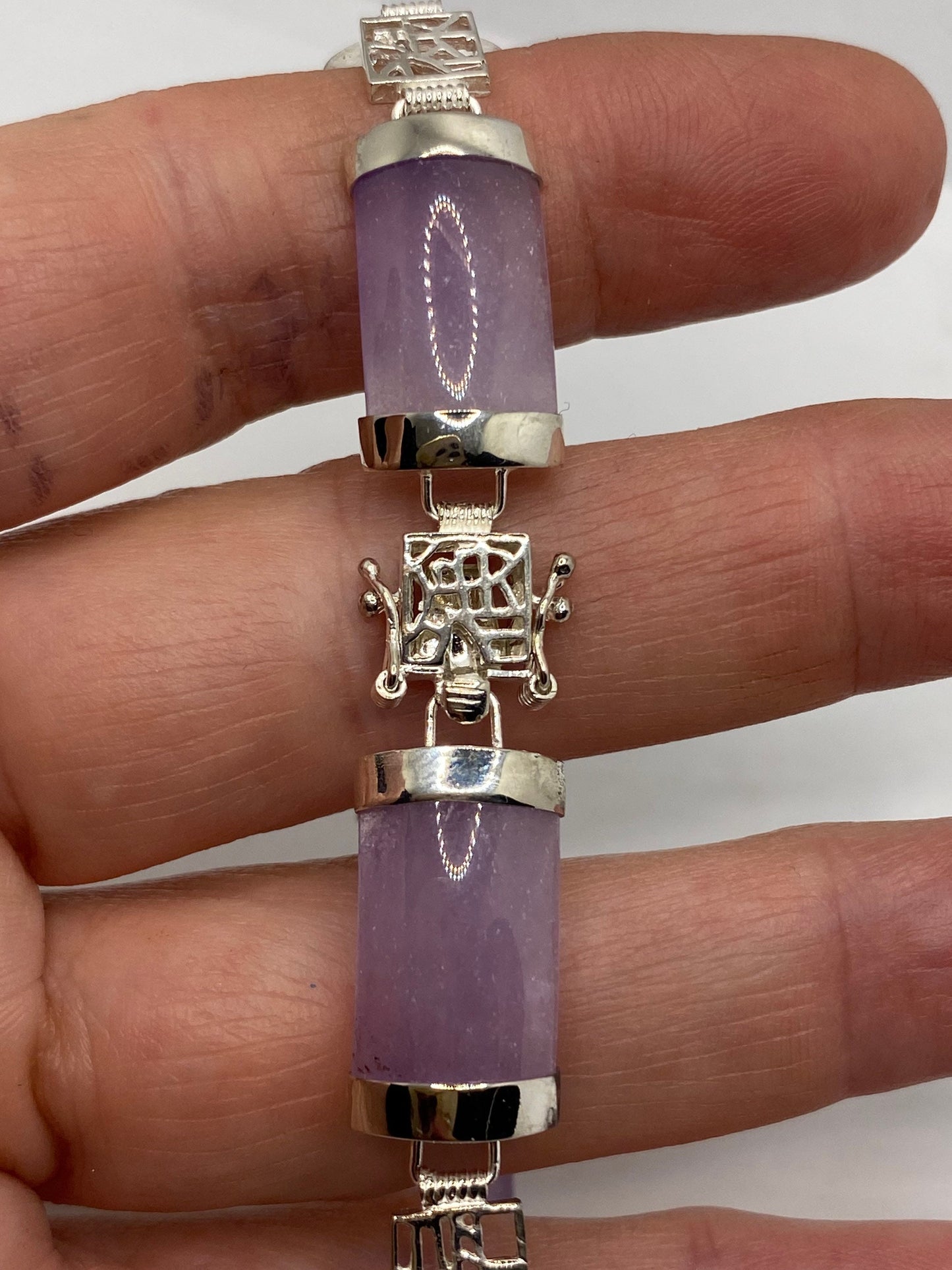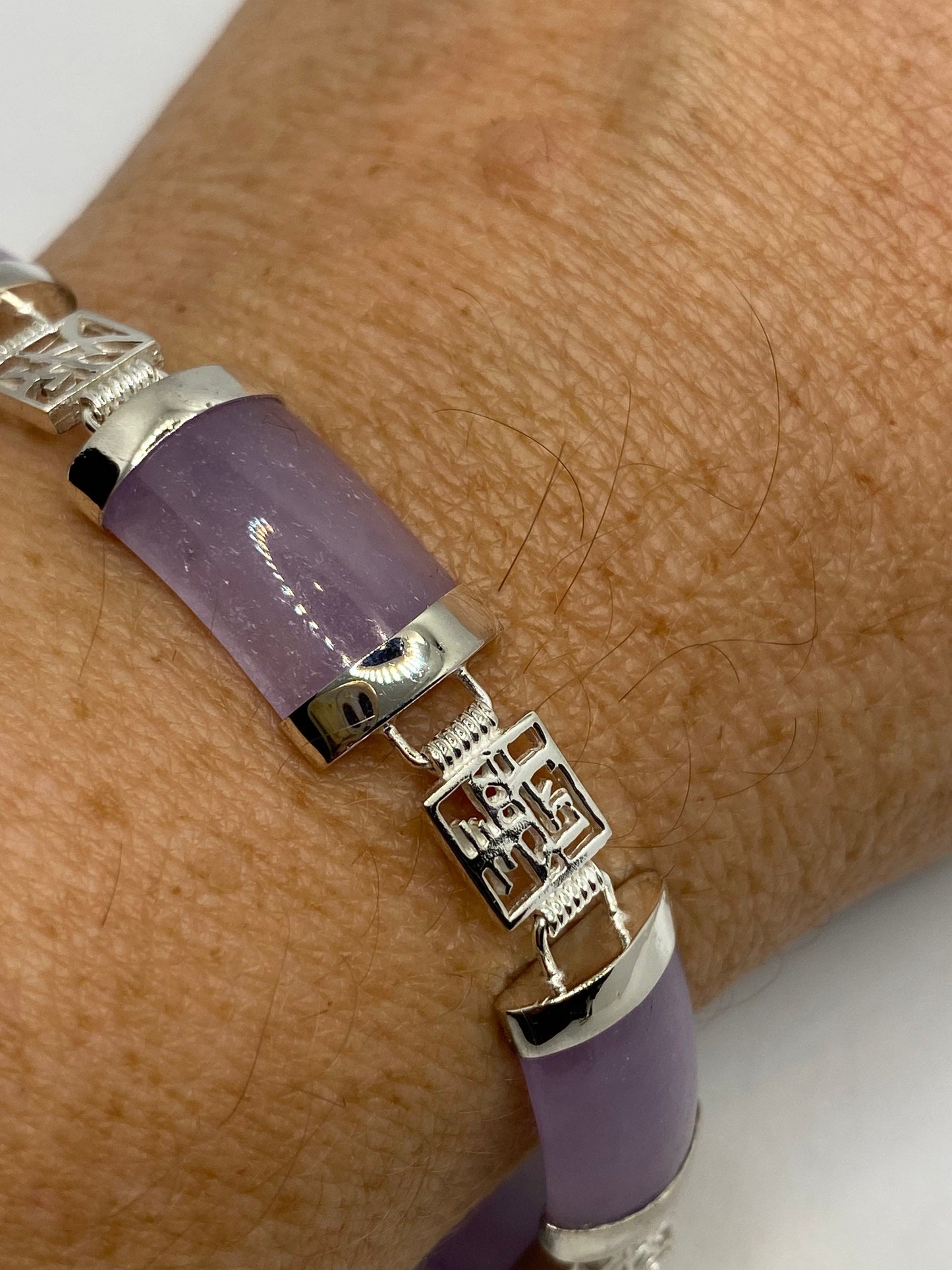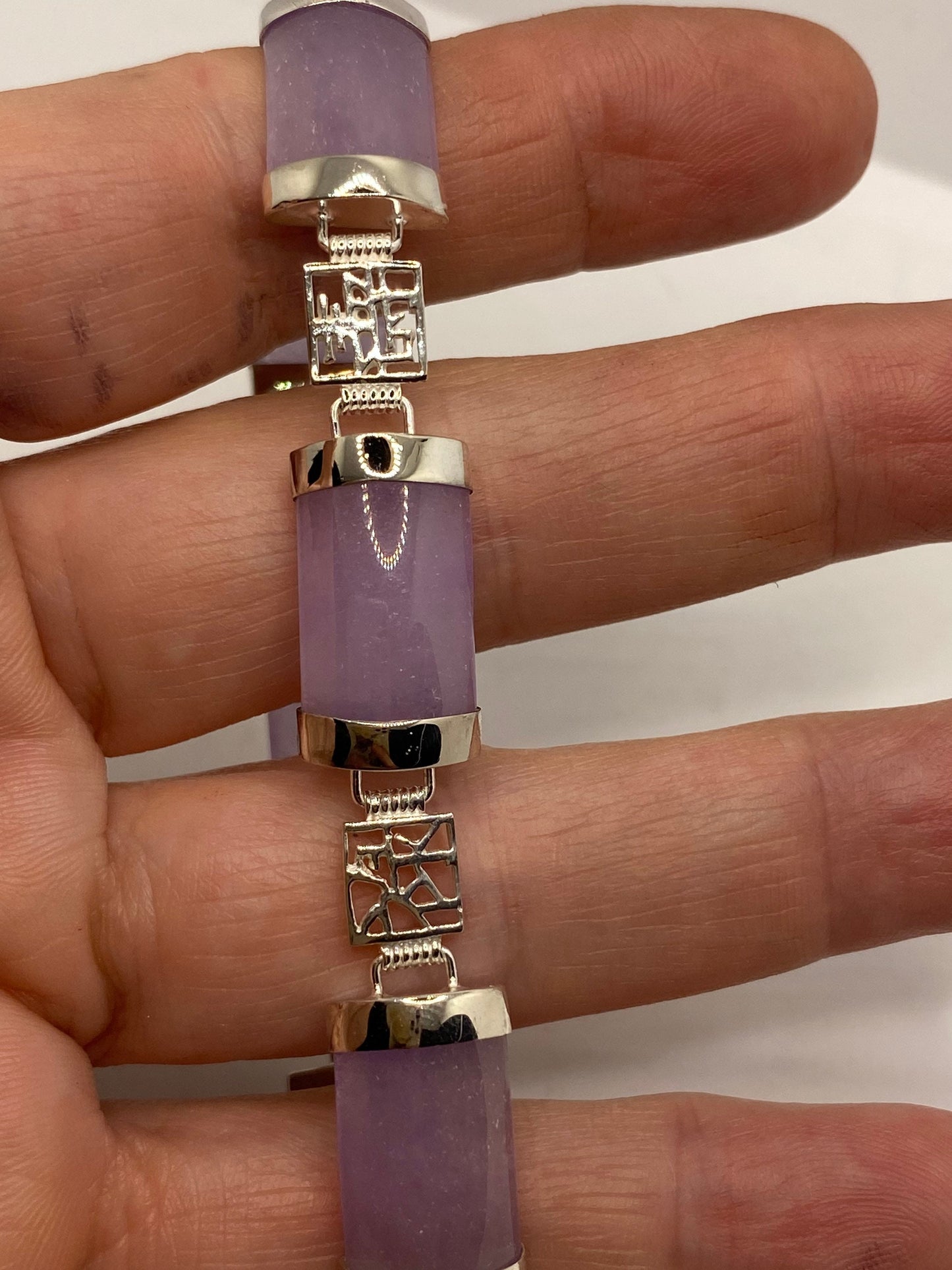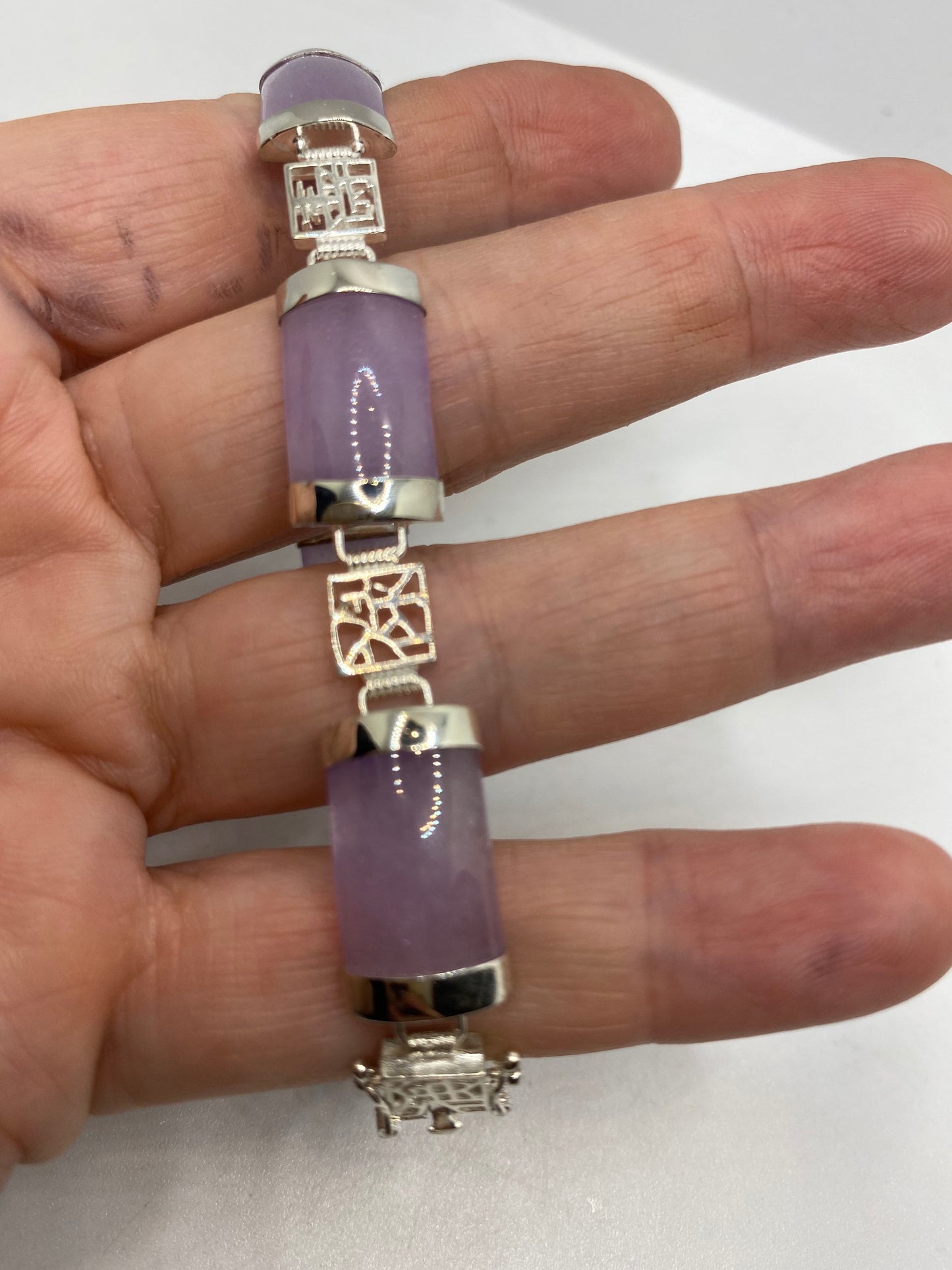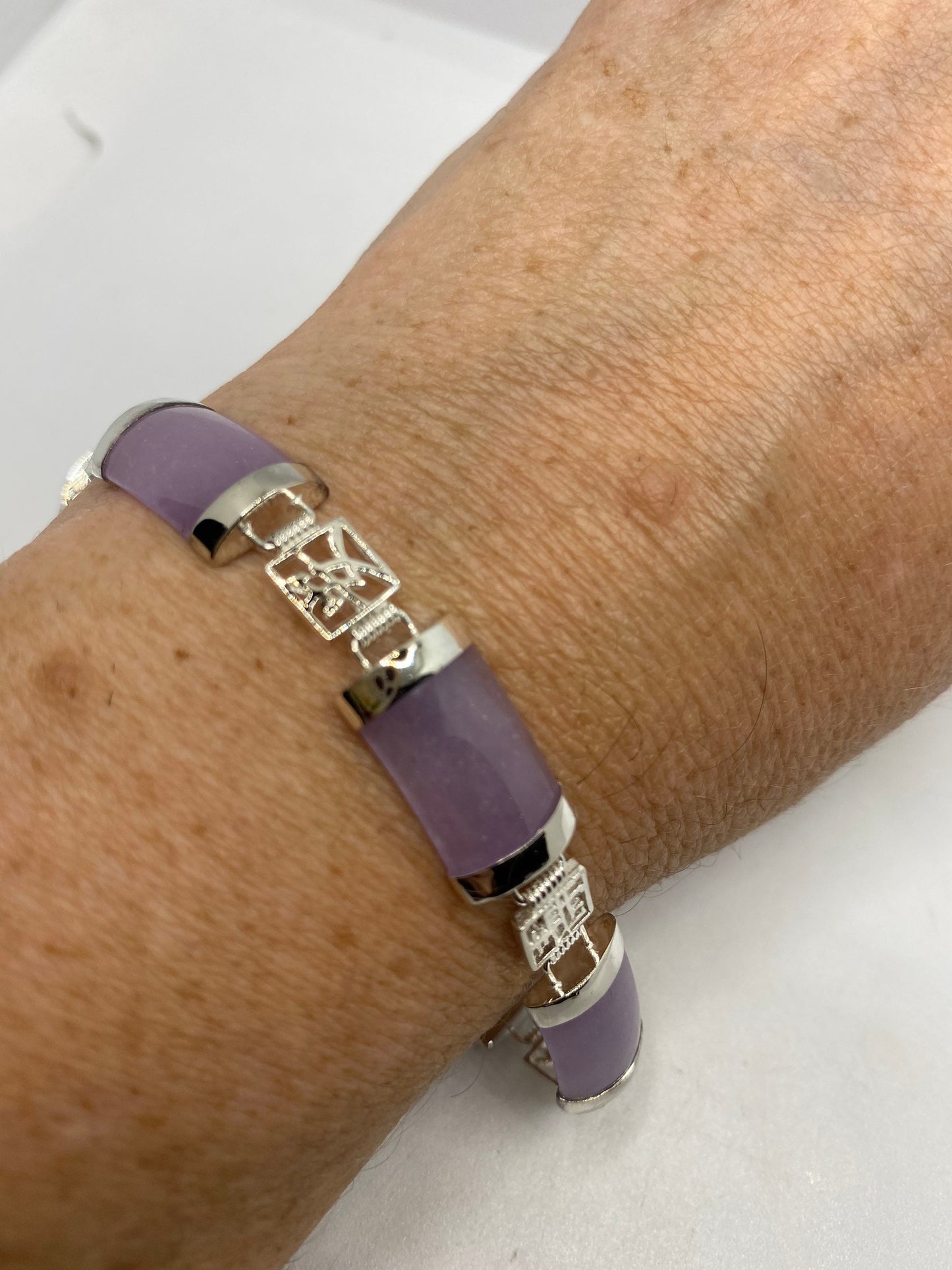 Vintage Purple Jade Tennis Bracelet in 925 Sterling Silver