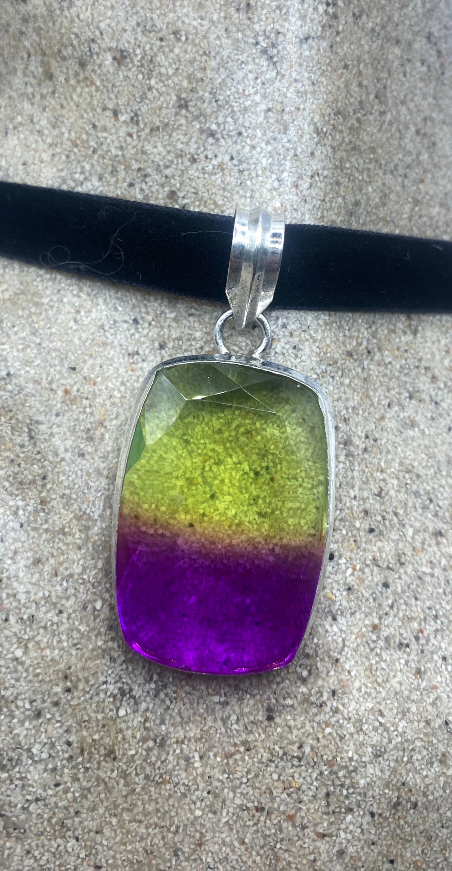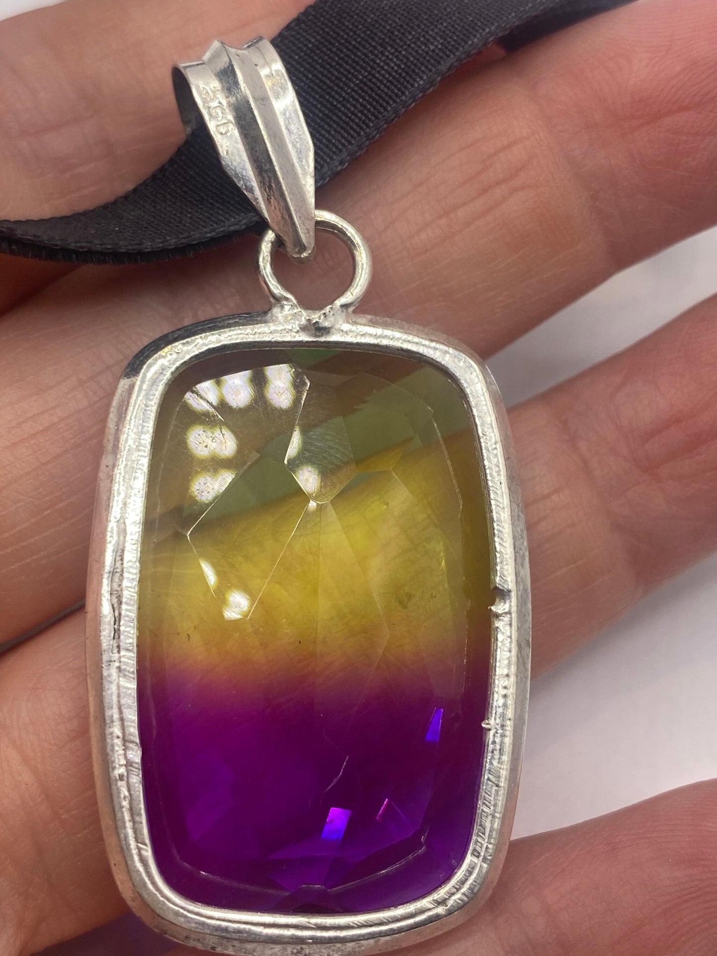 A mosaic of antique faceted natural volcanic glass stones amatrine ornate with silver finish