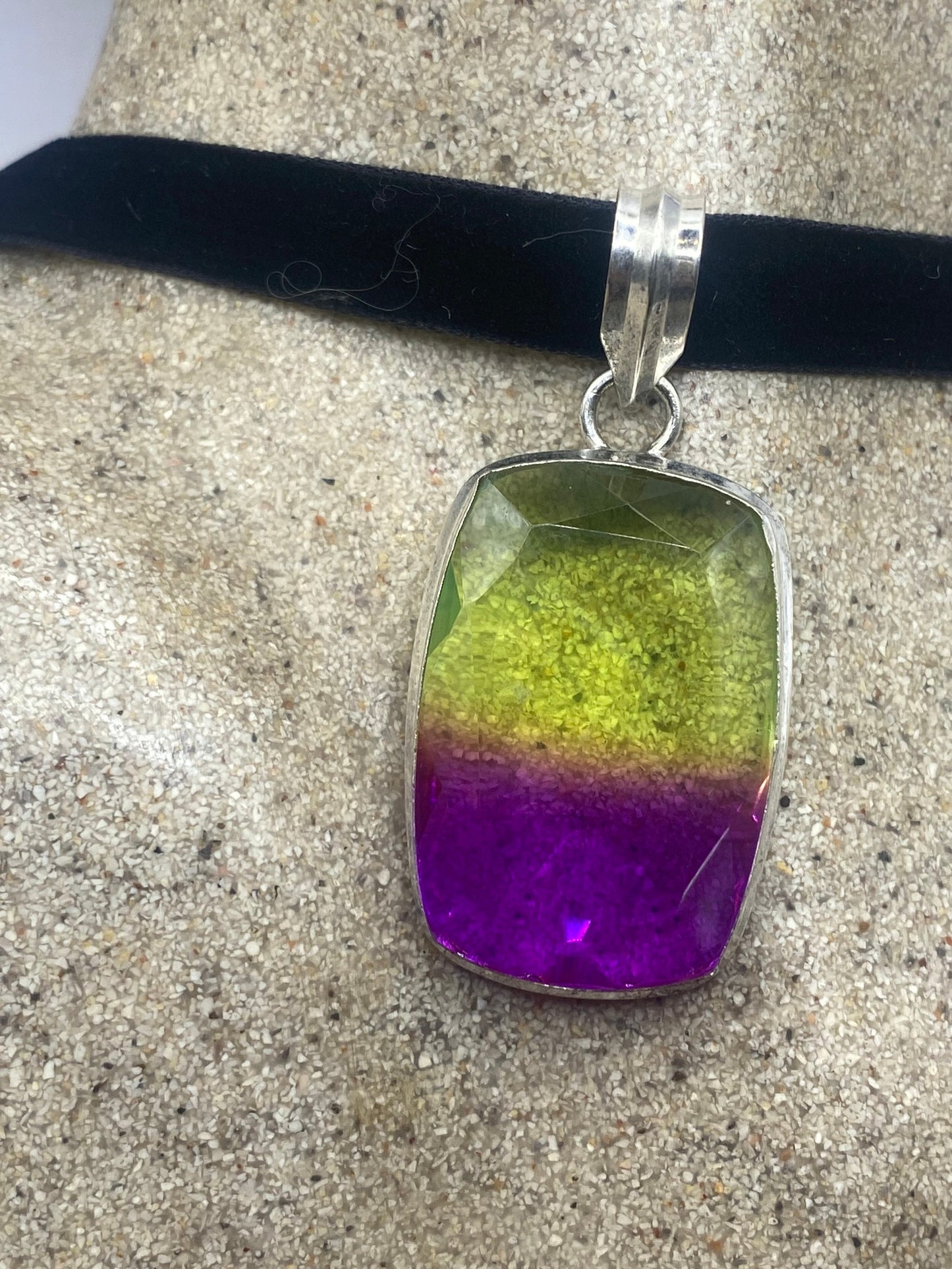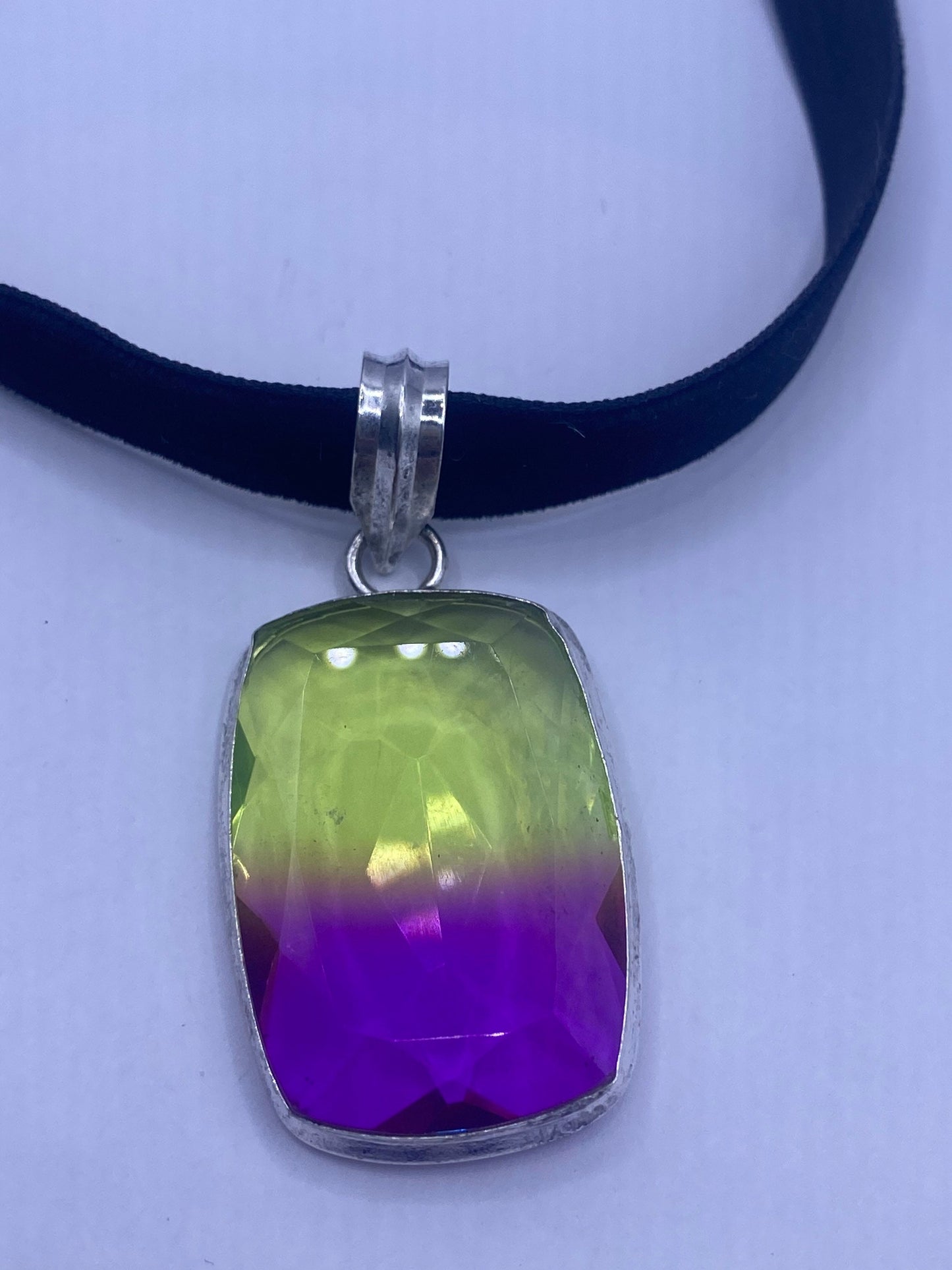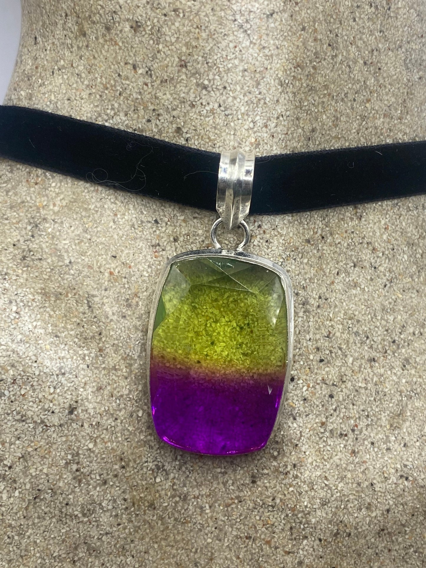 Vintage Purple Silver Finished Genuine Facetted Antique Volcanic Glass Choker Necklace