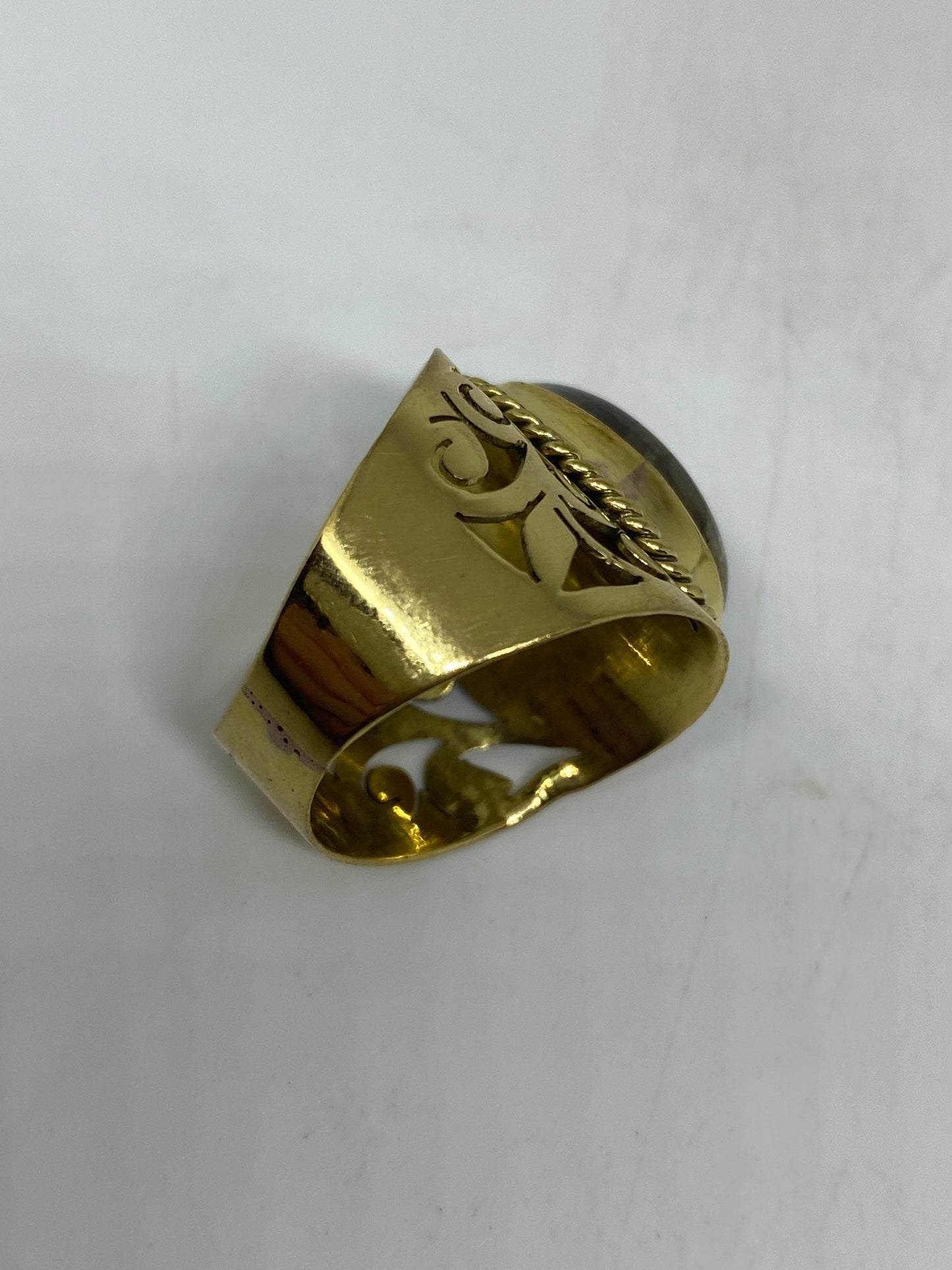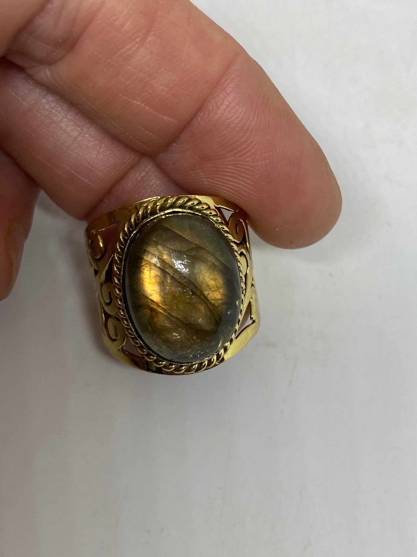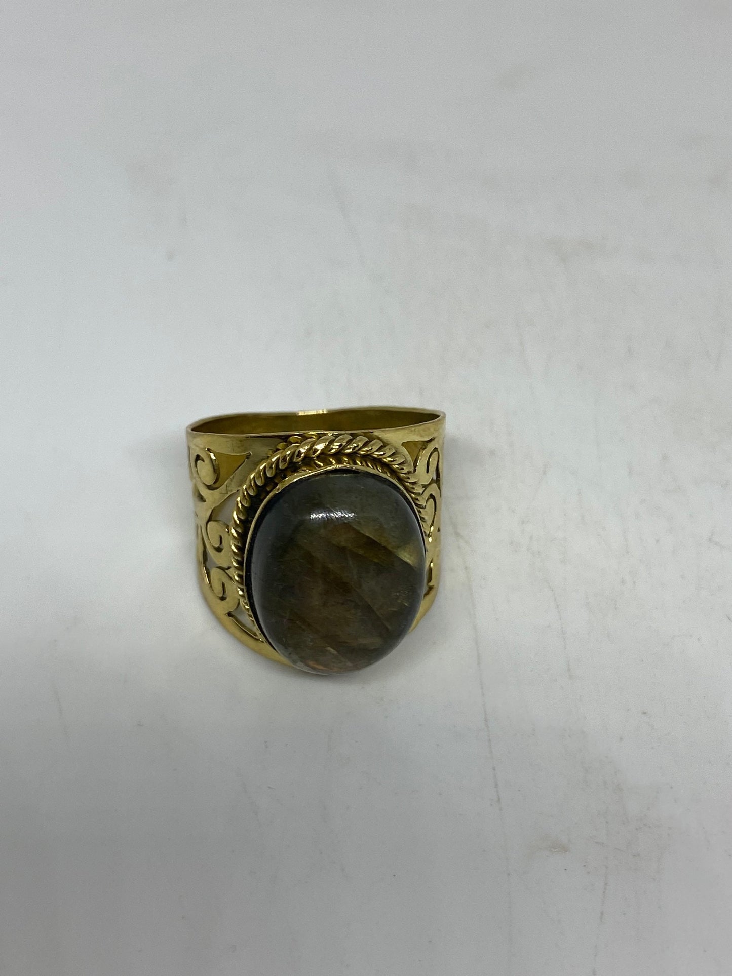 Vintage Rainbow Labradorite Bronze Ring