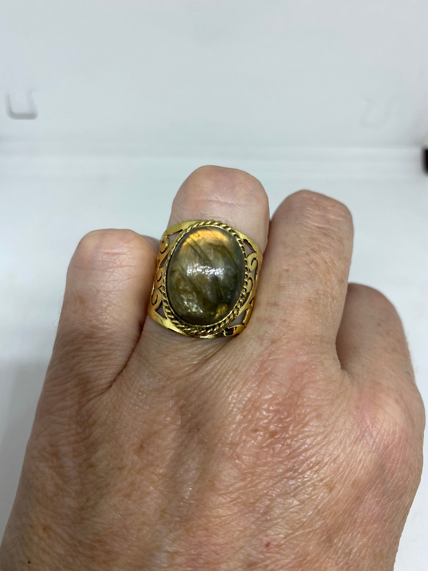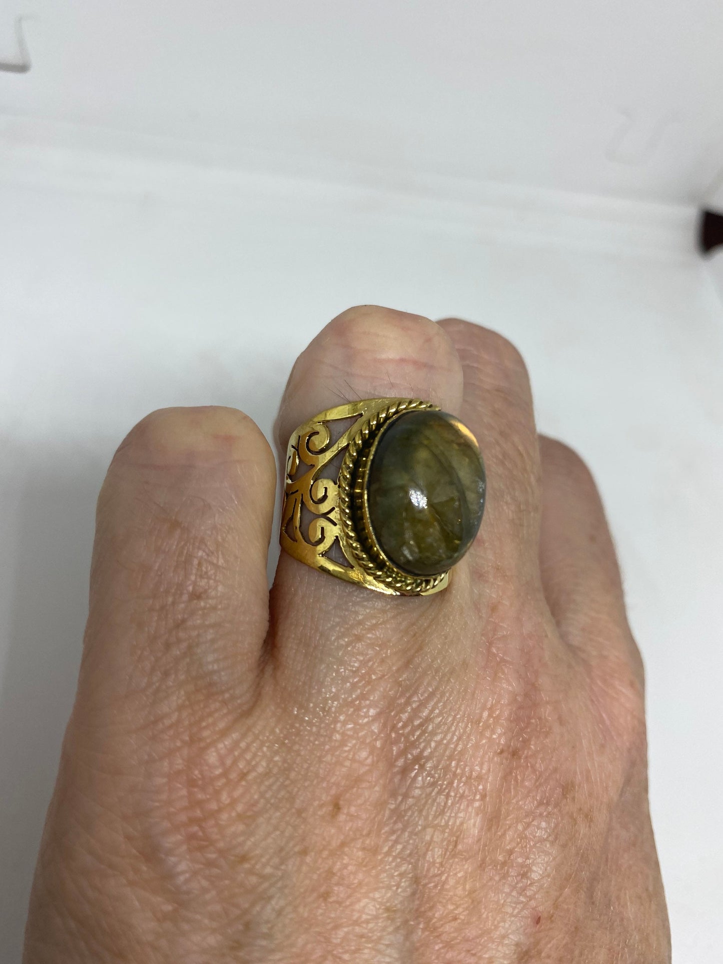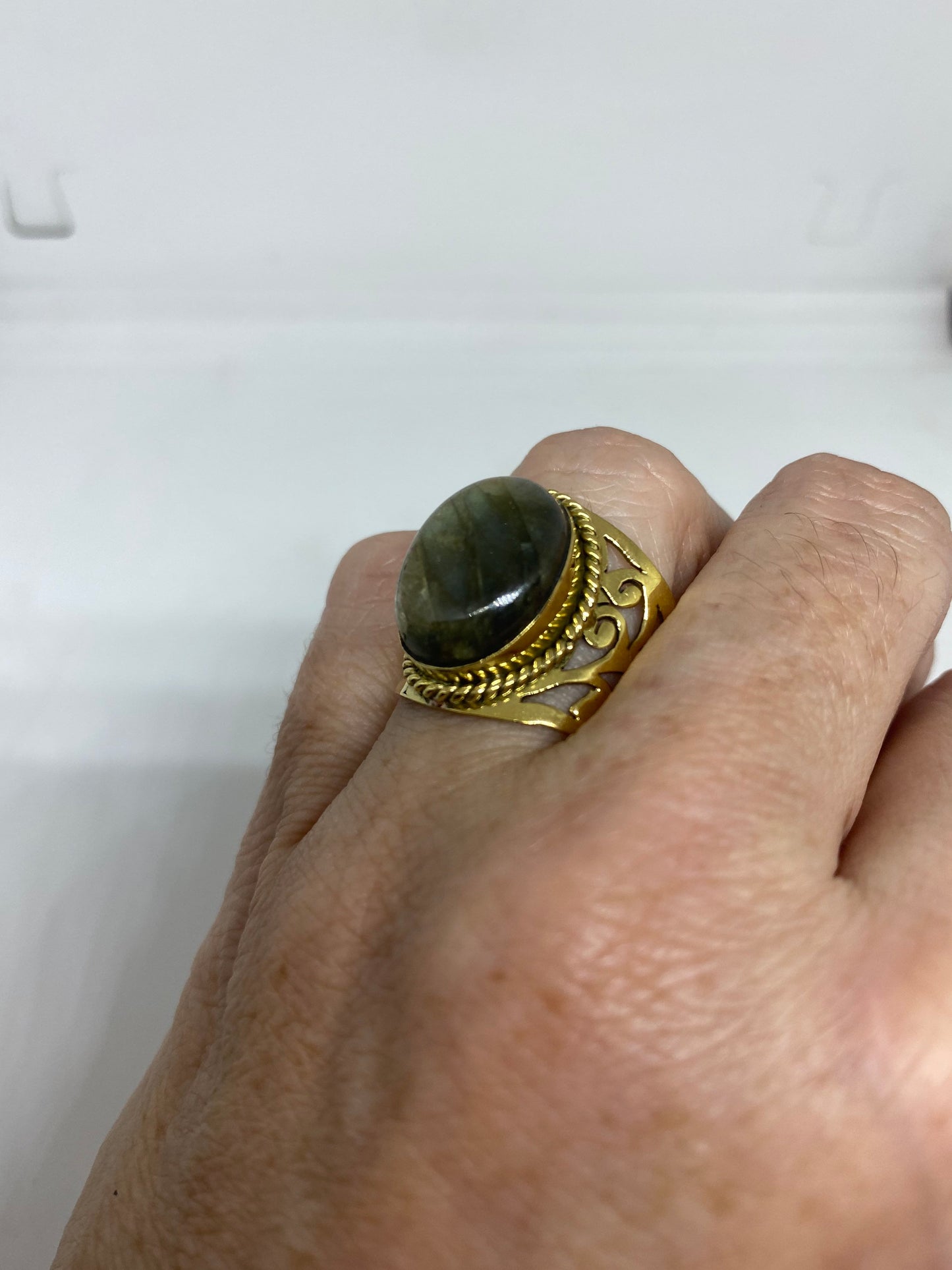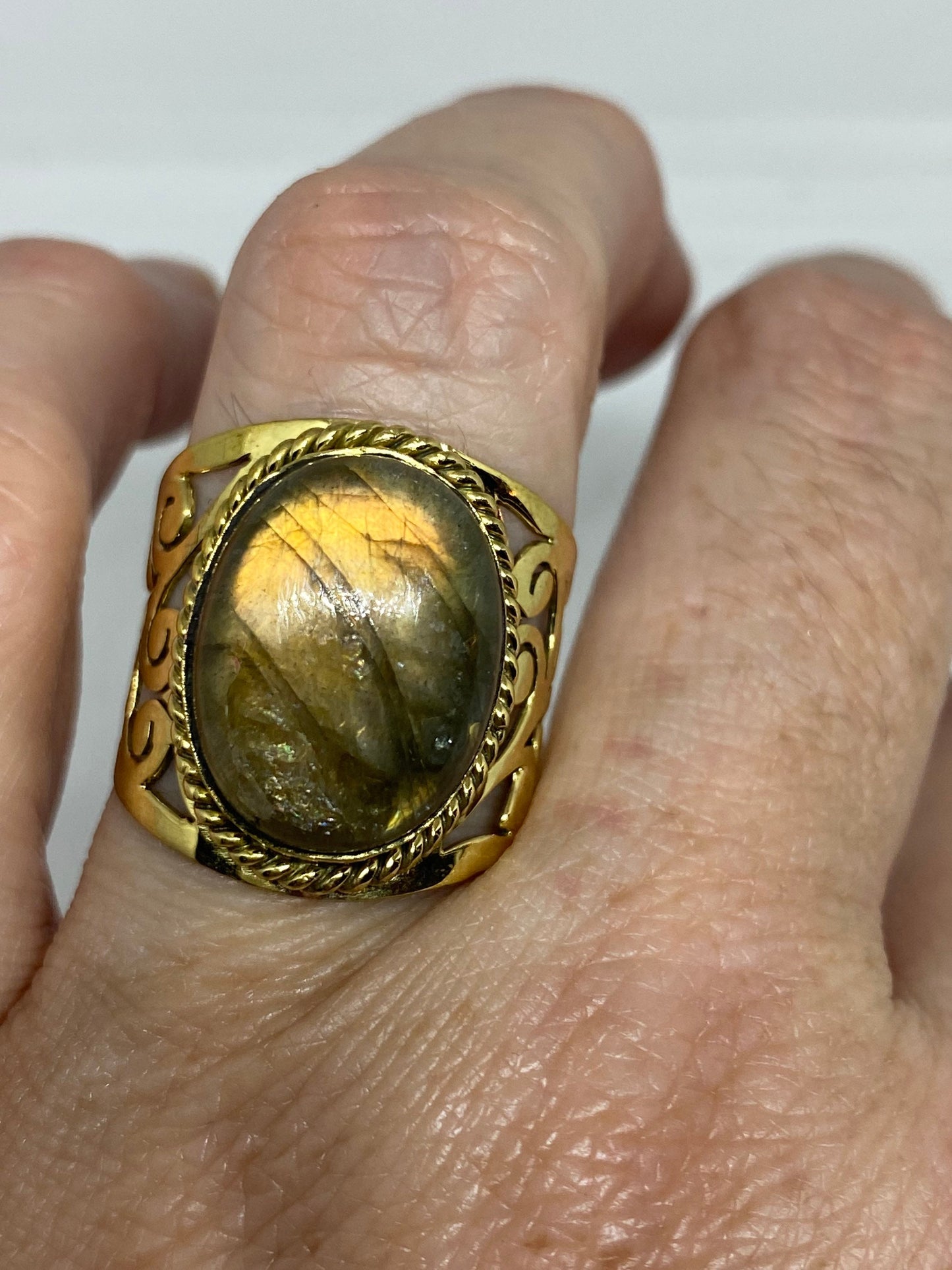 Vintage Rainbow Labradorite Bronze Ring