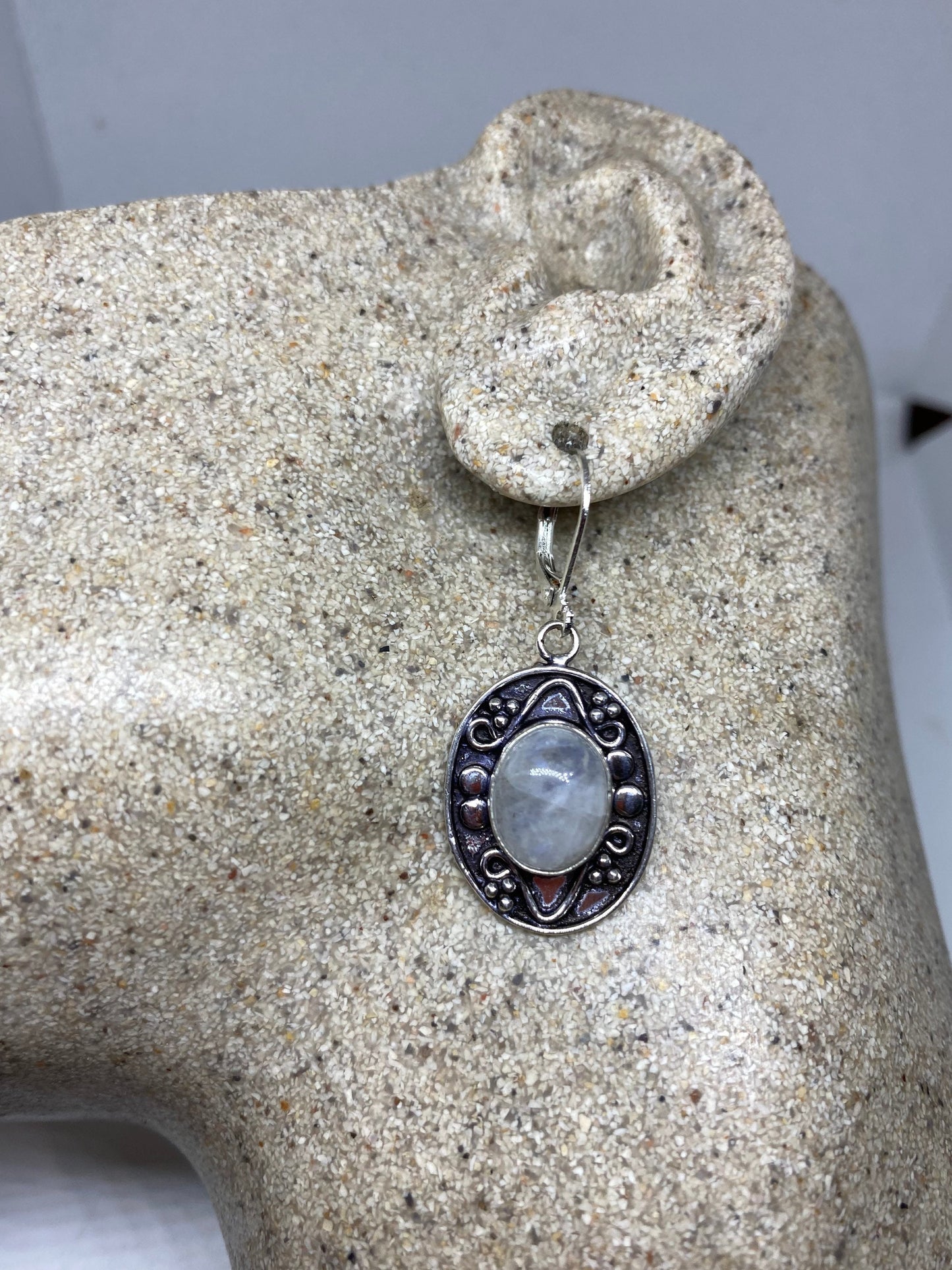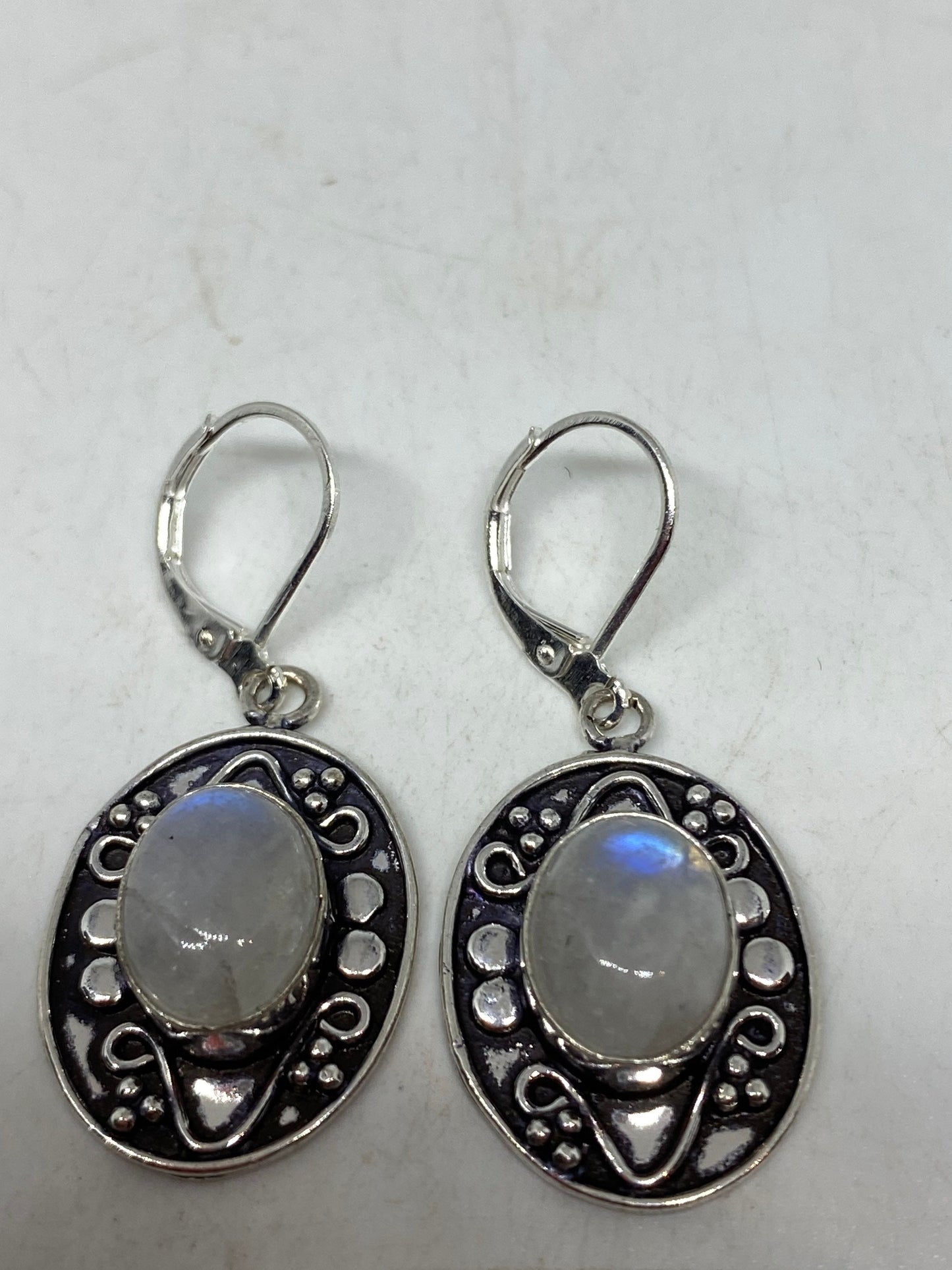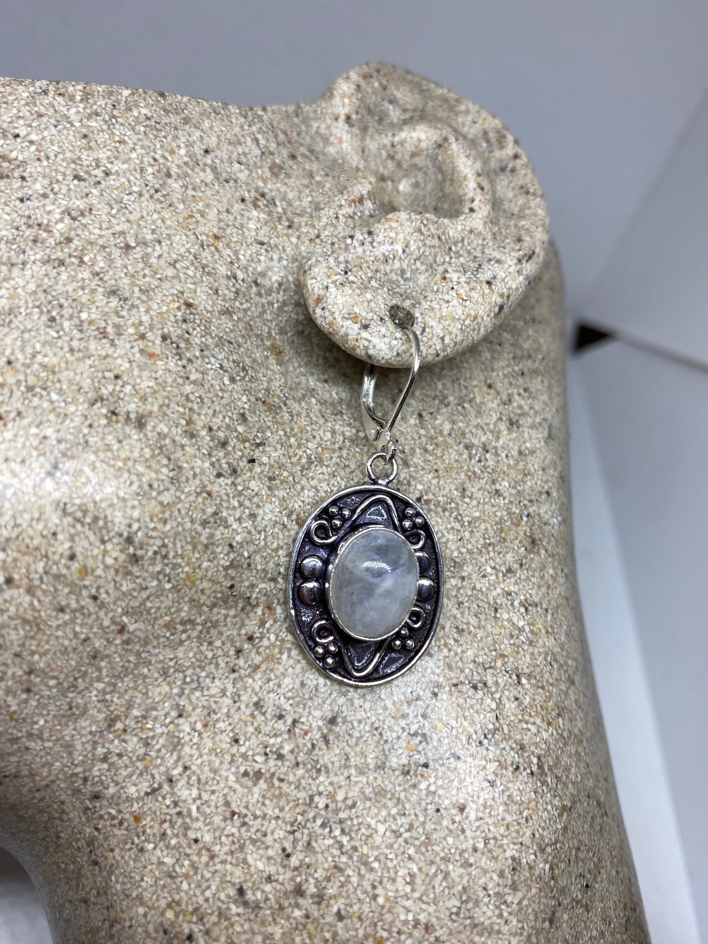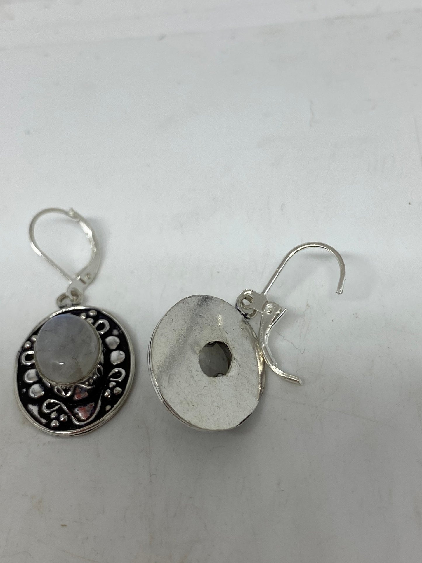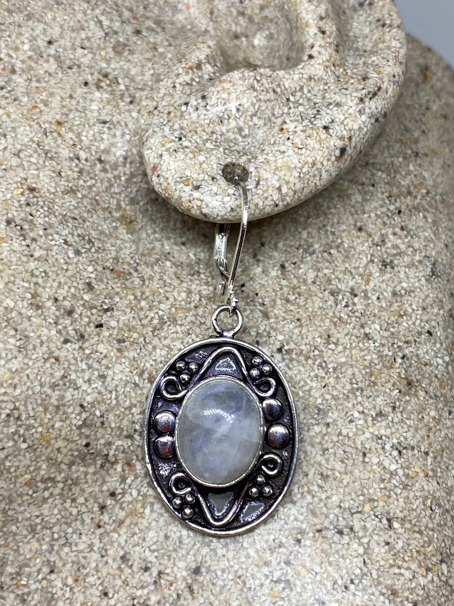 Vintage white rainbow moonstone stone and 925 Silver leverback earrings