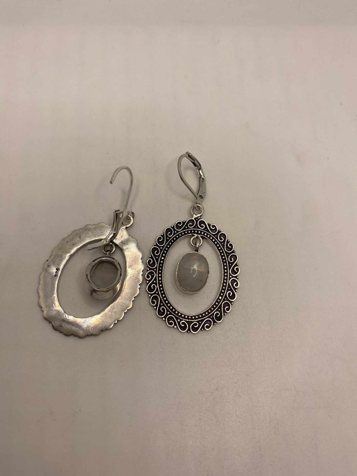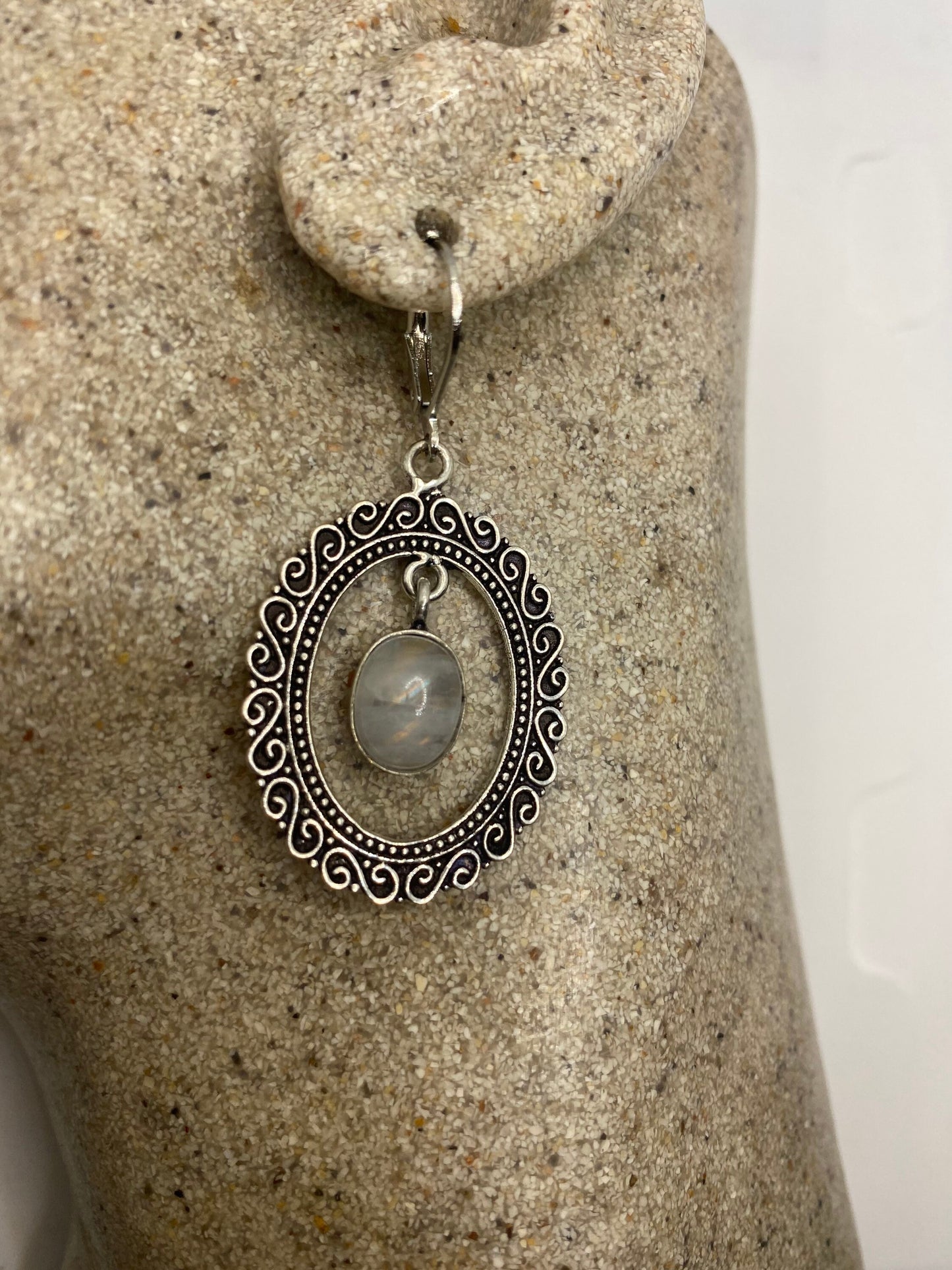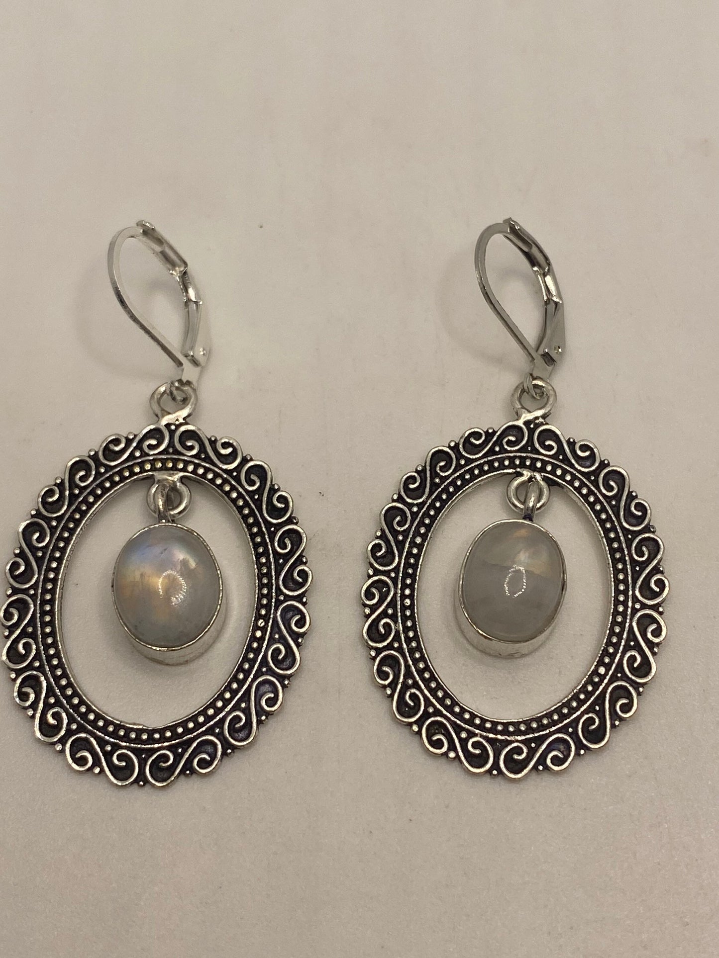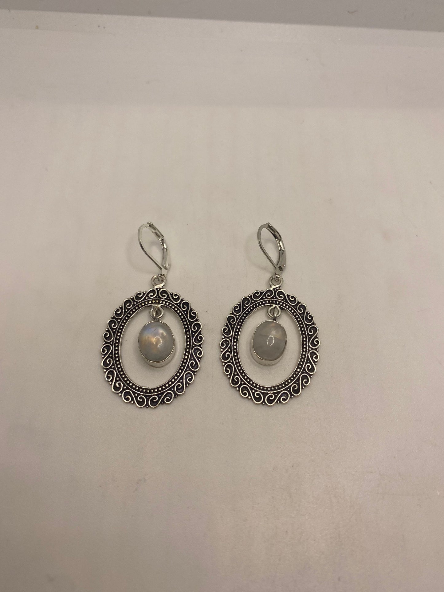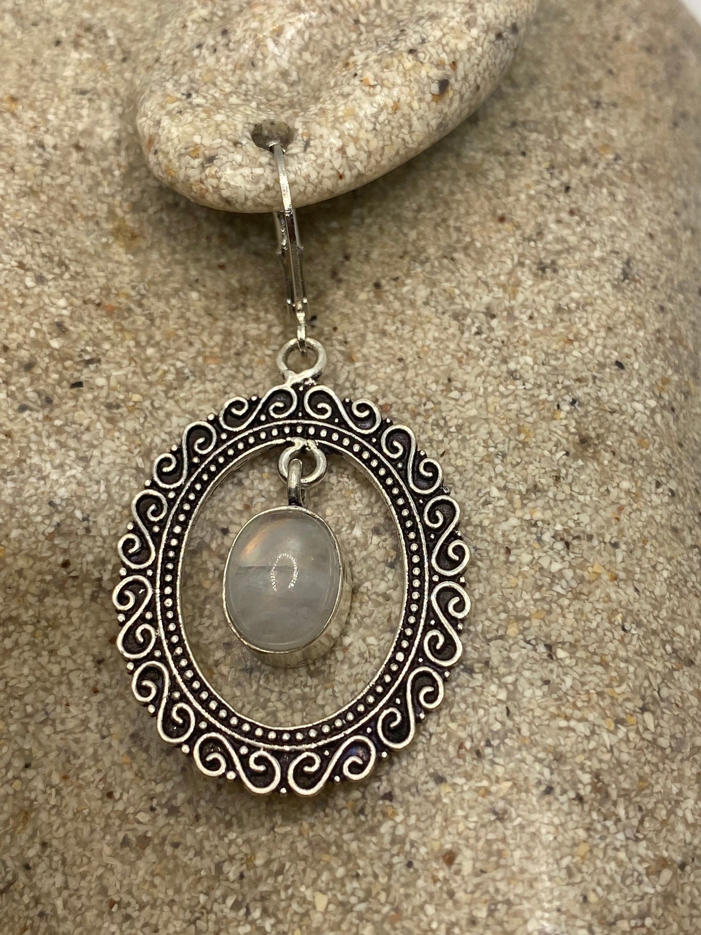 Delicate and detailed white rainbow moonstone and Silver lever back earrings