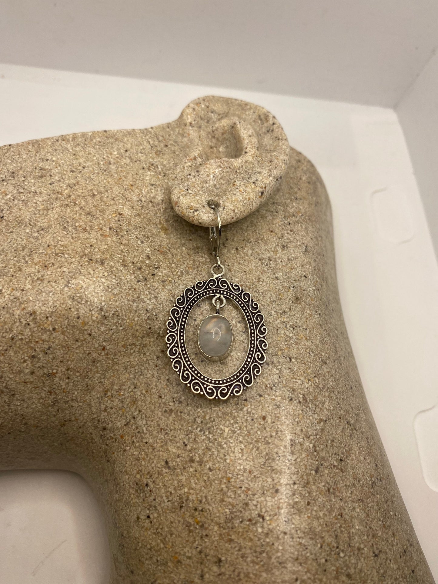 Vintage Rainbow Moonstone Sterling Silver Lever Back leaf Dangle Earrings
