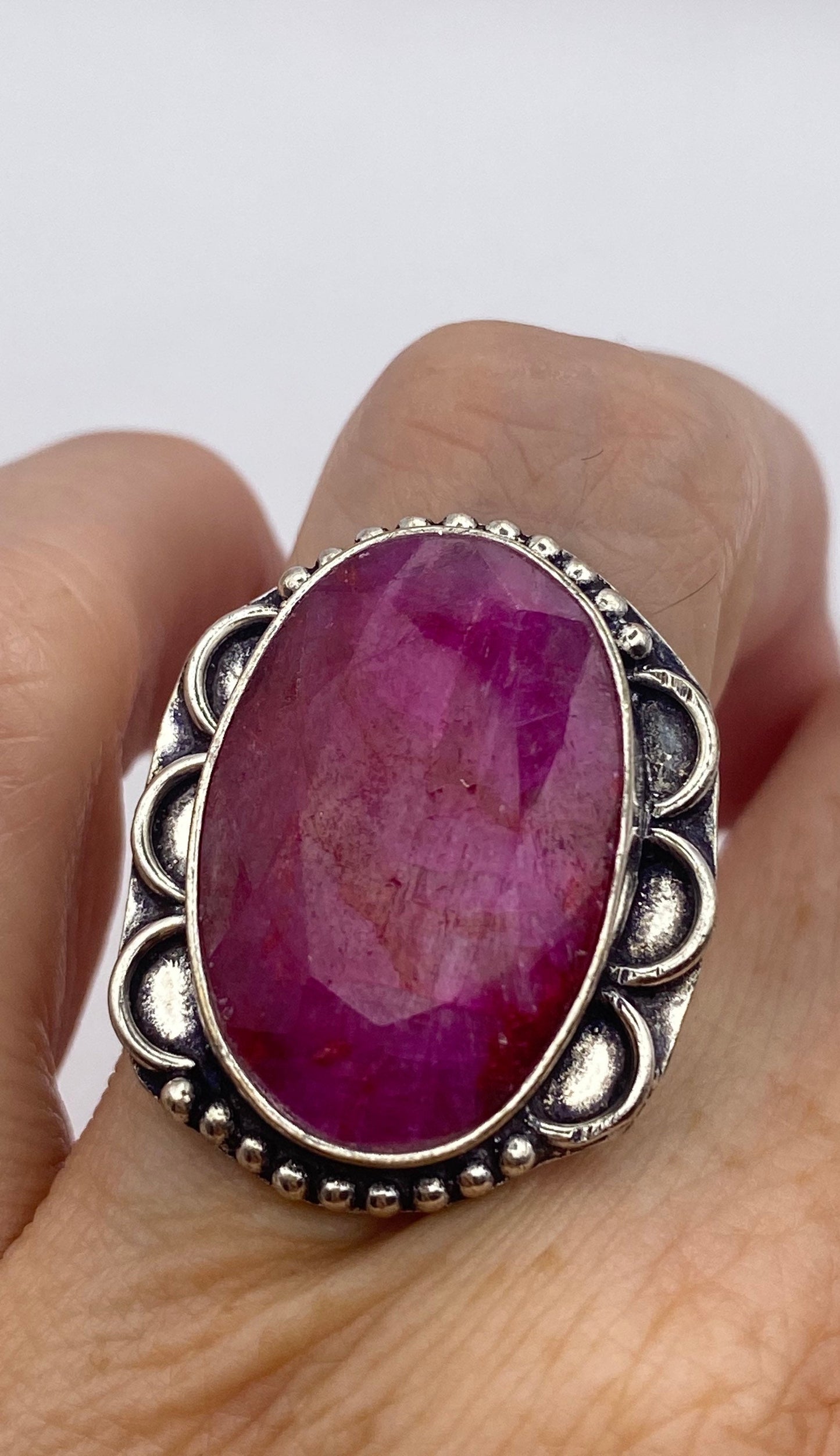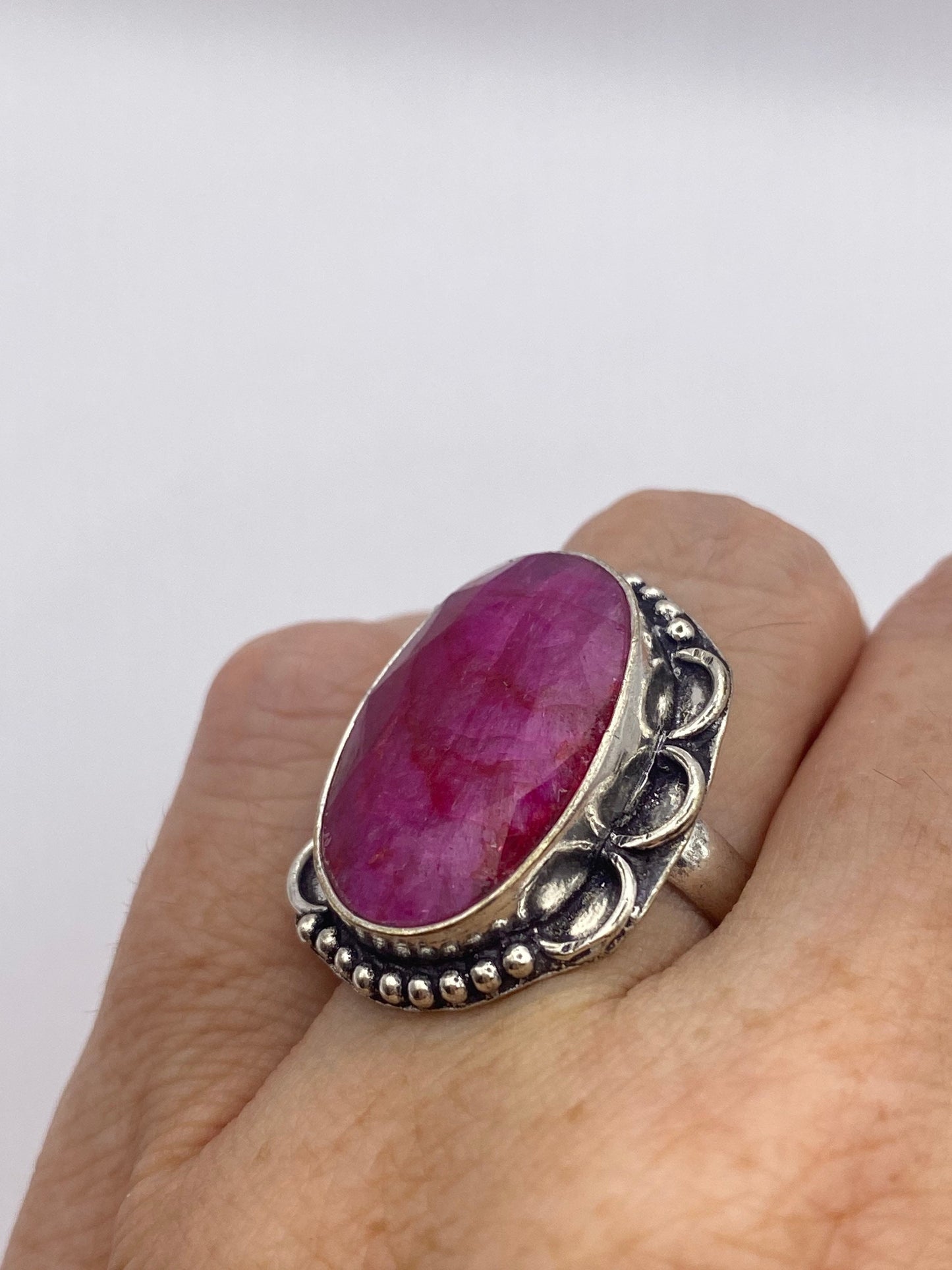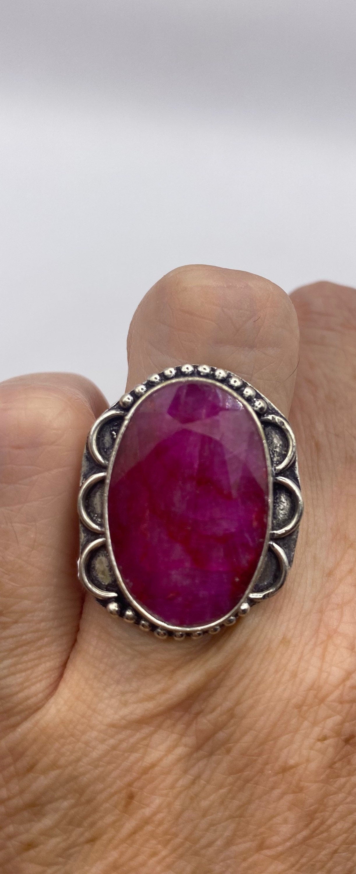 Vintage Raw Pink Ruby Deco Silver Cocktail Ring