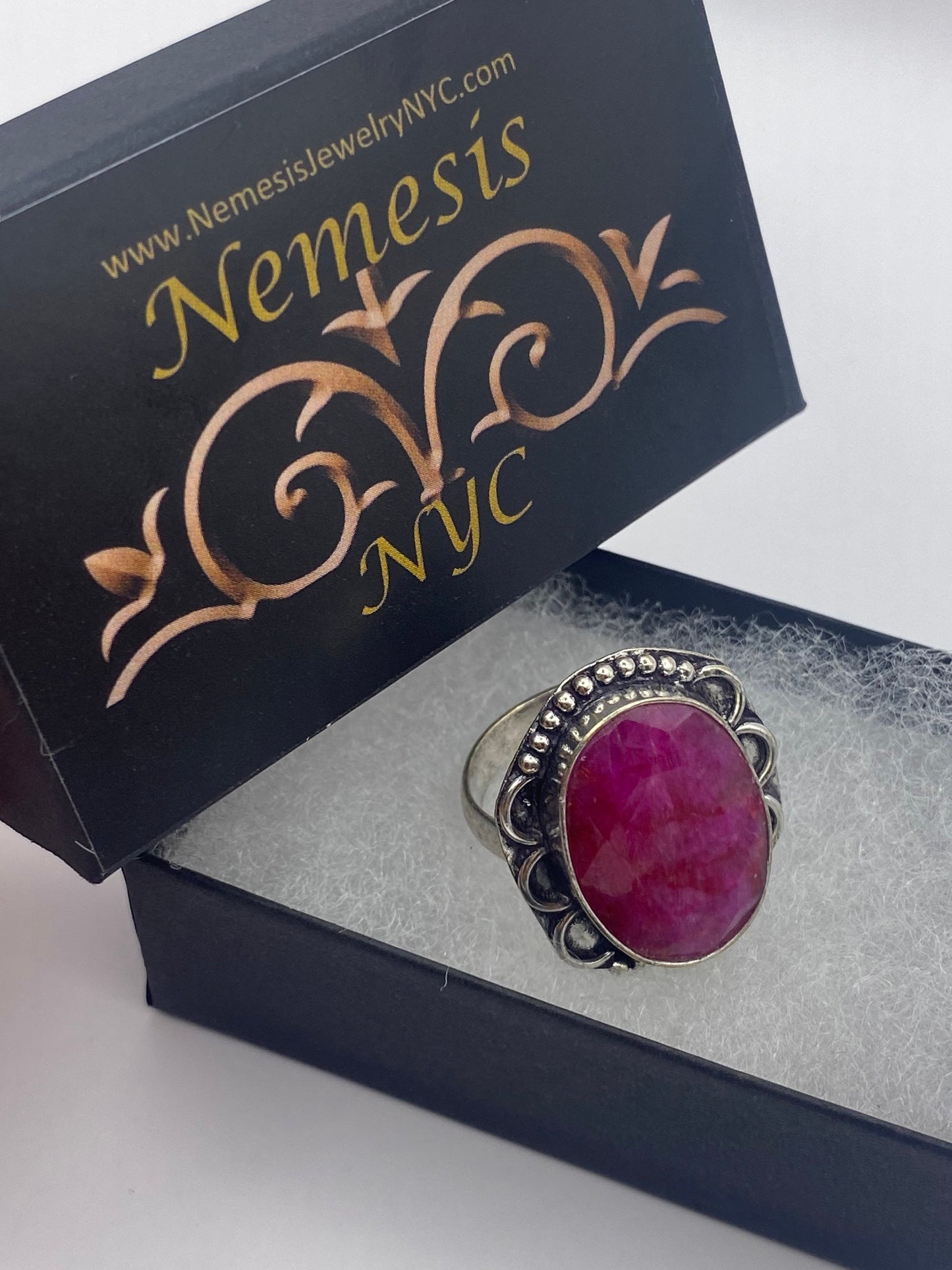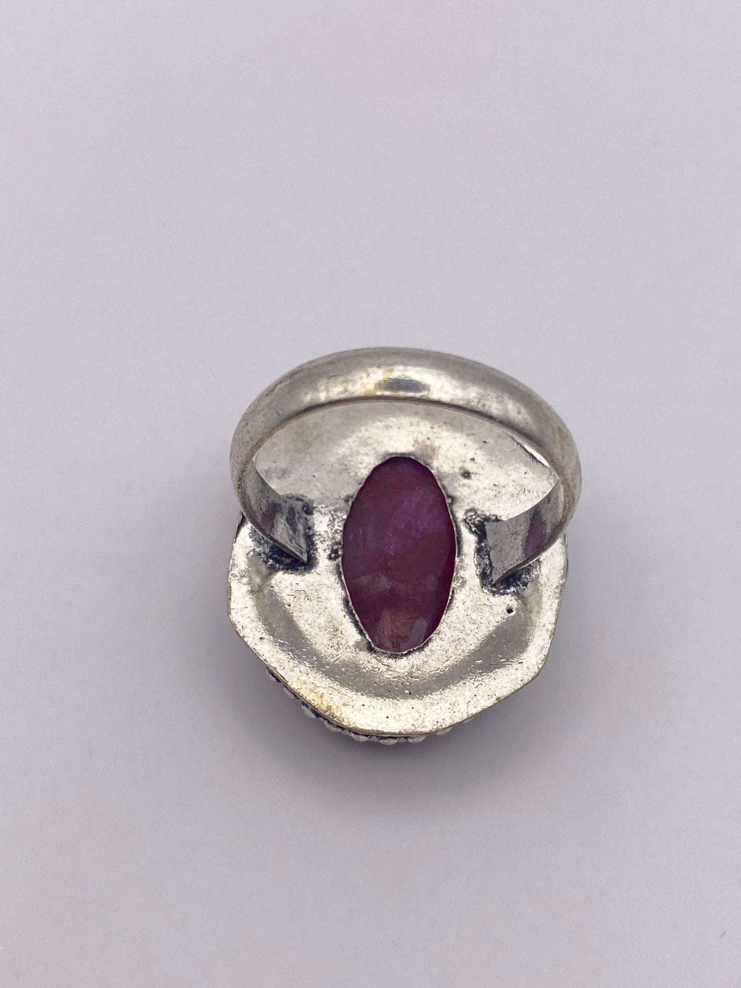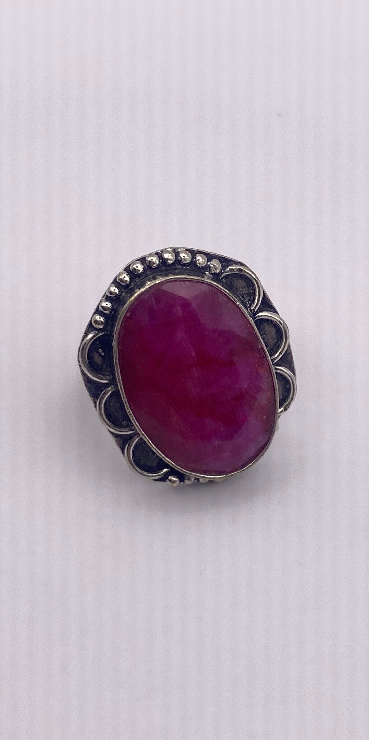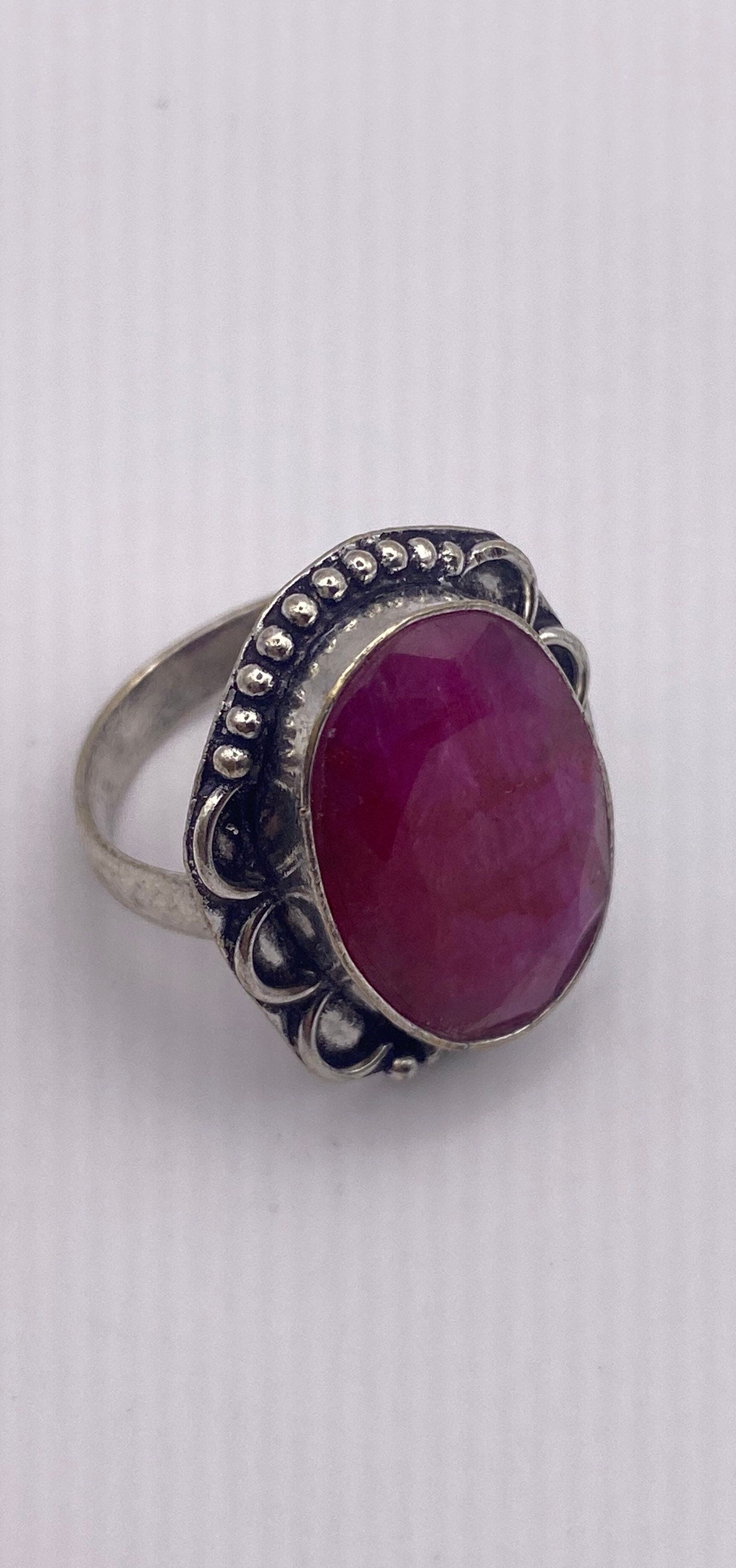 Vintage Raw Pink Ruby Deco Silver Cocktail Ring
