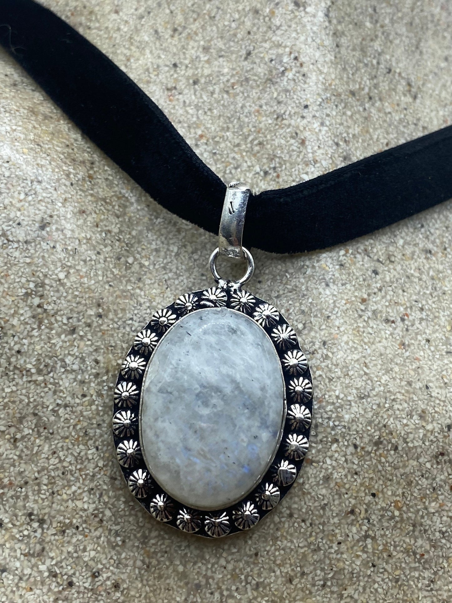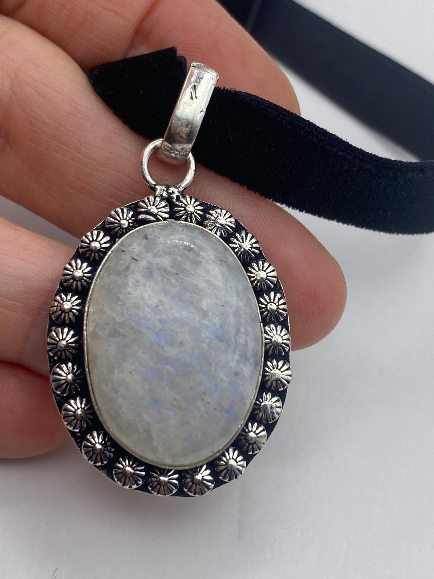 Vintage Raw Rainbow Moonstone Choker Necklace