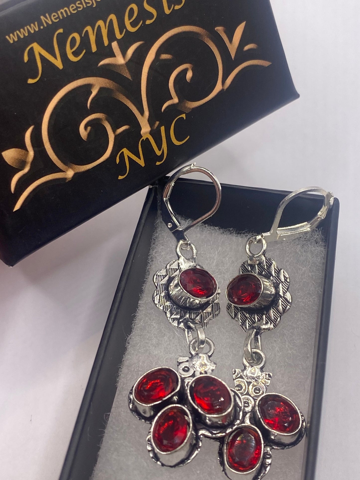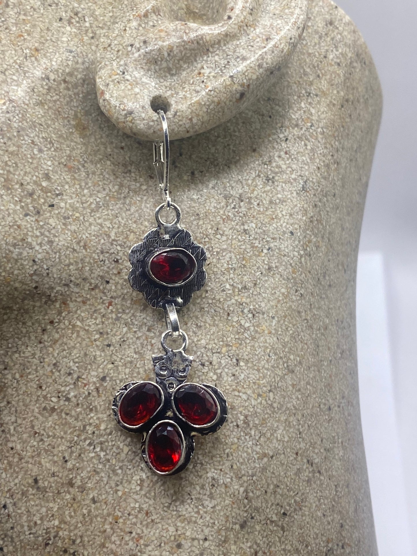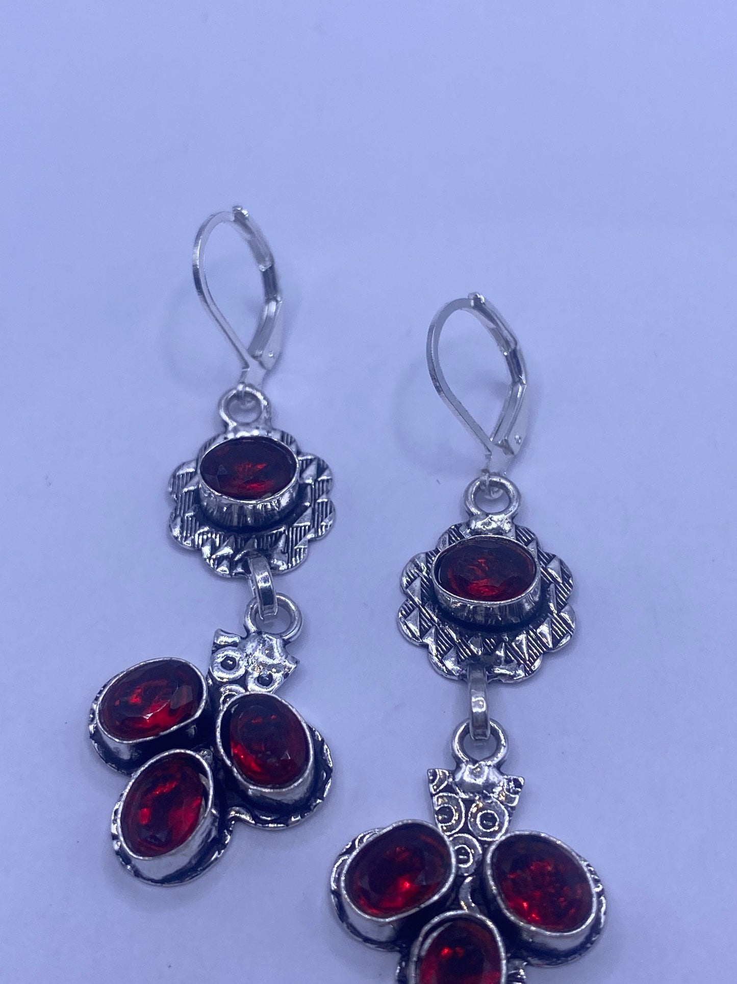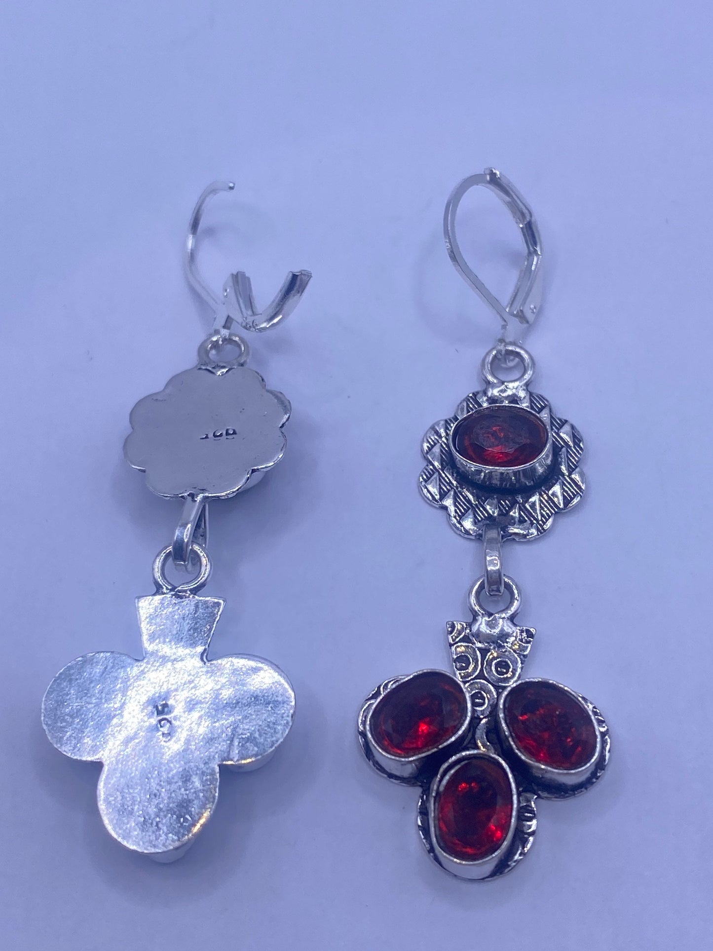Vintage red ruby glass earrings 925 sterling silver leverback