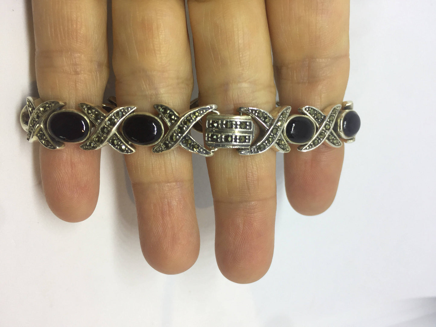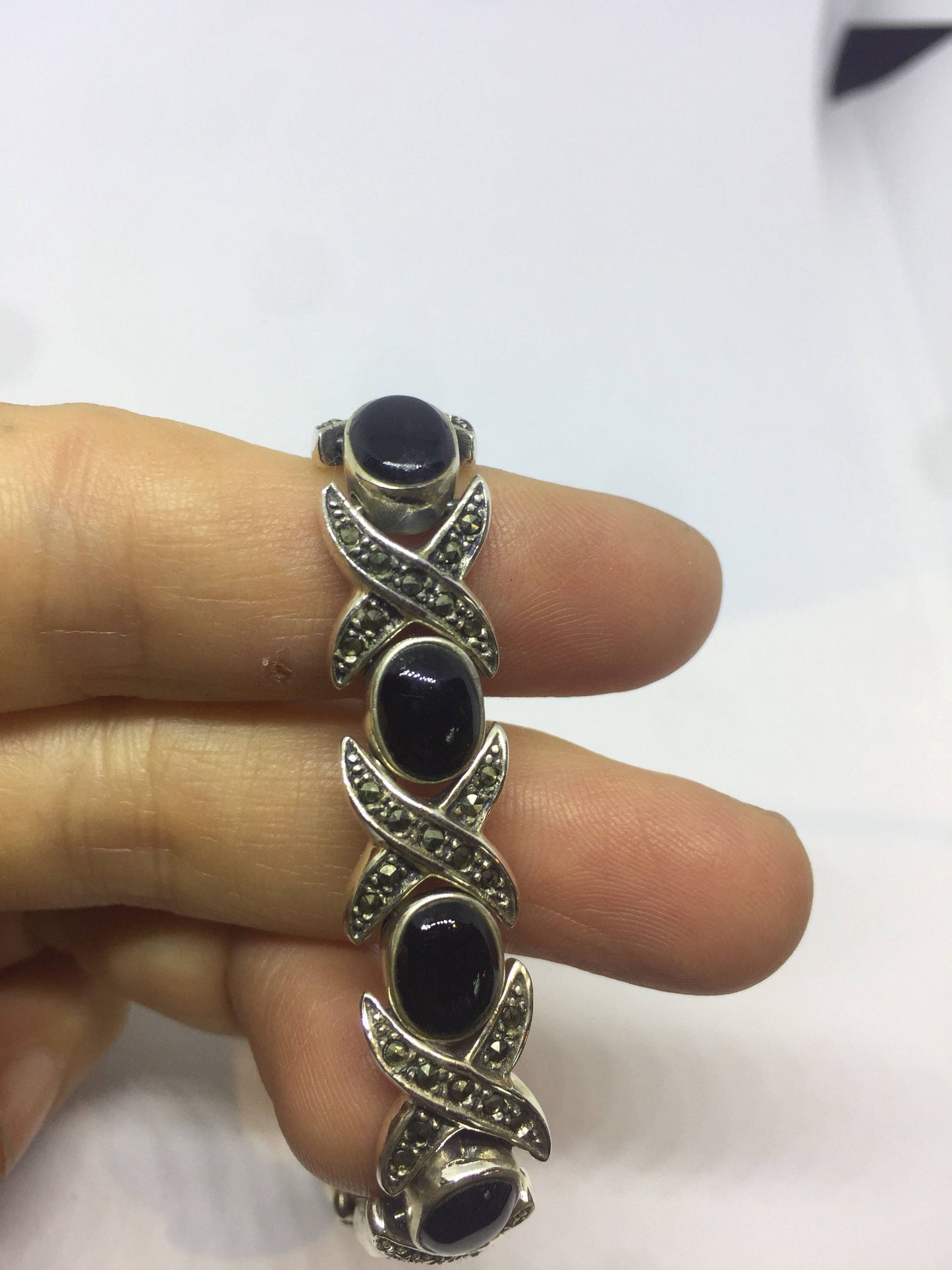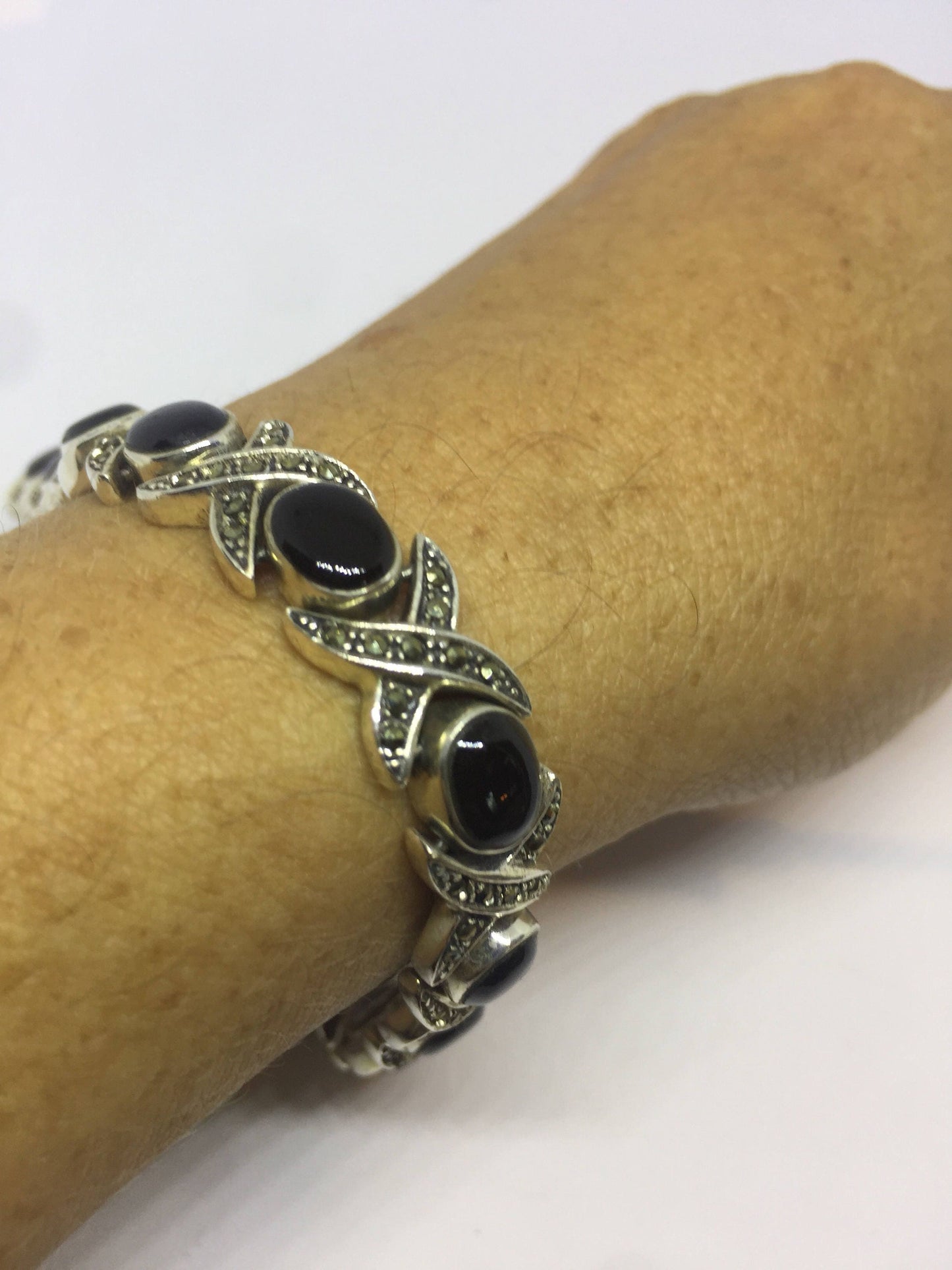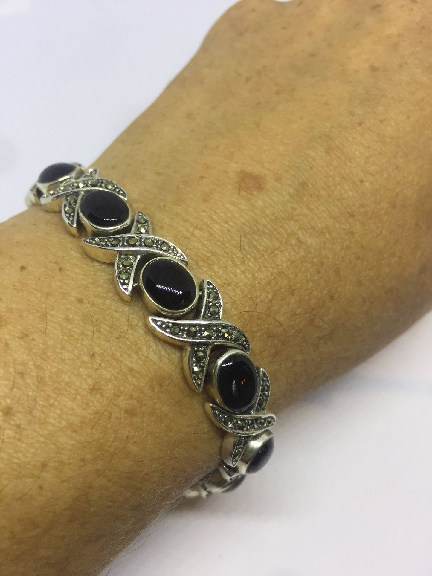 Vintage Silver Bracelet | 925 Sterling Silver Marcasite Black Onyx Bracelet