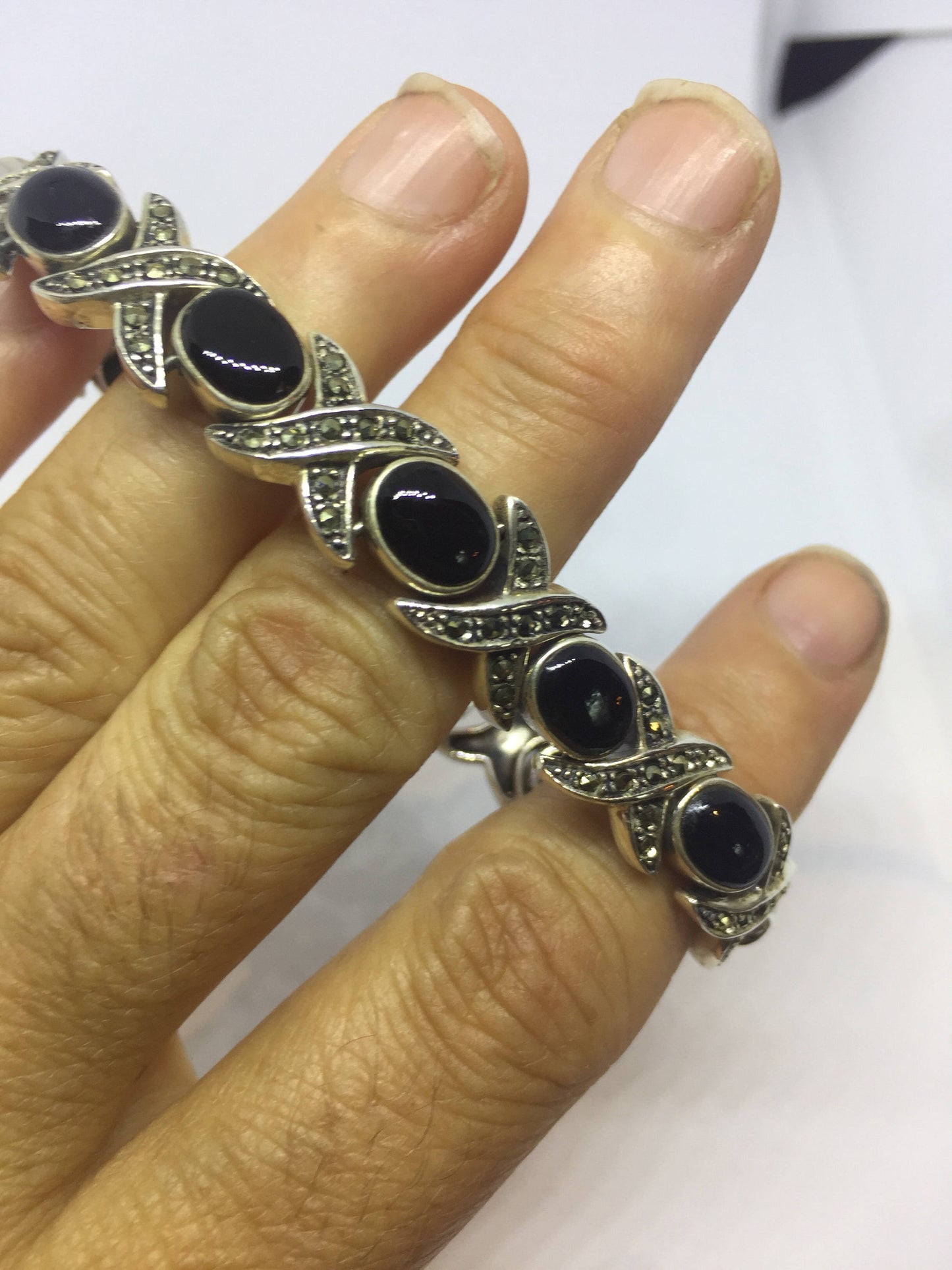 Handmade vintage 925 Sterling silver black onyx and marcasite